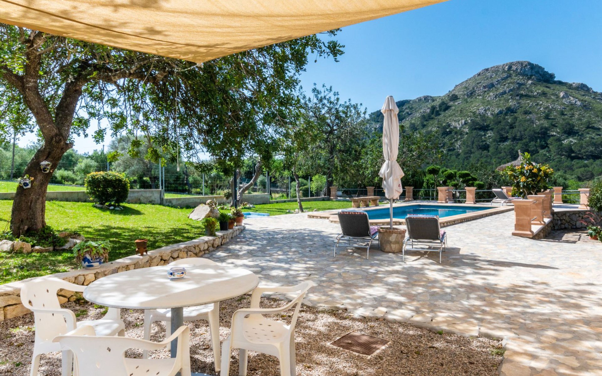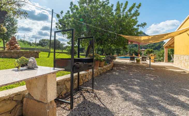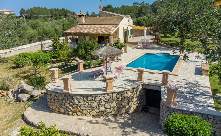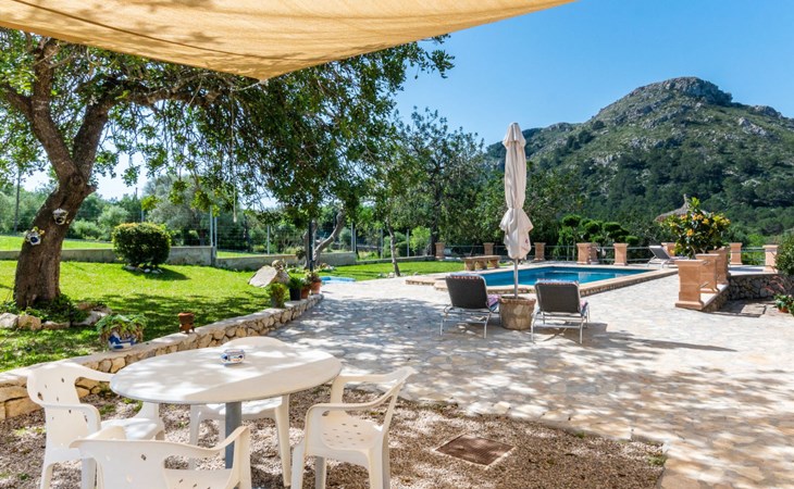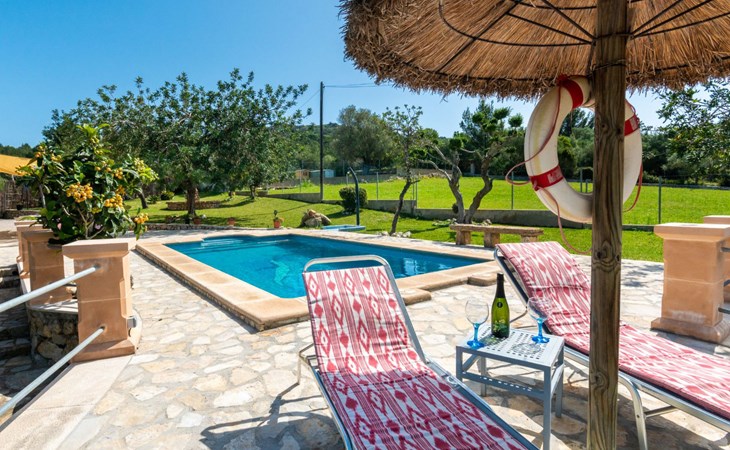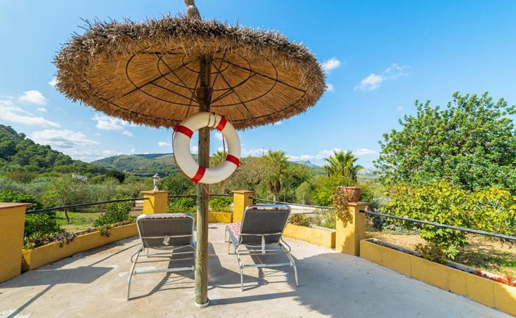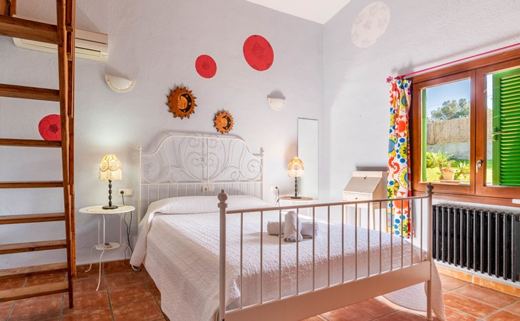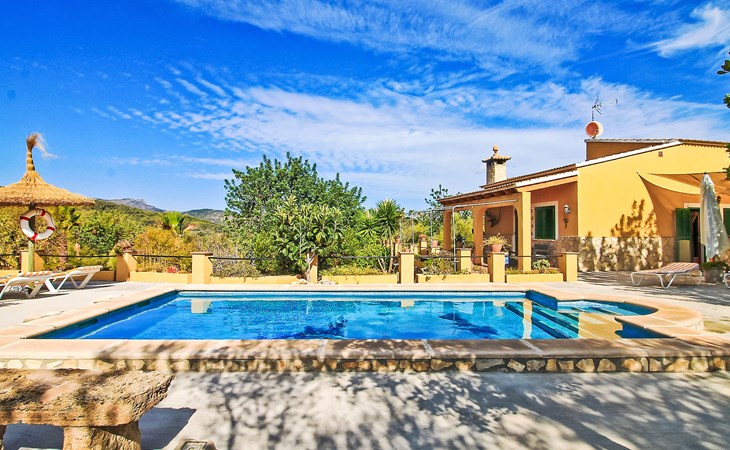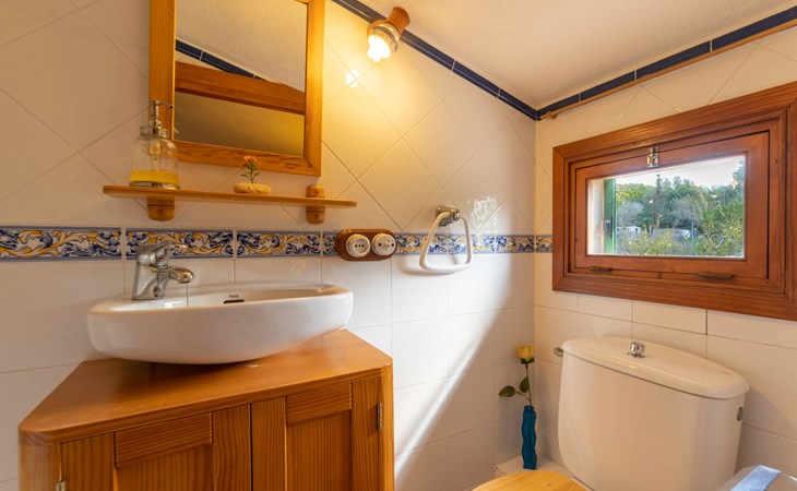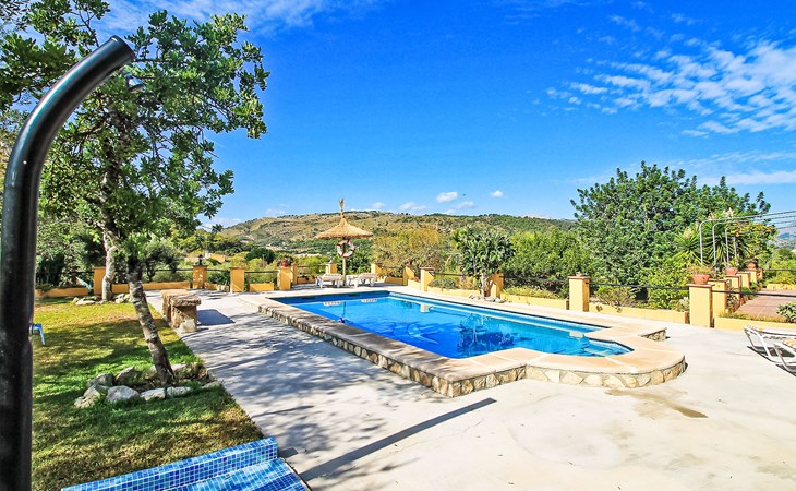 3 km from Alcúdia: Very rustic, comfortable farm estate "Villa Lavanda", 2 storeys, renovated in 2004, surrounded by trees and fields. Outside the resort, 4.5 km from the centre of Alcudia, in a quiet, sunny position residential area (villas), 500 m from the edge of the forest, 4 km from the sea, 4 km from the lake, 4 km from the beach, 4 km from the canal, in the countryside. Private: large, beautiful garden with lawn and trees, orchard, swimming pool angular (3 x 6 m, seasonal availability: 01.Apr. - 01.Nov.). Outdoor shower, patio, pergola, garden furniture, barbecue. In the house: internet access, WiFi, air conditioning, washing machine. Parking at the house on the premises. Shop 4 km, grocery 4 km, supermarket 4 km, restaurant 4 km, bar 4 km, bakery 4 km, café 4 km, internet café 4 km, pedestrian zone 4 km, bicycle rental 4 km, pub garden 4 km, 25 minute walk to the centre, bus stop 4 km, sandy beach 4 km pebble beach 5 km, shingle beach 5 km, rocky beach 5 km, 4 km, diving center 5 km. Sports harbour 4.5 km, marina 4.5 km, golf course (18 hole) 5 km, surf school 3.9 km, sailing school 4.5 km, tennis 4 km, minigolf 4 km, riding stable 4 km, sports centre 4.5 km, walking paths from the house 3 km, cycle lane 3 km, children's playground 4 km. Nearby attractions: Ciudad Romana de Pollentia (Alcúdia). S'Albufera de Mallorca, Parque Aquático Hidropark. Hiking paths: Puig de Sant Martí, Sa Talaia d'Alcúdia. Please note: car recommended, no lift. Suitable for families, suitable for seniors. Object suitable for 6 adults groups of teenagers on request only. Loading and unloading of baggage is possible at the holiday house. The owner lives on the same property. Airfield 60 km from the property.