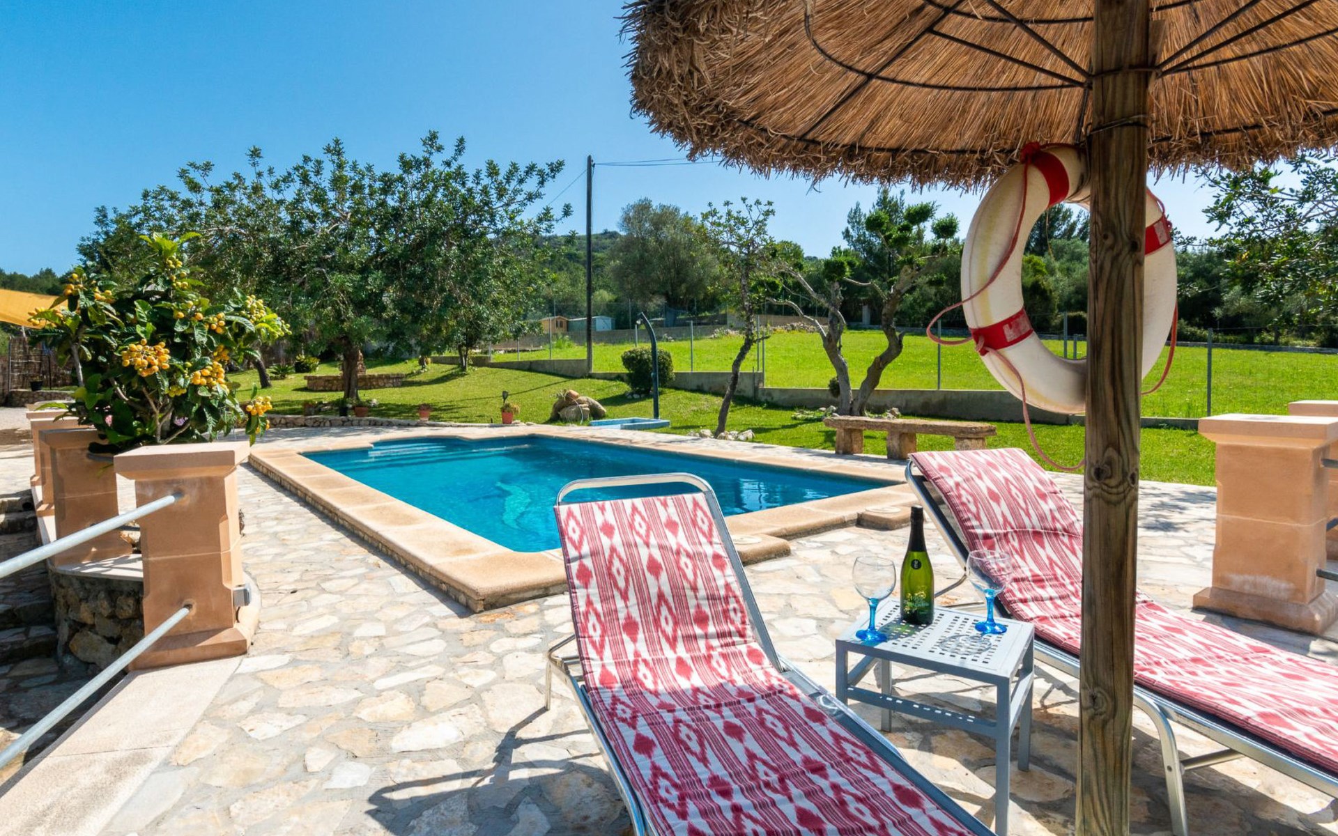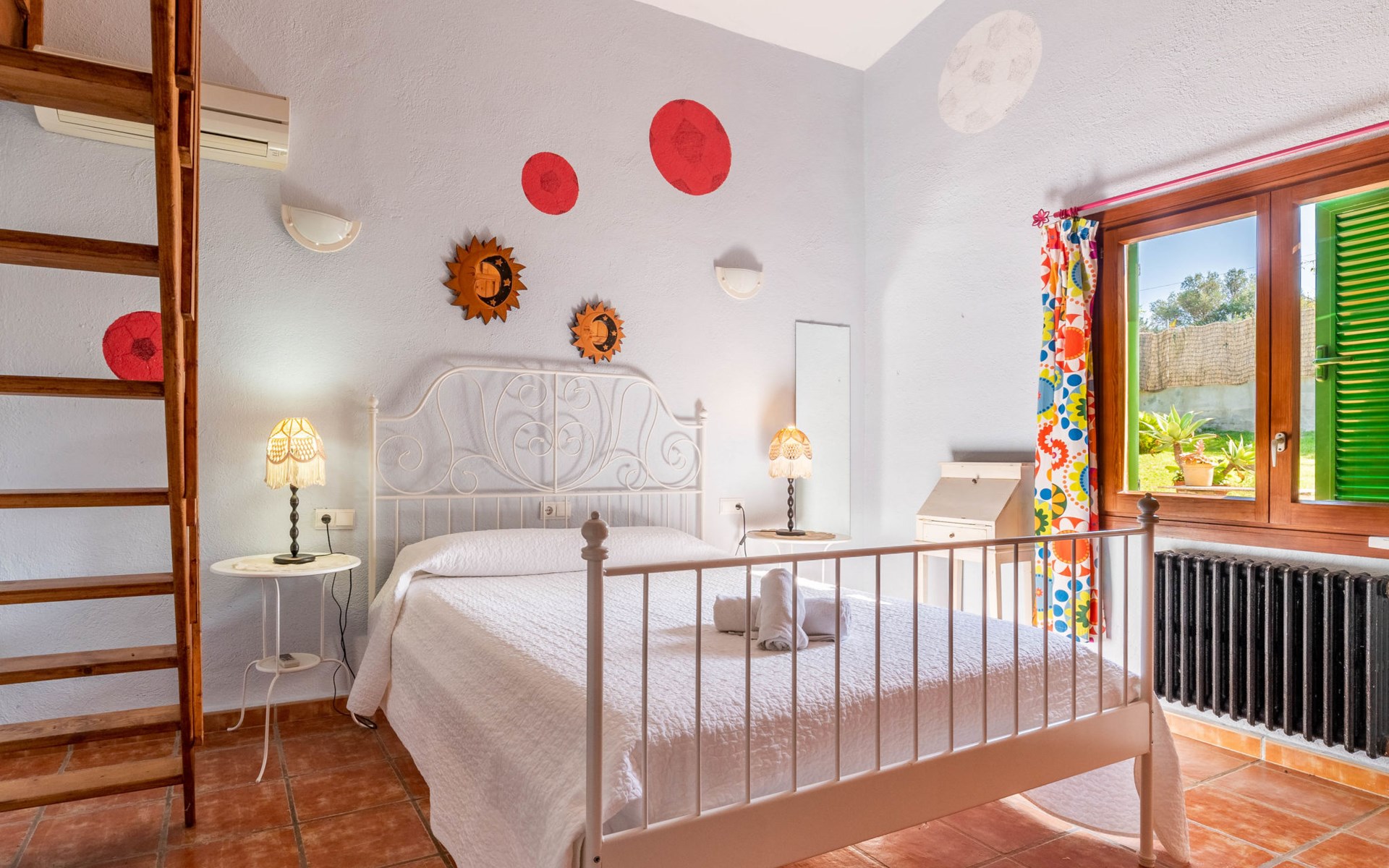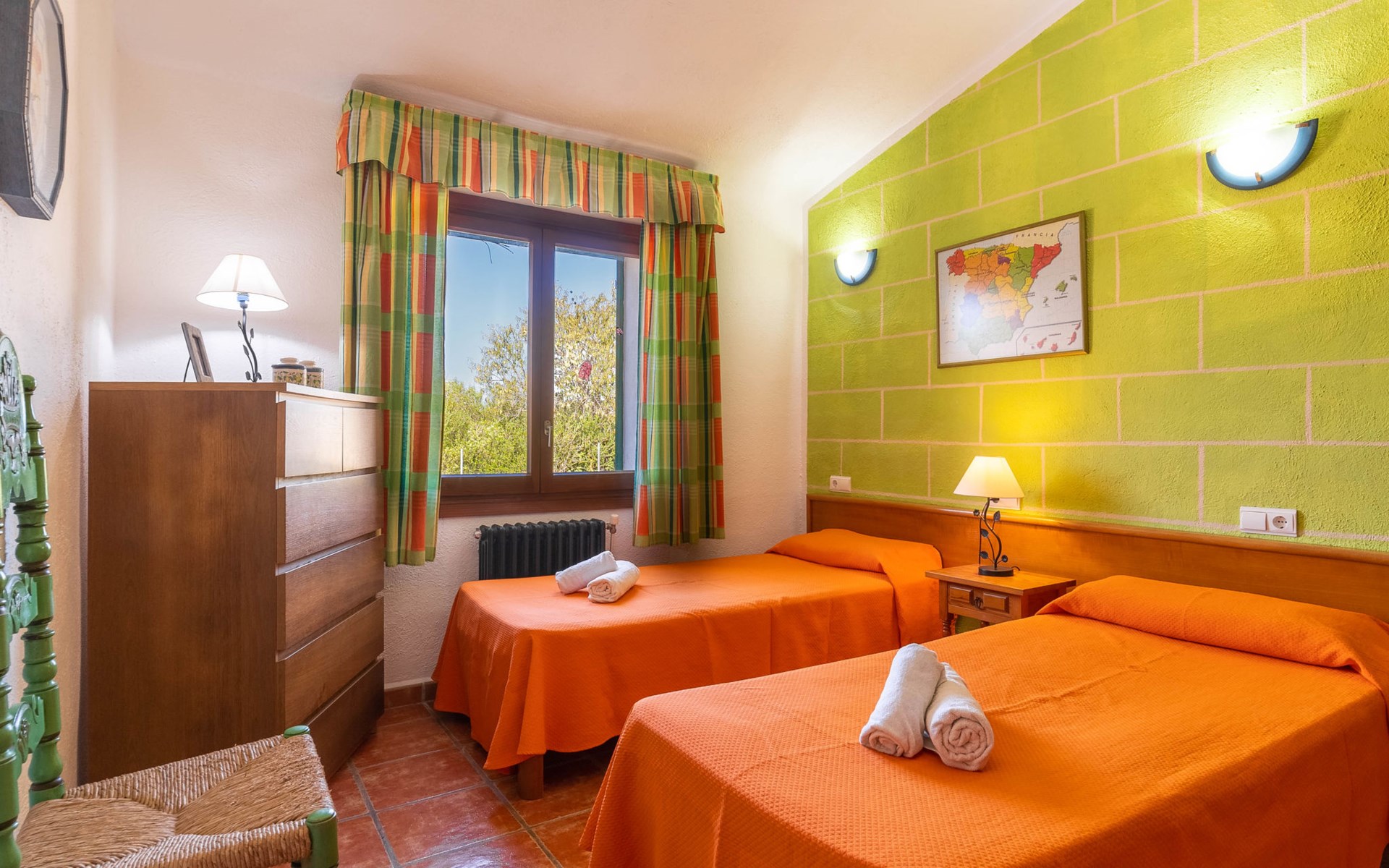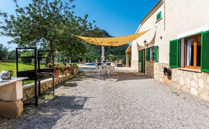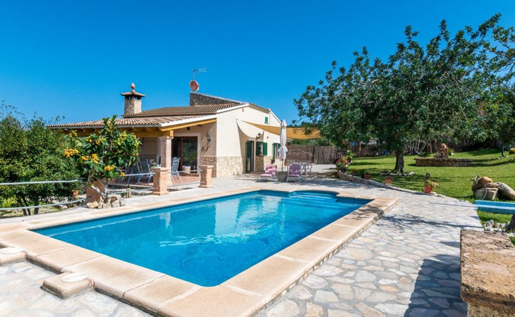 3 km from Alcúdia: Very rustic, comfortable farm estate "Villa Lavanda", 2 storeys, renovated in 2004, surrounded by trees and fields. Outside the resort, 4.5 km from the centre of Alcudia, in a quiet, sunny position residential area (villas), 500 m from the edge of the forest, 4 km from the sea, 4 km from the lake, 4 km from the beach, 4 km from the canal, in the countryside. Private: large, beautiful garden with lawn and trees, orchard, swimming pool angular (3 x 6 m, seasonal availability: 01.Apr. - 01.Nov.). Outdoor shower, patio, pergola, garden furniture, barbecue. In the house: internet access, WiFi, air conditioning, washing machine. Parking at the house on the premises. Shop 4 km, grocery 4 km, supermarket 4 km, restaurant 4 km, bar 4 km, bakery 4 km, café 4 km, internet café 4 km, pedestrian zone 4 km, bicycle rental 4 km, pub garden 4 km, 25 minute walk to the centre, bus stop 4 km, sandy beach 4 km pebble beach 5 km, shingle beach 5 km, rocky beach 5 km, 4 km, diving center 5 km. Sports harbour 4.5 km, marina 4.5 km, golf course (18 hole) 5 km, surf school 3.9 km, sailing school 4.5 km, tennis 4 km, minigolf 4 km, riding stable 4 km, sports centre 4.5 km, walking paths from the house 3 km, cycle lane 3 km, children's playground 4 km. Nearby attractions: Ciudad Romana de Pollentia (Alcúdia). S'Albufera de Mallorca, Parque Aquático Hidropark. Hiking paths: Puig de Sant Martí, Sa Talaia d'Alcúdia. Please note: car recommended, no lift. Suitable for families, suitable for seniors. Object suitable for 6 adults groups of teenagers on request only. Loading and unloading of baggage is possible at the holiday house. The owner lives on the same property. Airfield 60 km from the property.