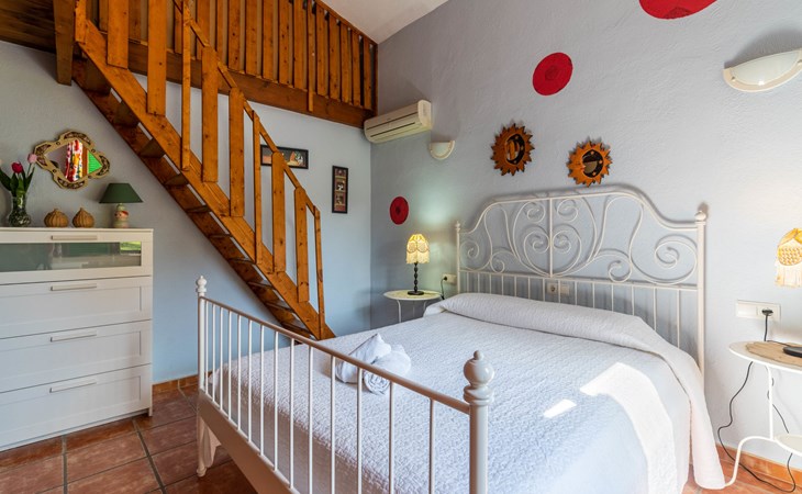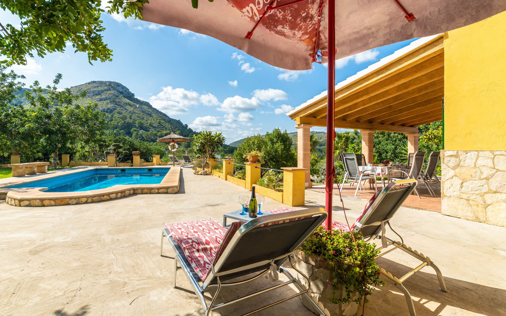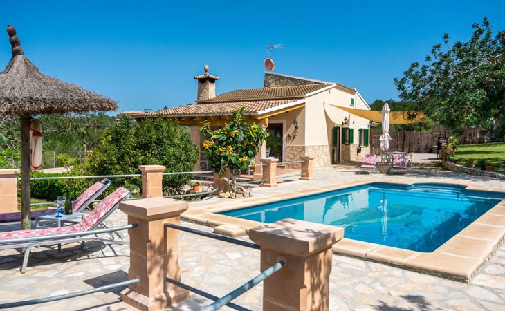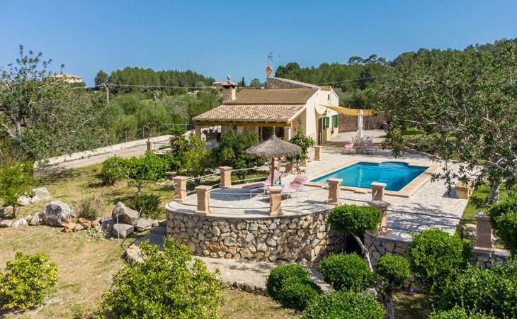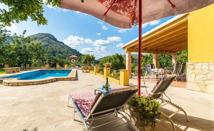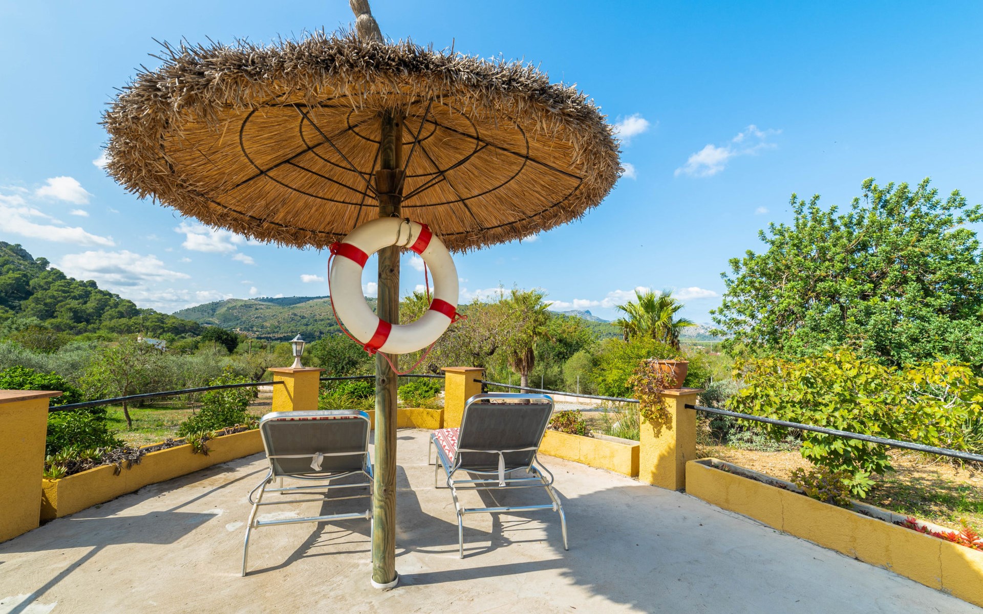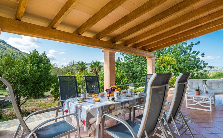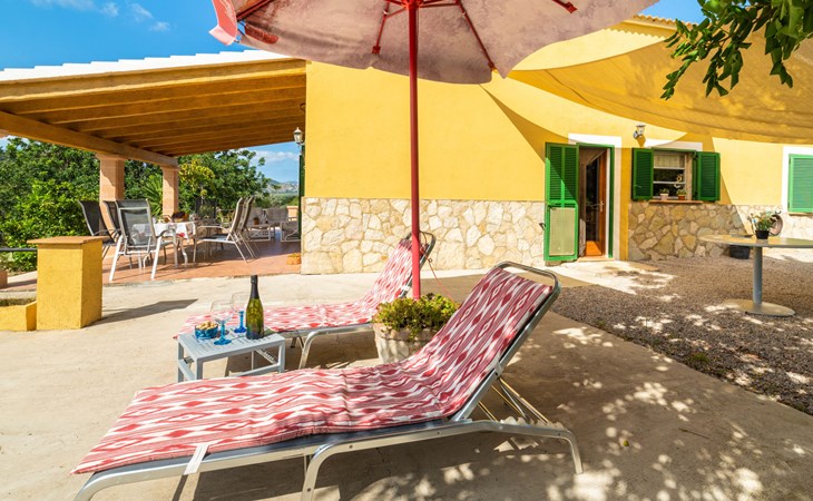 3 km from Alcúdia: Very rustic, comfortable farm estate "Villa Lavanda", 2 storeys, renovated in 2004, surrounded by trees and fields. Outside the resort, 4.5 km from the centre of Alcudia, in a quiet, sunny position residential area (villas), 500 m from the edge of the forest, 4 km from the sea, 4 km from the lake, 4 km from the beach, 4 km from the canal, in the countryside. Private: large, beautiful garden with lawn and trees, orchard, swimming pool angular (3 x 6 m, seasonal availability: 01.Apr. - 01.Nov.). Outdoor shower, patio, pergola, garden furniture, barbecue. In the house: internet access, WiFi, air conditioning, washing machine. Parking at the house on the premises. Shop 4 km, grocery 4 km, supermarket 4 km, restaurant 4 km, bar 4 km, bakery 4 km, café 4 km, internet café 4 km, pedestrian zone 4 km, bicycle rental 4 km, pub garden 4 km, 25 minute walk to the centre, bus stop 4 km, sandy beach 4 km pebble beach 5 km, shingle beach 5 km, rocky beach 5 km, 4 km, diving center 5 km. Sports harbour 4.5 km, marina 4.5 km, golf course (18 hole) 5 km, surf school 3.9 km, sailing school 4.5 km, tennis 4 km, minigolf 4 km, riding stable 4 km, sports centre 4.5 km, walking paths from the house 3 km, cycle lane 3 km, children's playground 4 km. Nearby attractions: Ciudad Romana de Pollentia (Alcúdia). S'Albufera de Mallorca, Parque Aquático Hidropark. Hiking paths: Puig de Sant Martí, Sa Talaia d'Alcúdia. Please note: car recommended, no lift. Suitable for families, suitable for seniors. Object suitable for 6 adults groups of teenagers on request only. Loading and unloading of baggage is possible at the holiday house. The owner lives on the same property. Airfield 60 km from the property.