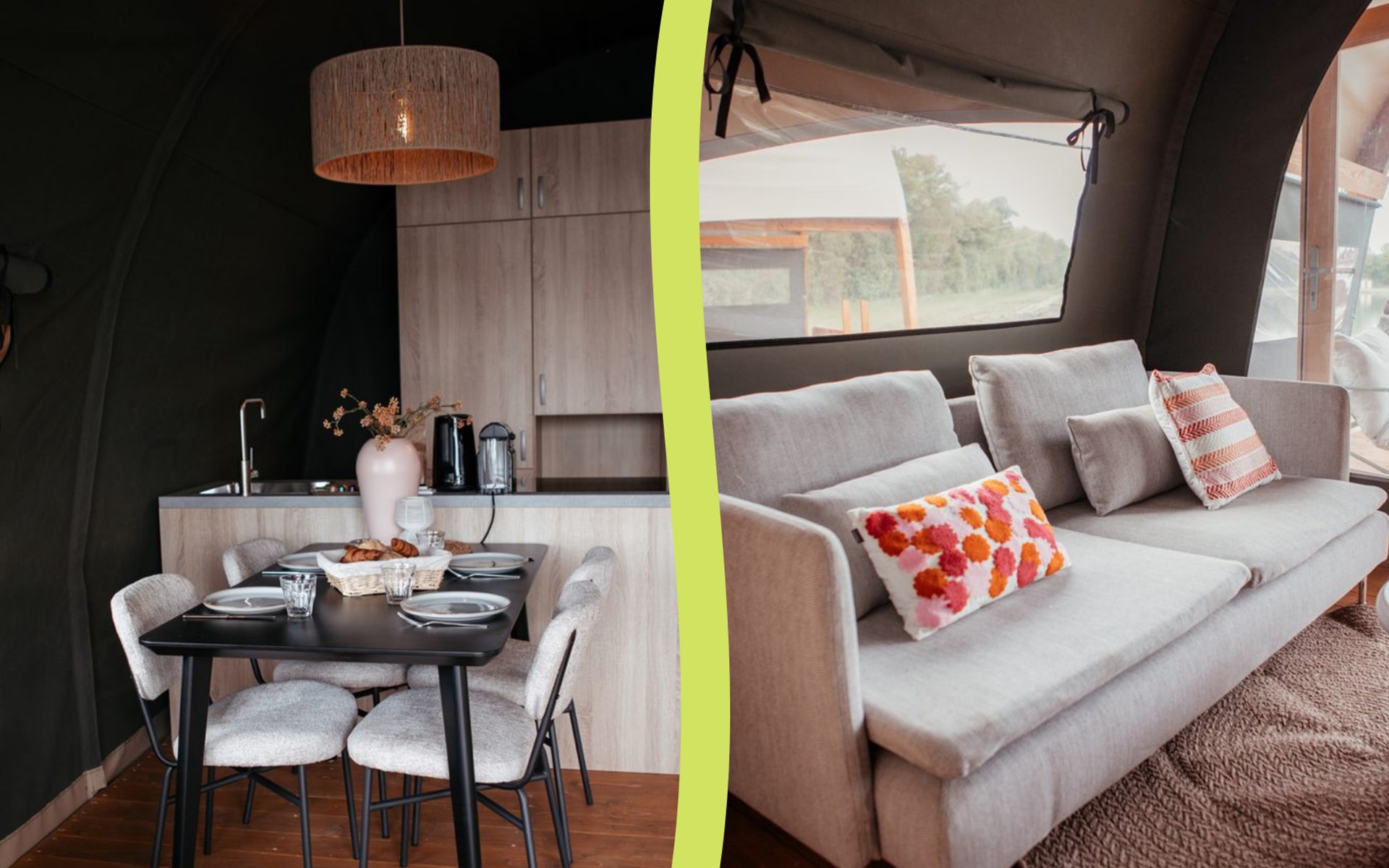 At De Achterste Hoef, you can experience the ultimate glamping sensation in our brand-new Waterlodge. Come and enjoy the outdoors in a luxury lodge tent with a rugged appearance. The location by the water and the luxurious interior ensure an unforgettable holiday in Brabant.