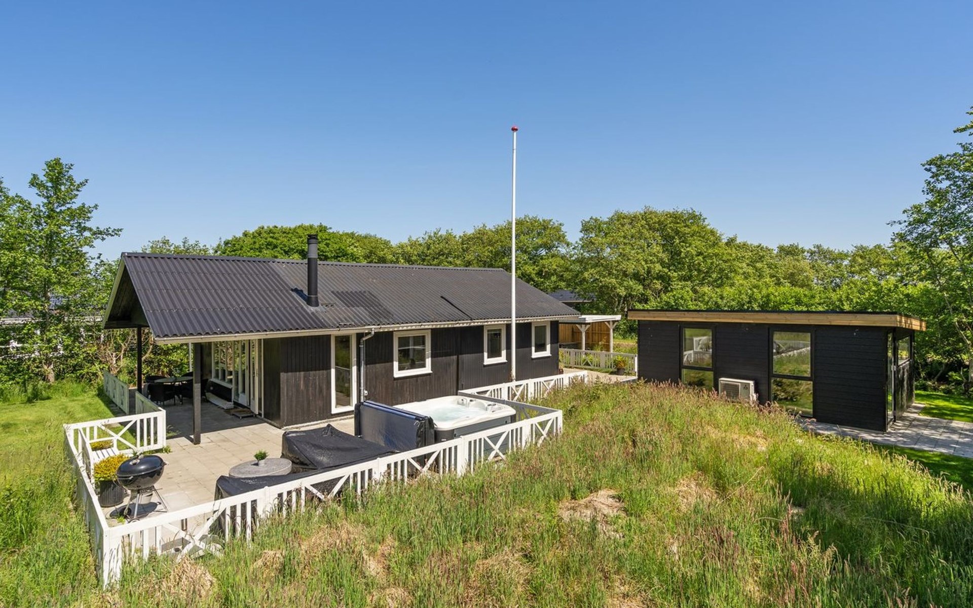 Single-family house, built in 1971. 1.5 km from the sea. Private: natural state property 1'876 m2. Barbecue. In the house: washing machine. Parking at the house. Grocery 2 km. The owner does not accept any youth groups.