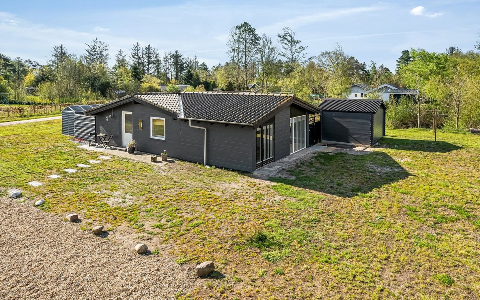 Single-family house, built in 1970. 13 km from the sea. Private: natural state property 1'200 m2. Outdoor shower. In the house: trampoline, washing machine, tumble dryer. Parking at the house. Grocery 650 m. The owner does not accept any youth groups.