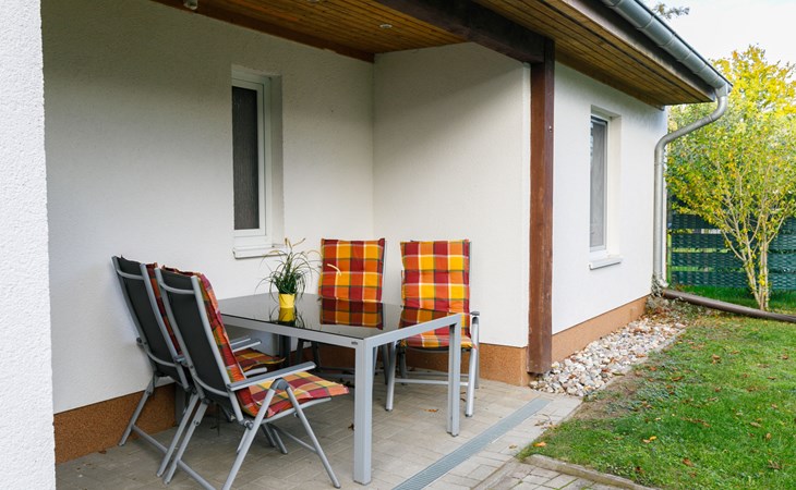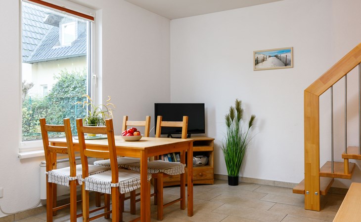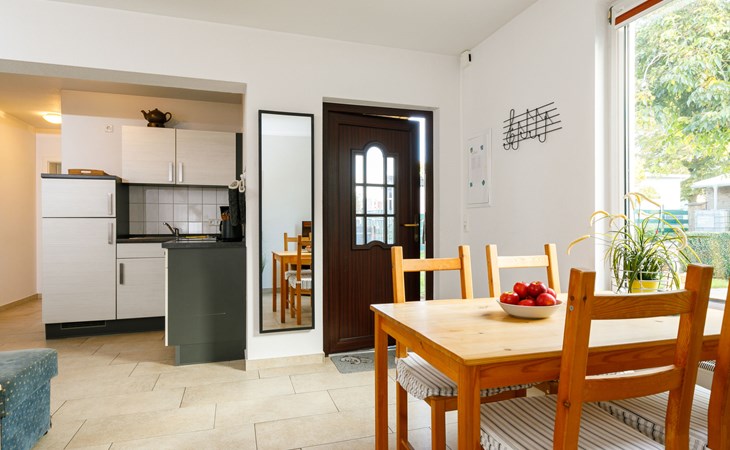 Single-family house "Ella". On the outskirts, 1 km from the centre of Zinnowitz, 1 km from the sea, 1 km from the beach. Parking on the premises. Supermarket 550 m, restaurant 500 m, bakery 1 km, café 1 km, bus stop 100 m, railway station 450 m, sandy beach 1.3 km, thermal baths "Bernsteintherme" 1.5 km. Marina 2.1 km, golf course (18 hole) 25 km, surf school 1.5 km, tennis 1.1 km, minigolf 1.3 km.