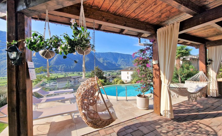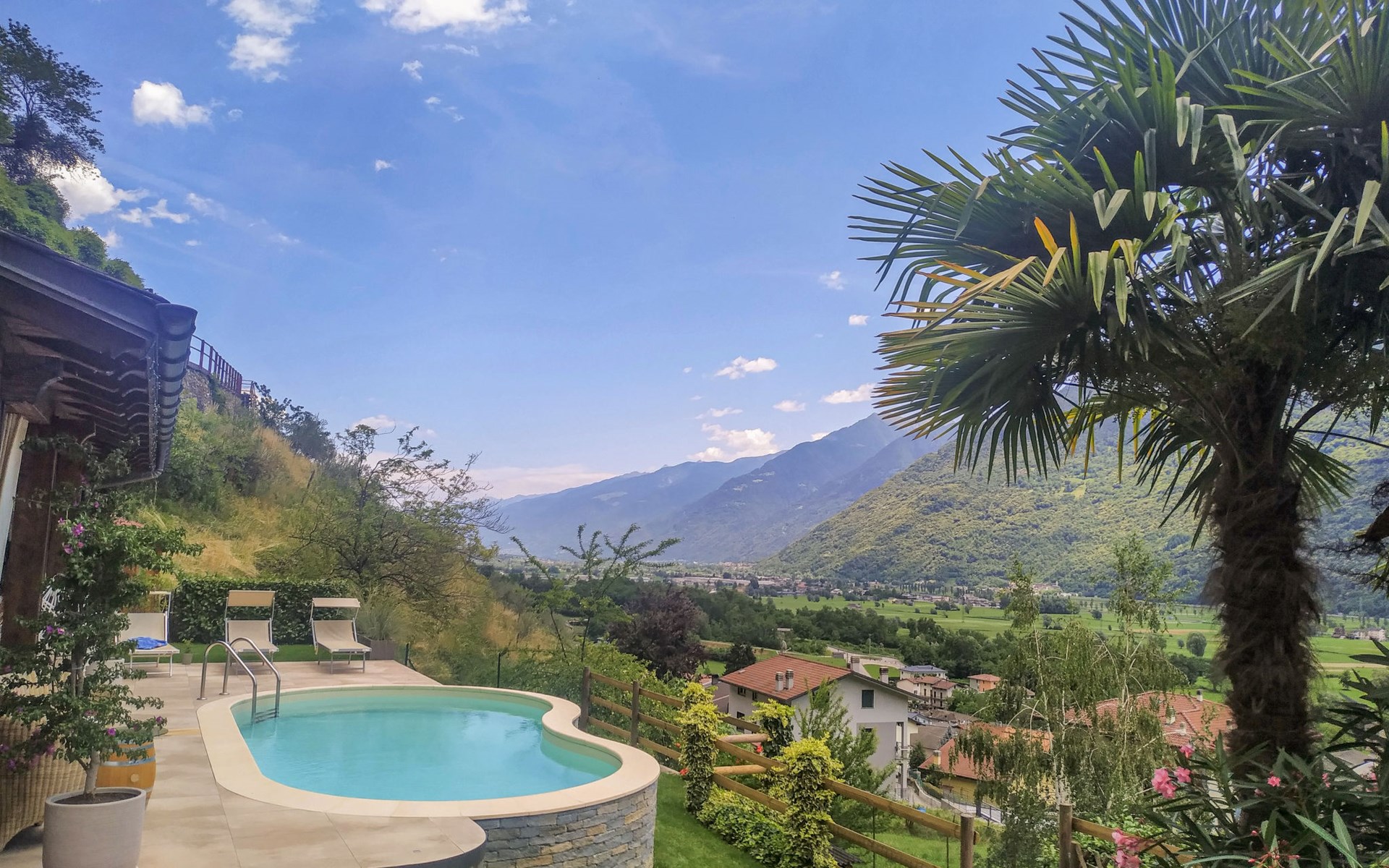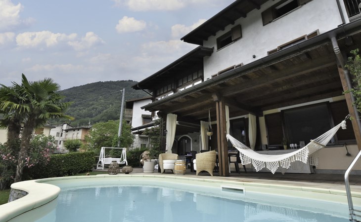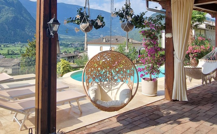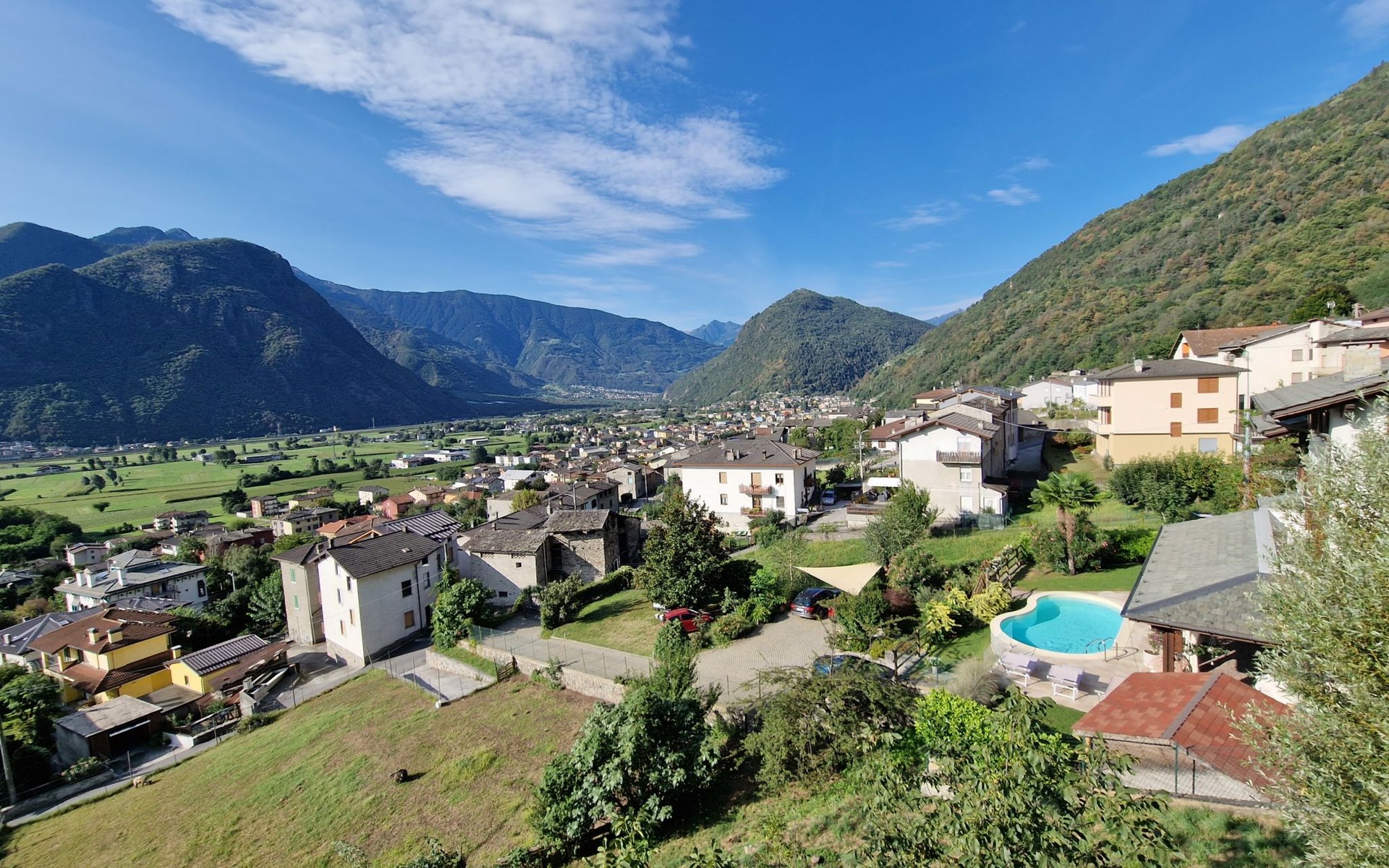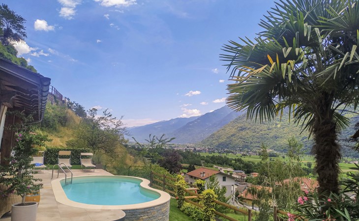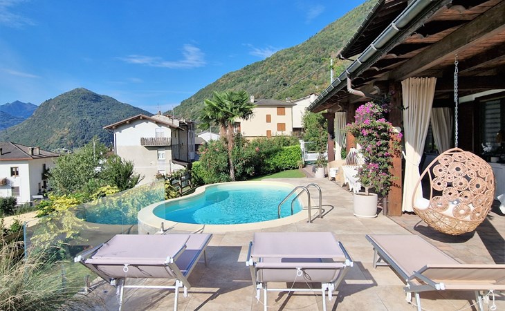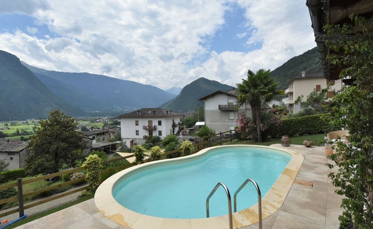 Small, beautiful apartment house "Valley View Pool Apartment", 266 m a.s.l., 3 storeys. 1 km from the centre of Ardenno, in a quiet, sunny position residential area (villas), south facing position. For shared use: large terraced garden (fenced), swimming pool kidney-shaped (depth 135 - 135 cm, seasonal availability: 15.Apr. - 15.Oct.). Terrace, garden furniture, barbecue, pool maintenance by the owner/gardener. In the house: storage room for bicycles, sun terrace, storage room for skis. Parking at the house. Supermarket 1 km, restaurant, bar 100 m, bus stop 700 m, thermal baths "Terme di Bormio" 82 km. Nearby attractions: Morbegno 13 km, Ponte Tibetano Ponte nel Cielo 16 km, Val di Mello 18 km, Fly Emotion (Zipline) 20 km, Sondrio 20 km, Train Bernina Express: Tirano-St Moritz 45 km. Well-known ski regions can easily be reached: Madesimo 66 km, Bormio 82 km. Well-known lakes can easily be reached: Lago di Como 25 km. Hiking paths: Bagni di Masino, Lago San Martino, Lago di Scermendone, Monte Belinghera, Sentiero Valtellina. Please note: car recommended. Residence with electric gates. The owner lives on the same property. The owner has a dog.