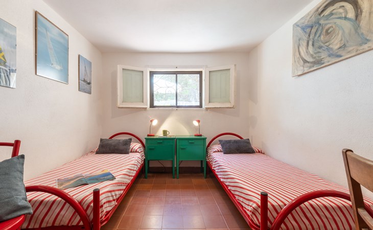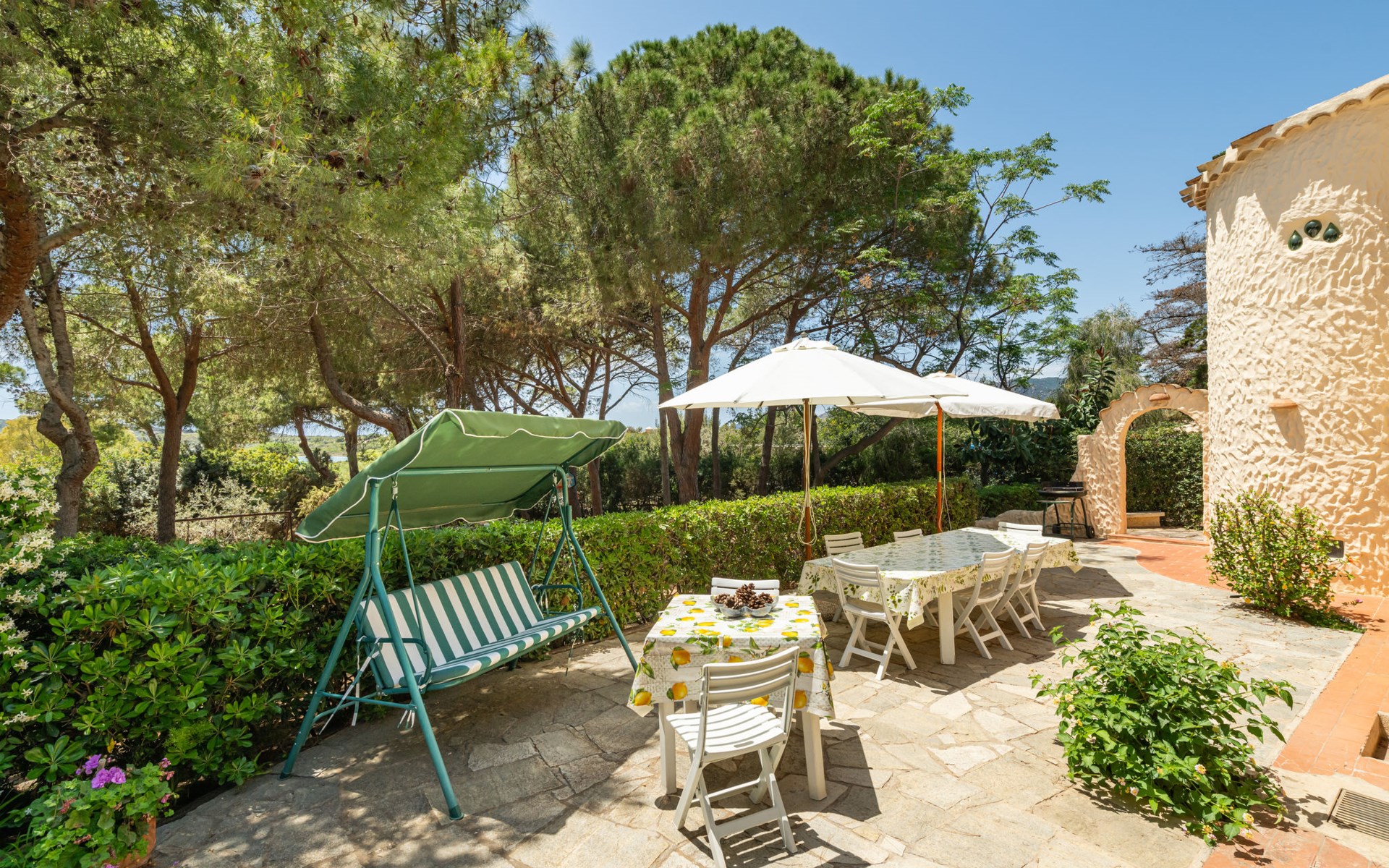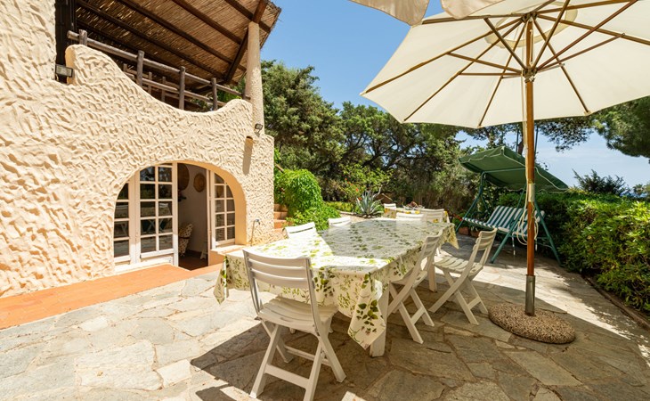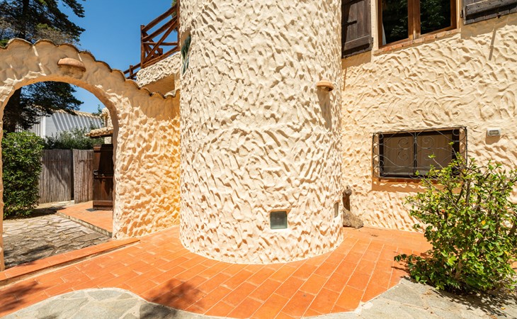 The complex is fully fenced and guarded by private security 24 hours a day,offers free beach service,supplied with the Villa from mid-June to mid-September there are 2 beach umbrellas and the 2 deck chairs included in the price. large villa, surrounded by trees. 2.5 km from the centre of Villasimius, in a sunny position, 300 m from the sea. Private: garden 2'500 m2 (fenced) with wildlife garden and trees. Outdoor shower, basketball, children's playground (sandbox). Motor access to the house. Parking (for 2 cars) at the house. Supermarket 500 m, restaurant 300 m, bar 500 m, bus stop "via Roma La Lanterna" 2 km, railway station "Cagliari" 60 km, ferry "Cagliari" 60 km, sandy beach "Serr' e Morus" 300 m, diving center 600 m. Marina, golf course (18 hole) 600 m, sailing school. Nearby attractions: Costa Rei 15 km, Cagliari 50 km. Please note: car recommended. 24hr guard.