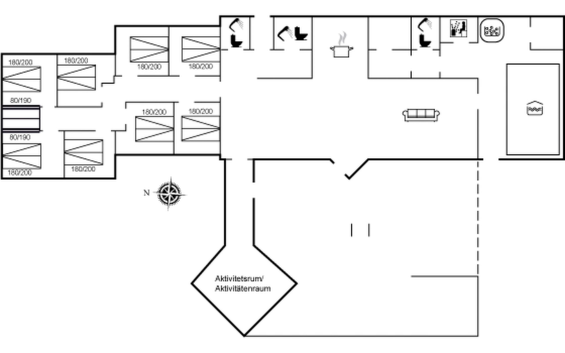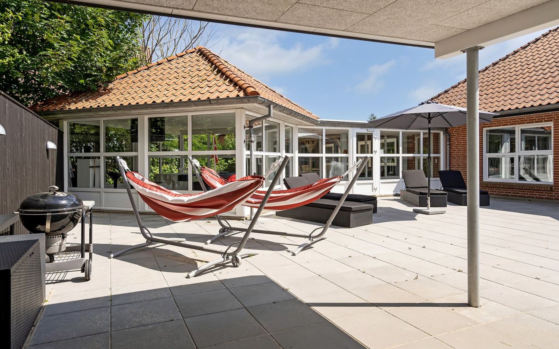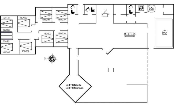 Single-family house, built in 1997. 17 km from the sea. For shared use: garden. Private: natural state property 4'500 m2, garden (fenced), indoor pool (3 x 6 m, 18 m2, depth 135 - 135 cm). Terrace (200 m2), barbecue, children's playground (slide, swing). In the house: sauna, washing machine, tumble dryer. Parking at the house. E-charging station. Grocery 4 km. The owner does not accept any youth groups.