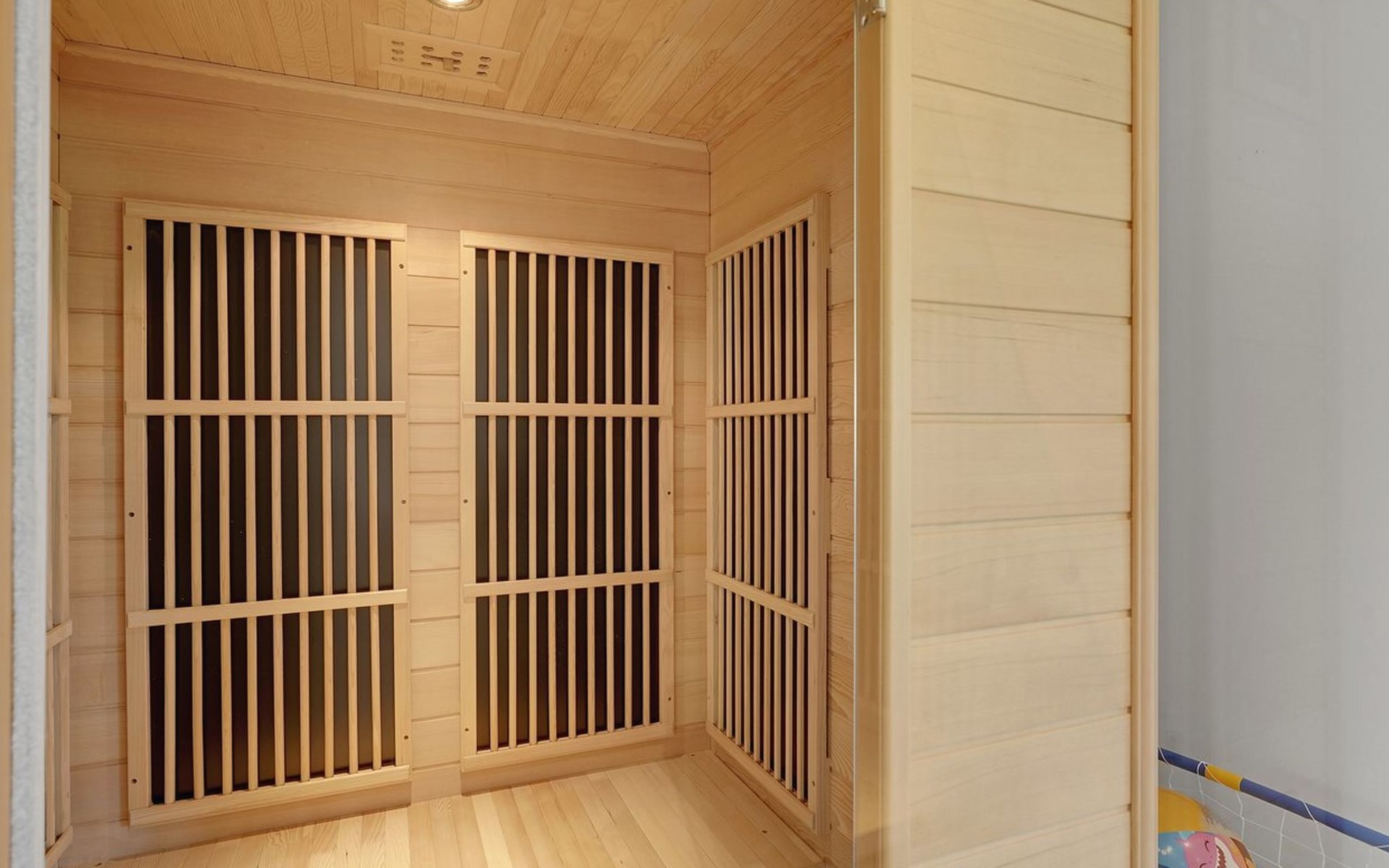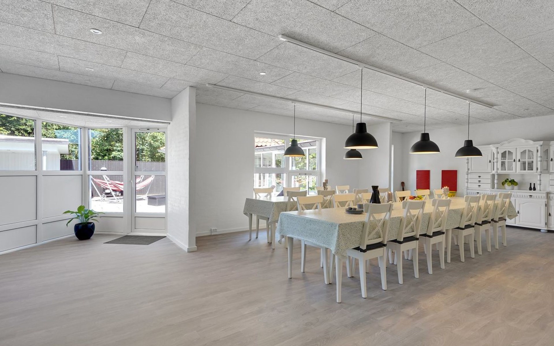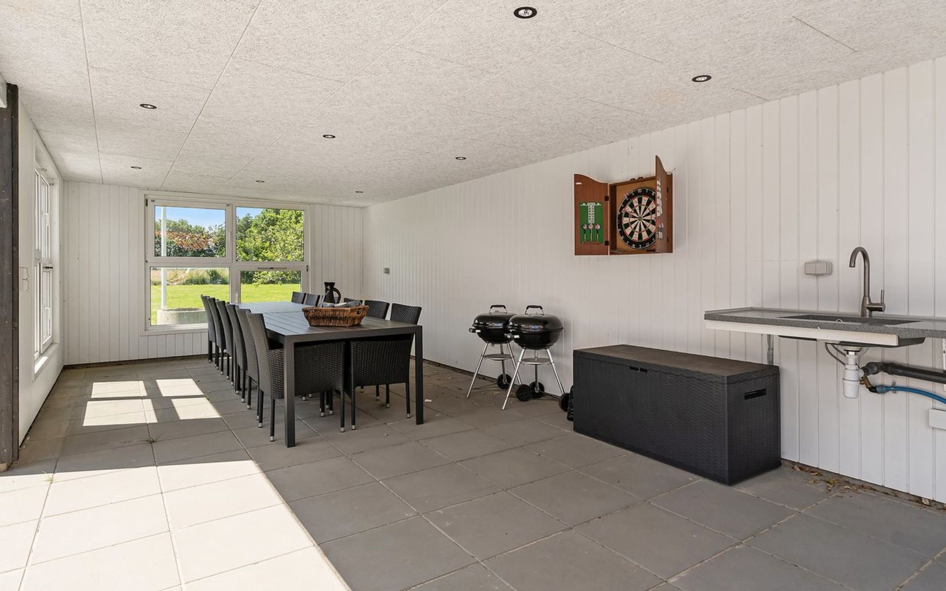 Single-family house, built in 1997. 17 km from the sea. For shared use: garden. Private: natural state property 4'500 m2, garden (fenced), indoor pool (3 x 6 m, 18 m2, depth 135 - 135 cm). Terrace (200 m2), barbecue, children's playground (slide, swing). In the house: sauna, washing machine, tumble dryer. Parking at the house. E-charging station. Grocery 4 km. The owner does not accept any youth groups.