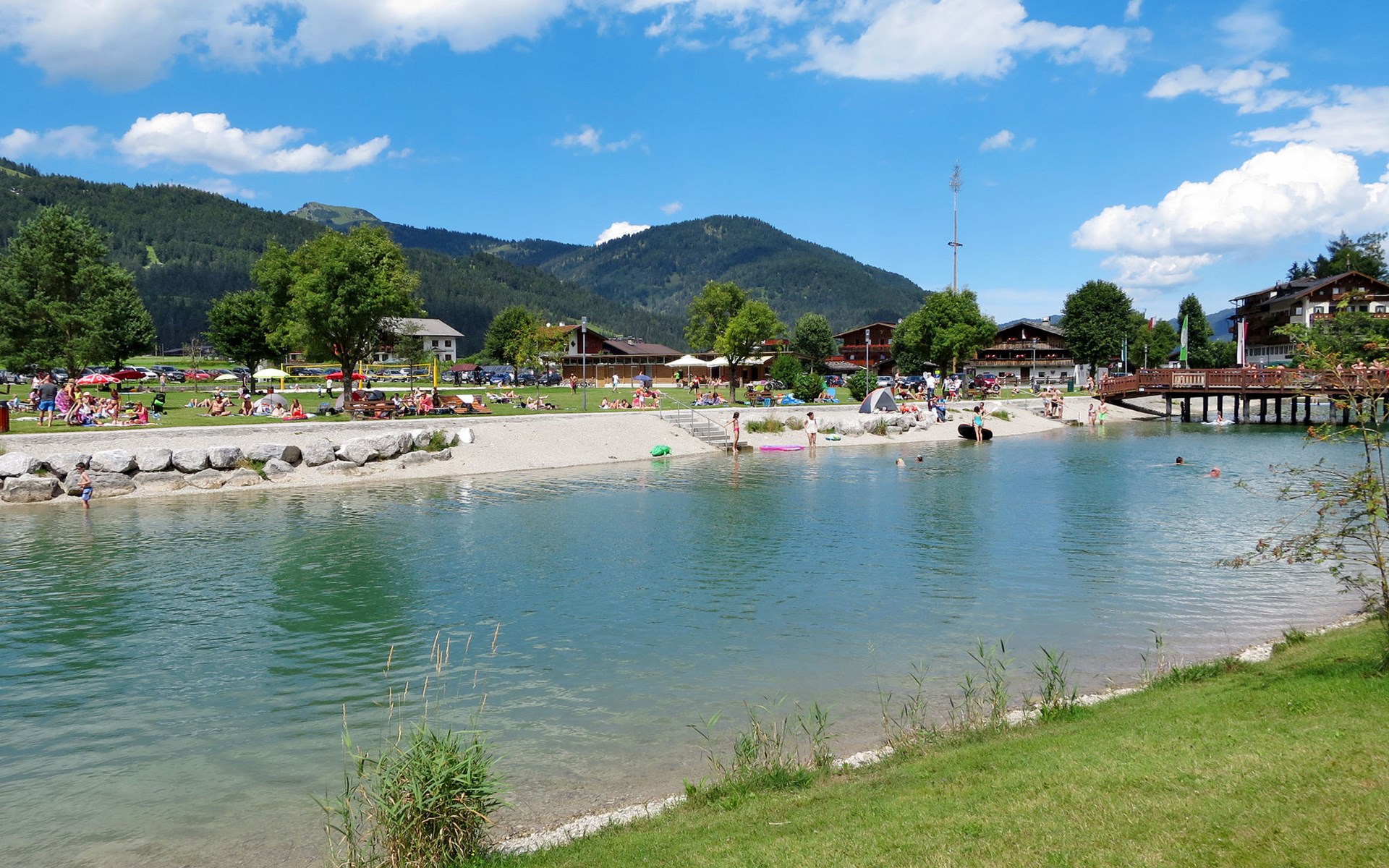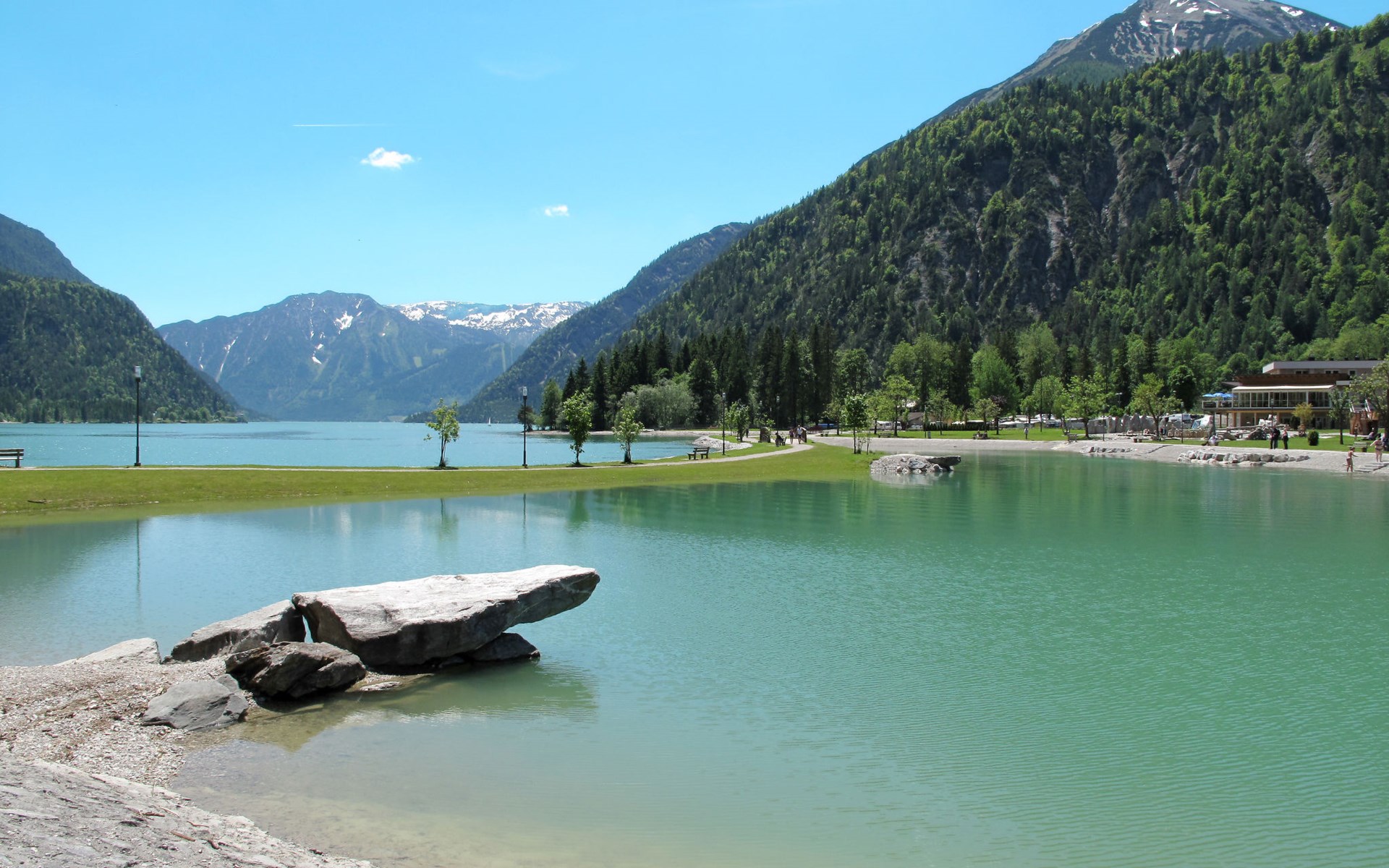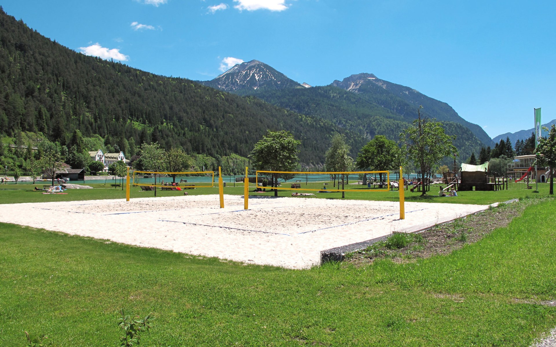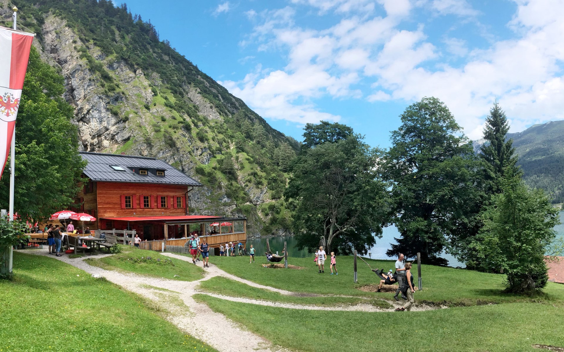 Achenkirch: Beautiful apartment house "Dein Wellnest", 3 storeys. 6 apartments in the property. 2 km from the centre of Achenkirch, in a sunny position, 900 m from the lake. For shared use: garden with meadow. Patio, garden furniture, barbecue. In the house: storage room for bicycles. Roofed, parking at the house. Grocery 50 m, supermarket 50 m, restaurant 50 m, café 900 m, bicycle rental 200 m, pub garden 900 m, bus stop 100 m, pebble beach, thermal baths "Atoll in Eben/Maurach" 10 km, swimming bay 900 m, public bathing area 1.2 km, lake Achensee 900 m. Ski lift, chair lift 750 m, slopes 750 m, ski rental 200 m, ski bus stop 100 m, ski school 200 m, cross country ski track 30 m, children's playground 900 m. Nearby attractions: Abenteuerpark Achensee 3 km. Well-known ski regions can easily be reached: Christlum 750 m, Rofan (Maurach), Karwendel (Pertisau) 11 km, Zillertal 30 km. Well-known lakes can easily be reached: Achensee. Hiking paths: Rofan- und Karwendelgebirge, Zillertaler Alpen, Kitzbüheler Alpen.