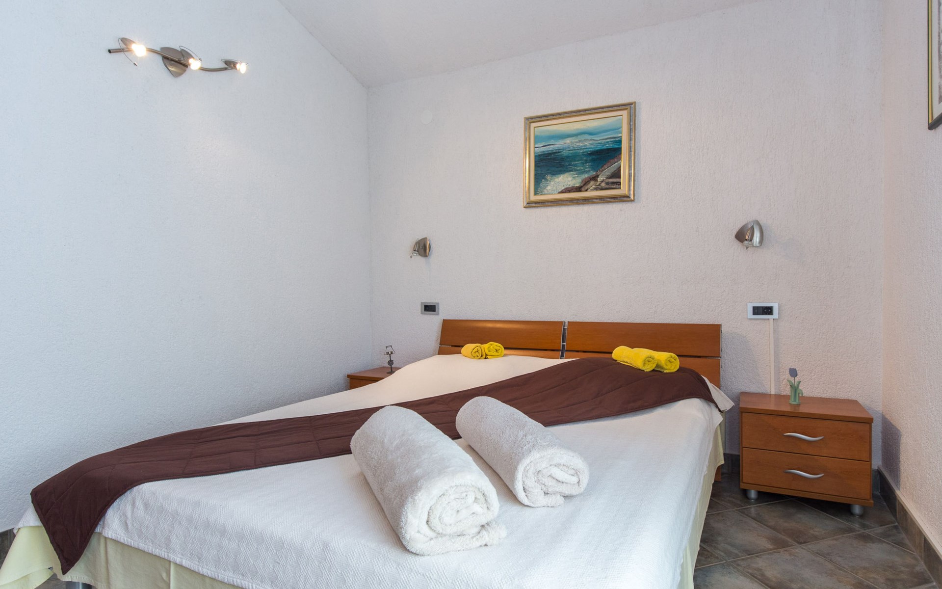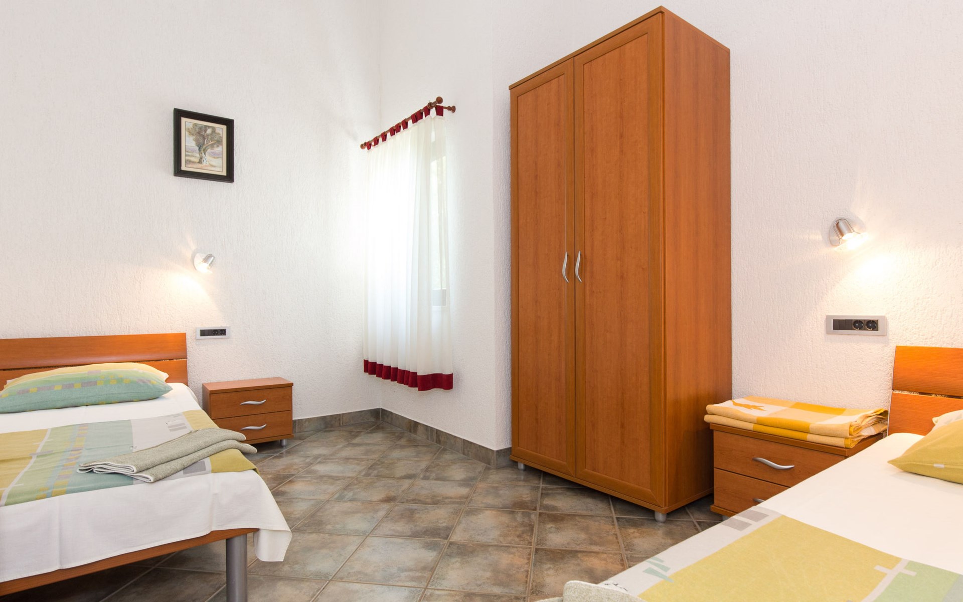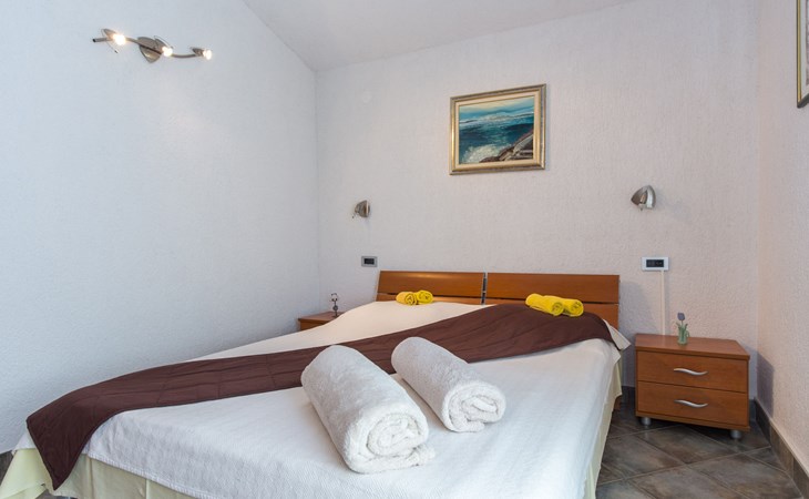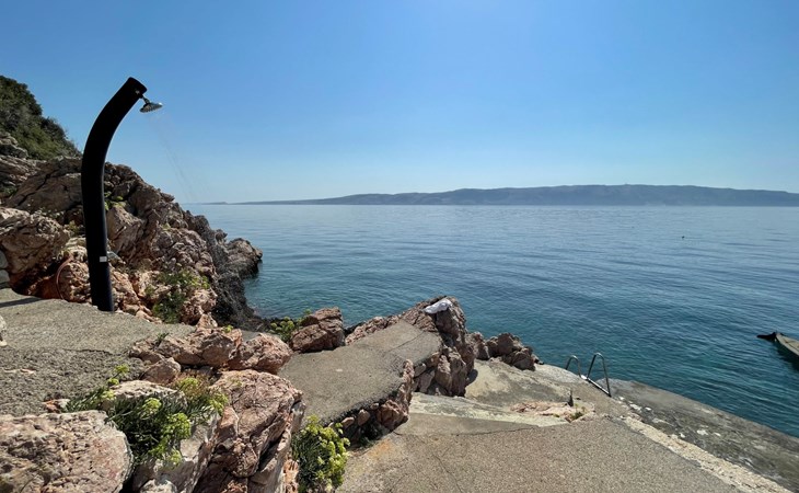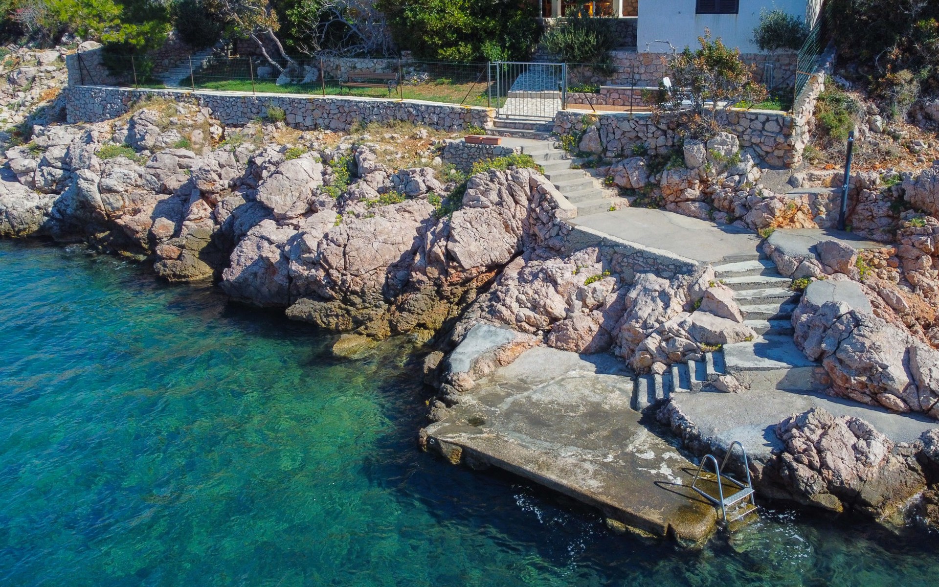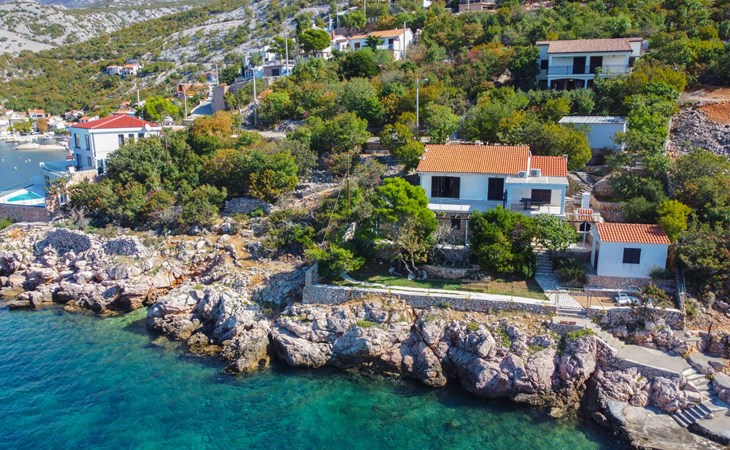 3-family house "Starigrad". 300 m from the centre, 20 km from the centre of Sveti Juraj, in a quiet, sunny, elevated position, 30 m from the sea, 30 m from the beach, in a cul-de-sac. For shared use: property 720 m2 (fenced), plants. In the house: internet access. Parking at the house on the premises. Shop 20 km, restaurant 13 km, bus stop 3.3 km, rocky beach, concrete beach 30 m. The owner does not accept any youth groups.