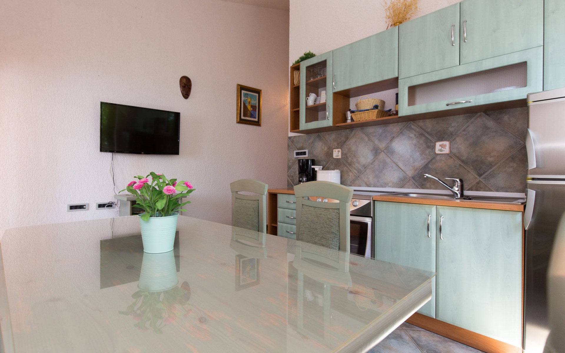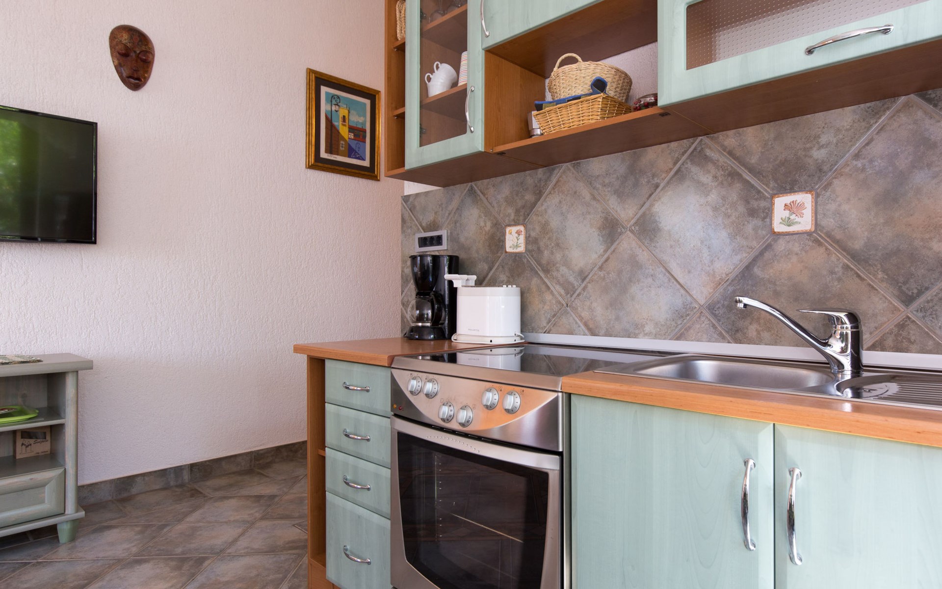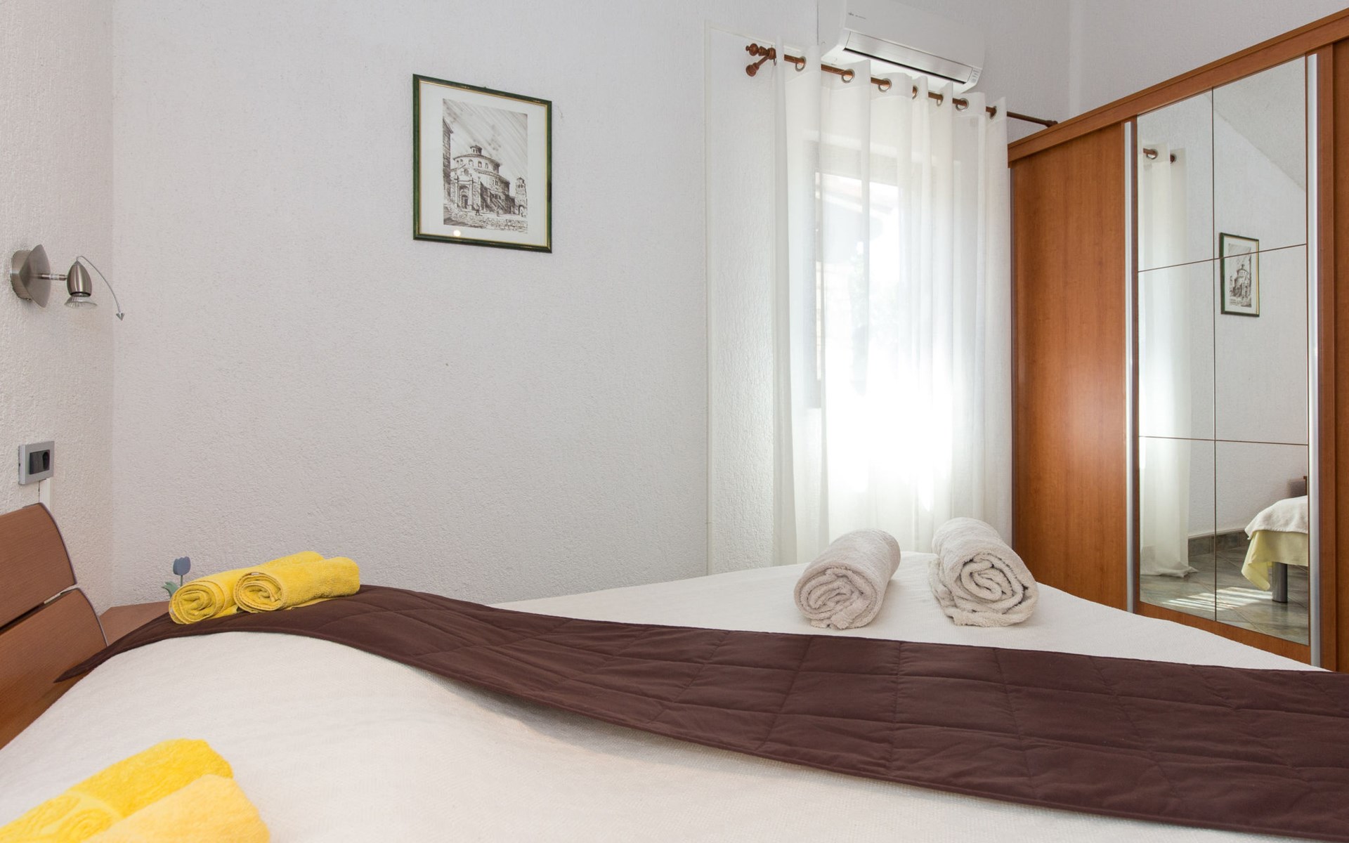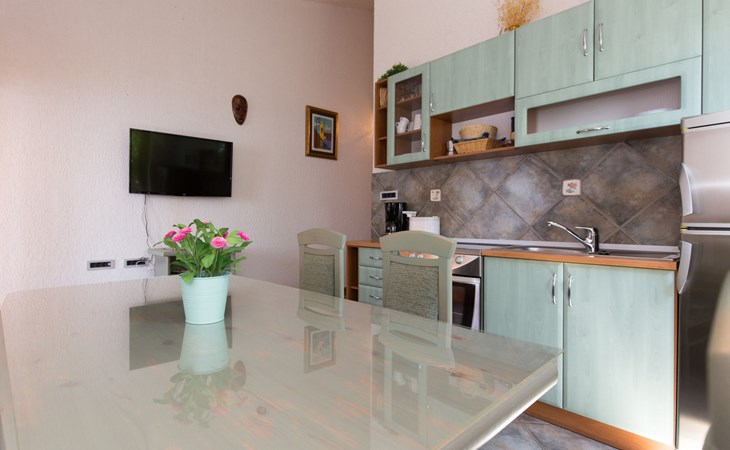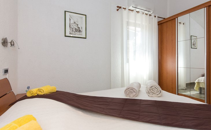3-family house "Starigrad". 300 m from the centre, 20 km from the centre of Sveti Juraj, in a quiet, sunny, elevated position, 30 m from the sea, 30 m from the beach, in a cul-de-sac. For shared use: property 720 m2 (fenced), plants. In the house: internet access. Parking at the house on the premises. Shop 20 km, restaurant 13 km, bus stop 3.3 km, rocky beach, concrete beach 30 m. The owner does not accept any youth groups.