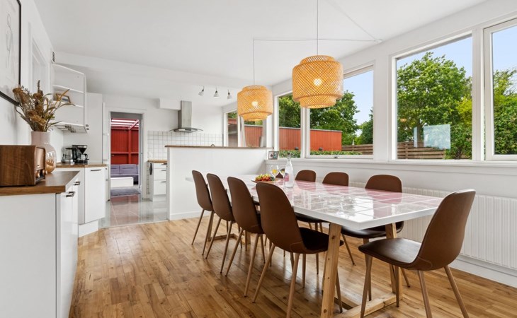 Single-family house, built in 1963. 1 km from the sea. For shared use: garden. Private: natural state property 1'161 m2, garden (fenced). Barbecue, children's playground (swing). In the house: washing machine, tumble dryer. Parking at the house. Carport. Grocery 1.5 km. Golf course 6 km. The owner does not accept any youth groups.