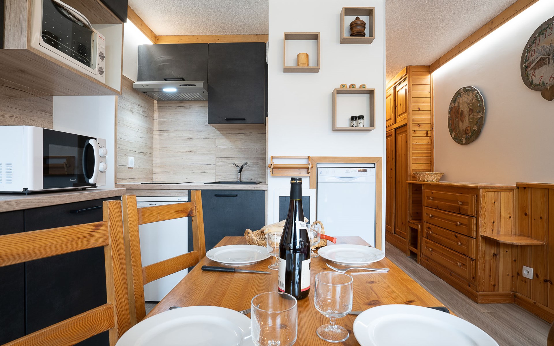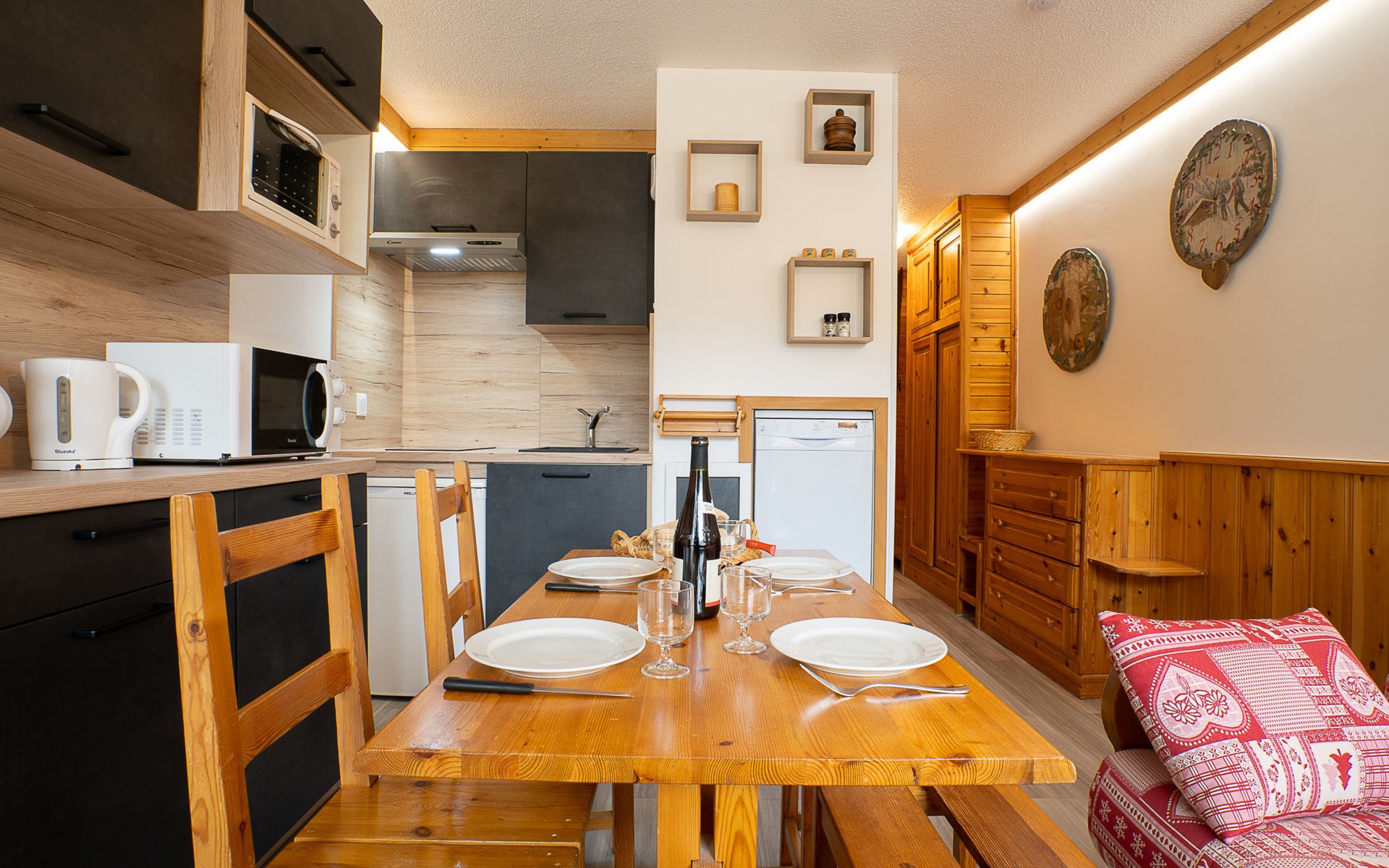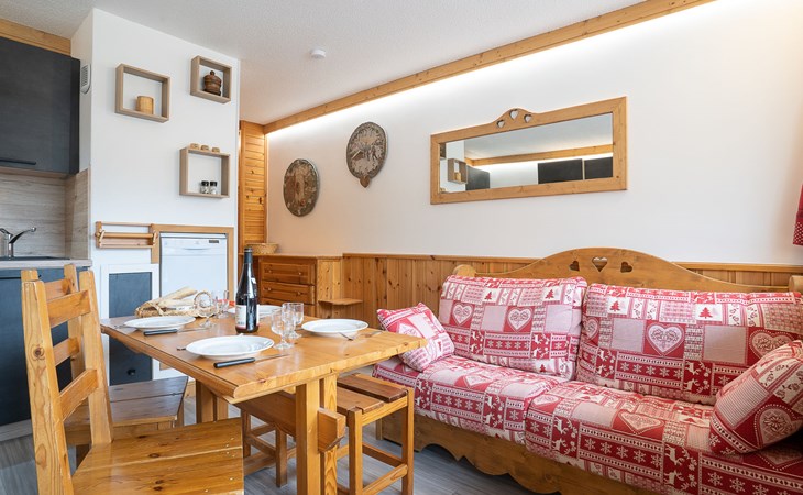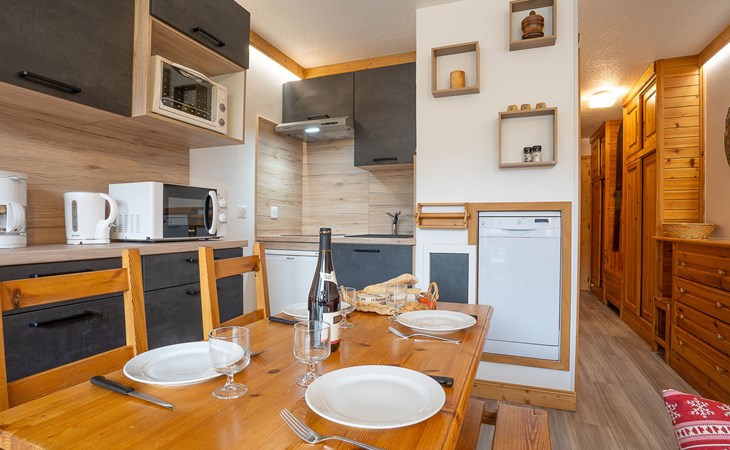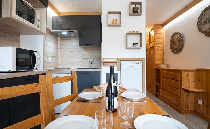 Small residence "Les Asters", 5 storeys. In the district of Fontanettes 800 m from the centre of La Croisette, in a quiet position, 200 m from the skiing area. Public parking on the road. Grocery, shopping centre 800 m, 10 minute walk to the centre, bus stop " ARRET les fontanettes" 500 m. Sports centre 800 m, chair lift, skisport facilities 200 m, slopes 50 m, ski rental 50 m, ski school 800 m, cross country ski track 1.5 km. Well-known ski regions can easily be reached: Les 3 Vallées. Please note: no lift. The photograph shows a typical example. Additional accommodations can be booked.