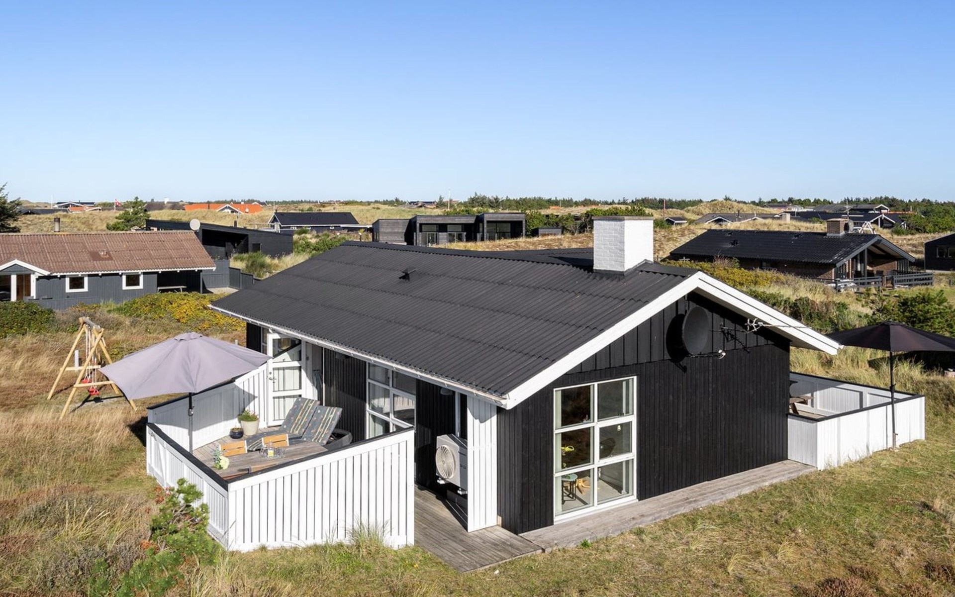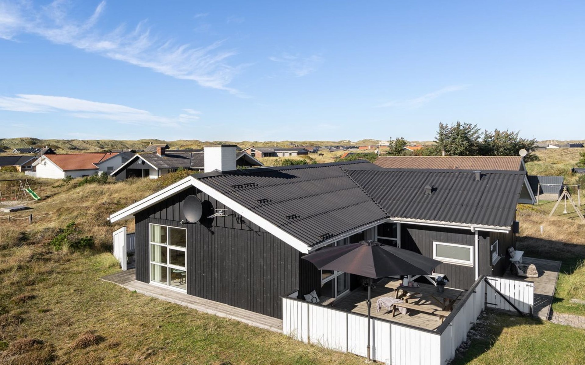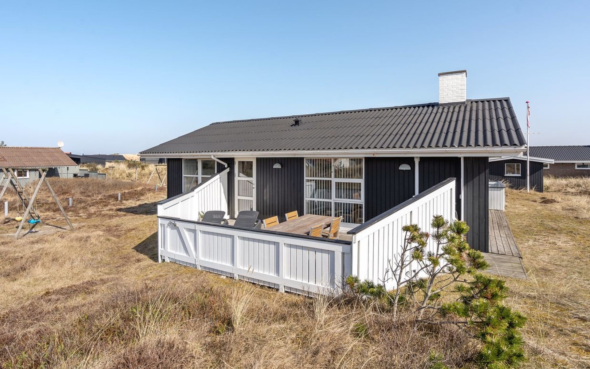Single-family house, built in 1979. 460 m from the sea. Private: natural state property 1'280 m2. Terrace (34 m2), children's playground (swing). In the house: sauna, washing machine, tumble dryer. Parking at the house. Carport. Grocery 800 m.