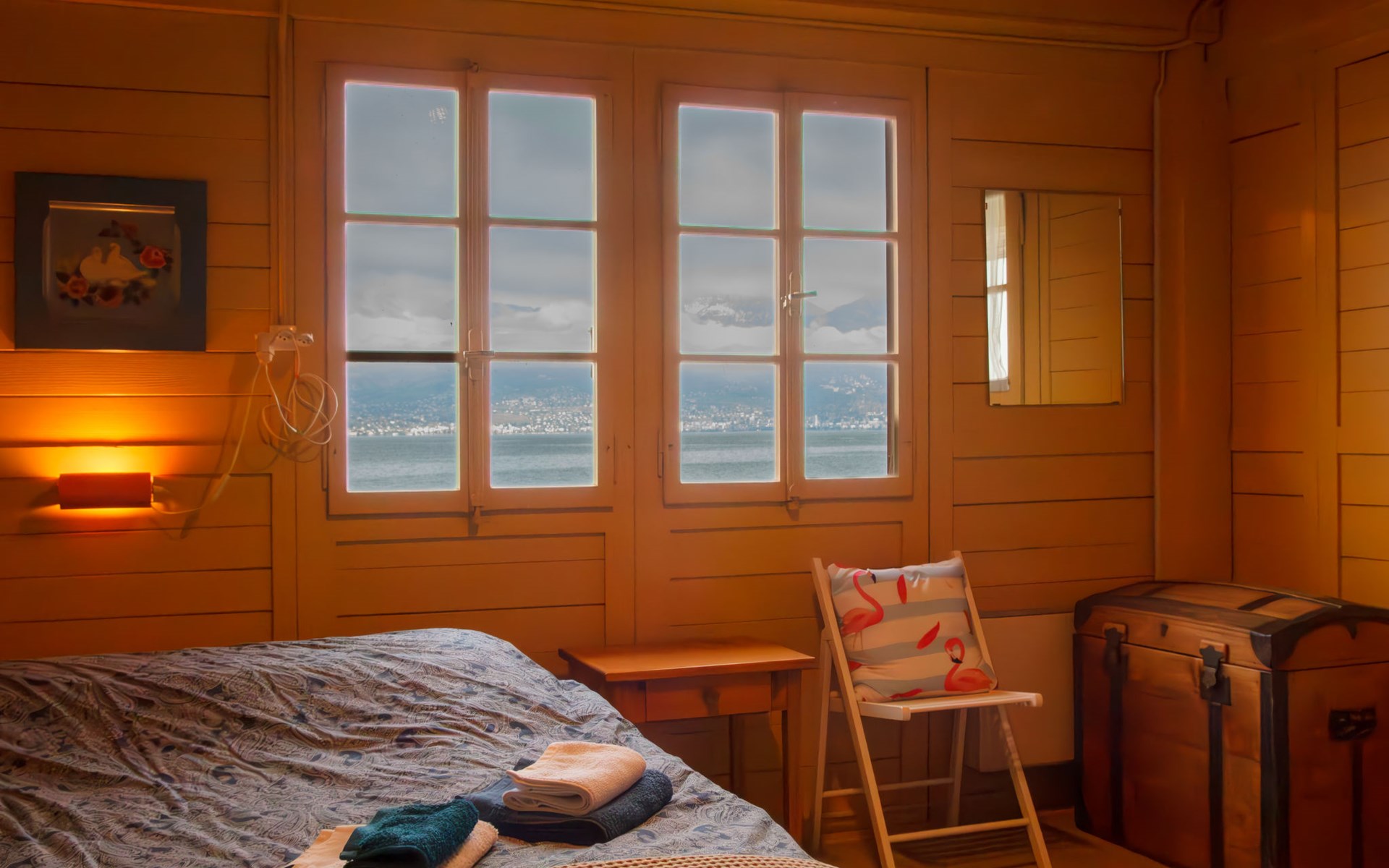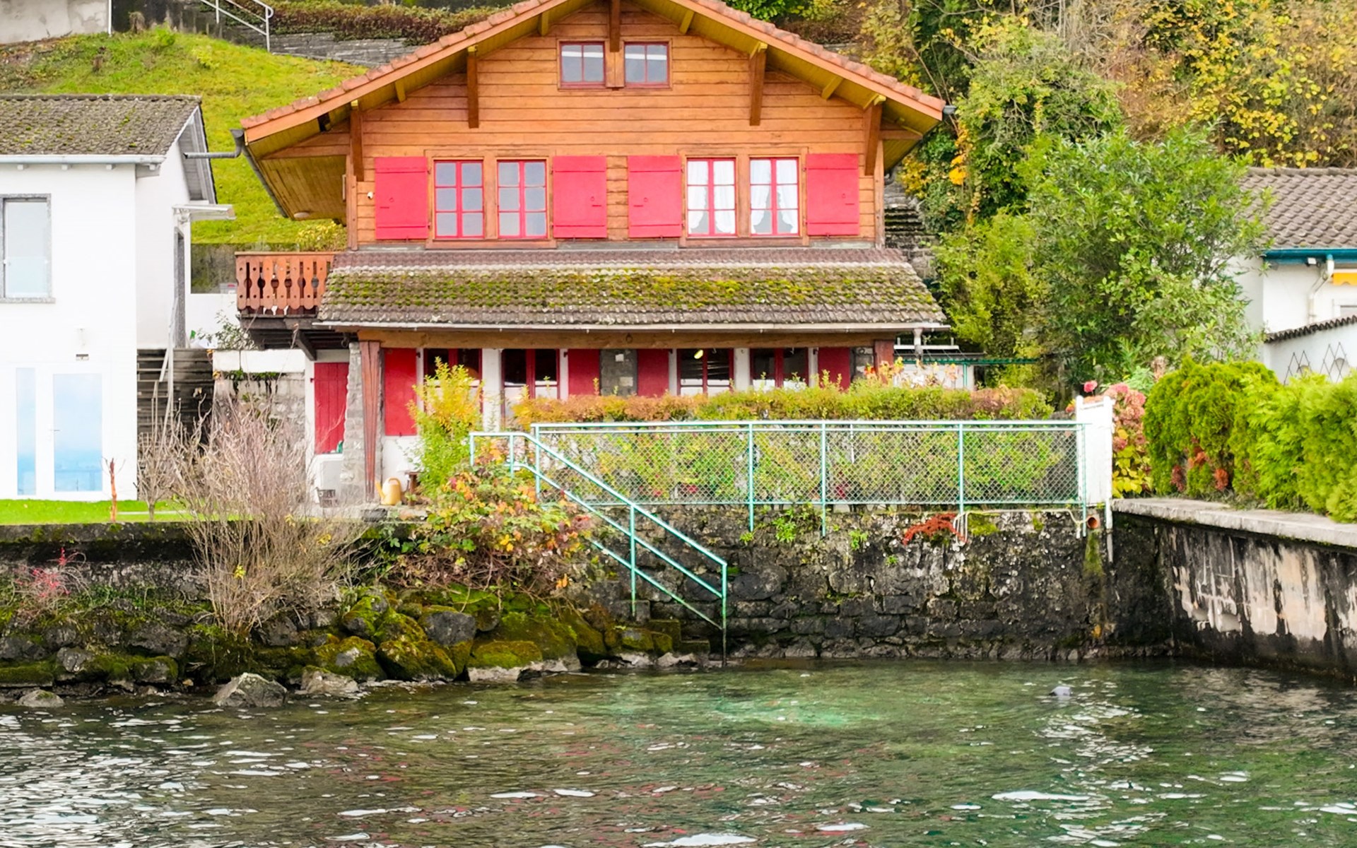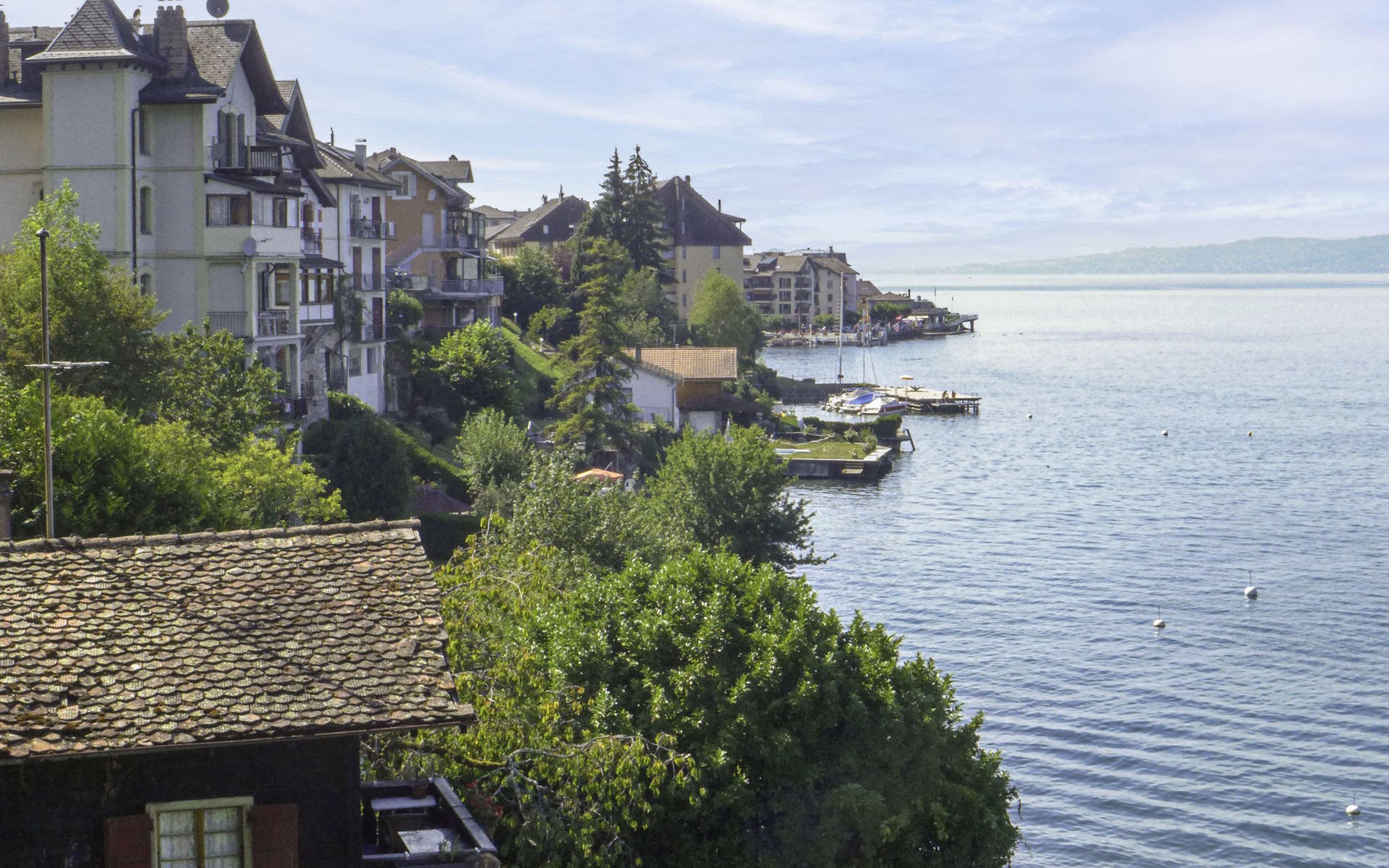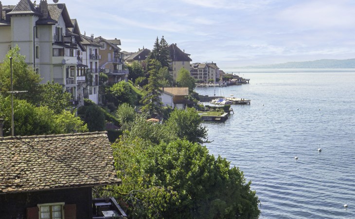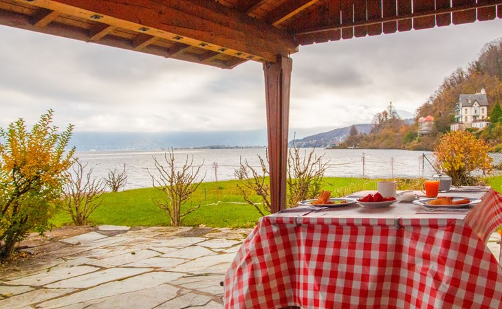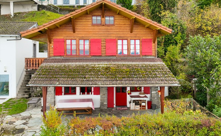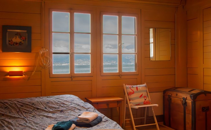 Cosy, rustic chalet "Le Cabanon". In a sunny position, on the lake. Stepped path (39 steps) to the house. Roofed, parking (limited number of spaces) at the house. Shop 15 km, grocery 450 m, supermarket 5.4 km, restaurant 400 m, railway station "Saint-Gingolph" 400 m, thermal baths "Lavey-les-Bains" 31 km, bathing lake 1 m. Nearby attractions: Swissvapeur Parc, Bouveret 6 km, Aquaparc Bouveret 6 km, Evian-Les-Bains 17 km. Well-known ski regions can easily be reached: Portes du Soleil 40 km, Bernex FR 24 km. Well-known lakes can easily be reached: Lac Léman. Owner lives in separate semi-detached house. Neighbourhood highly sensitive to noise. Quietness and good behaviour expected.