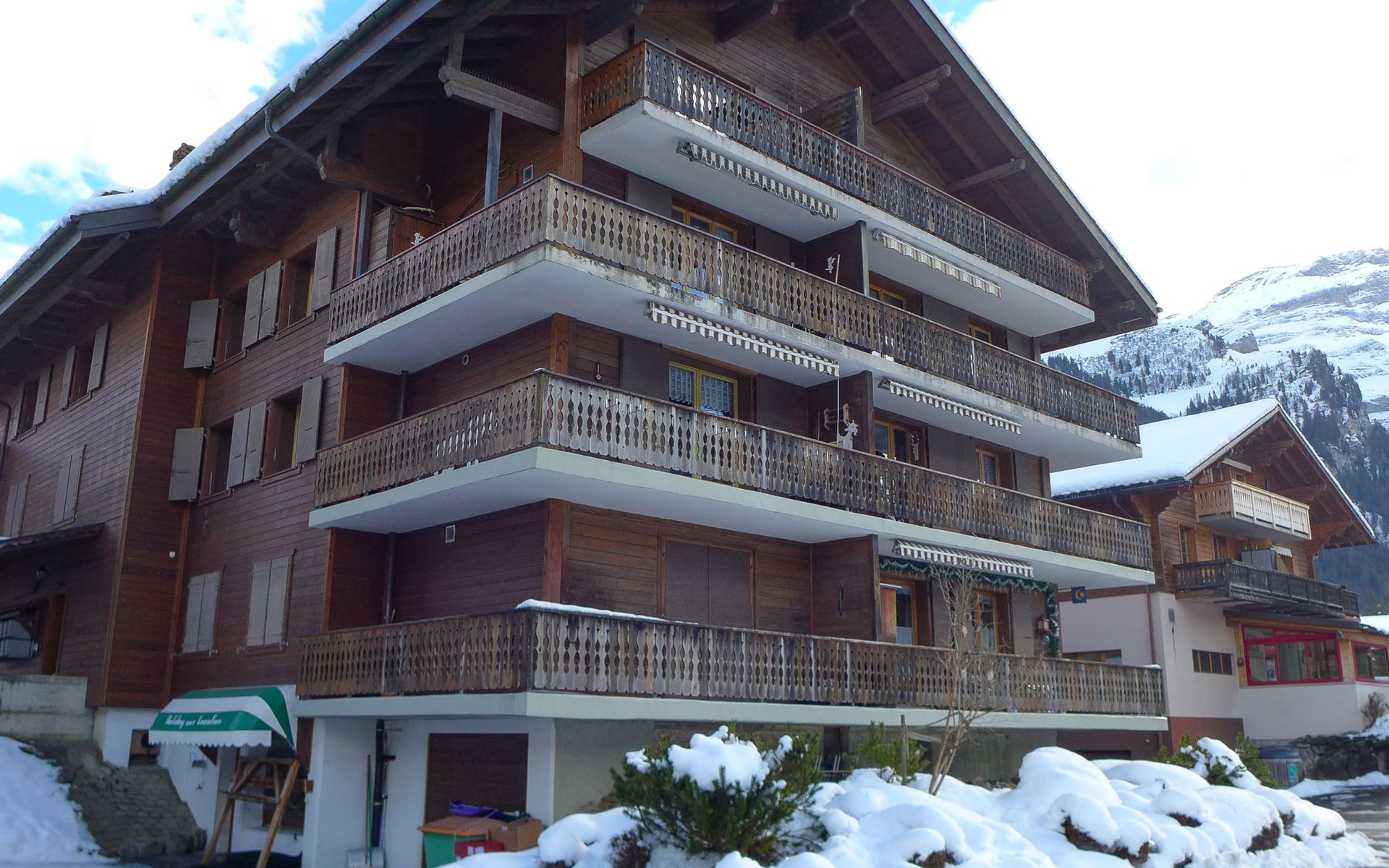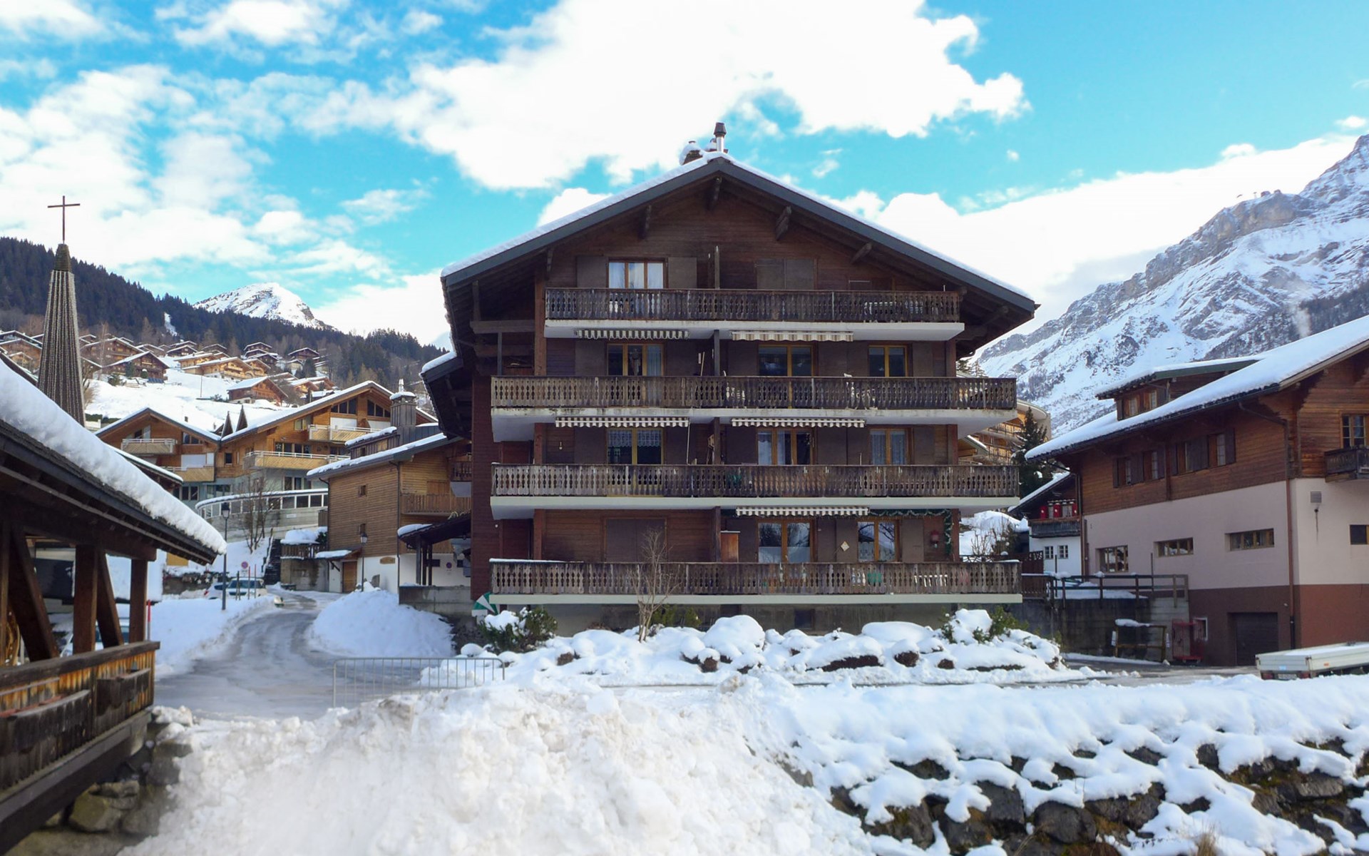 Residence "Val Neige". In the centre of Les Diablerets, in a central position, located by a road. In the house: storage room for skis. 4x4 car recommended in winter. Public parking 100 m. Supermarket 150 m, restaurant 50 m, bakery 200 m, railway station "Les Diablerets" 500 m, outdoor swimming pool 300 m. Tennis 300 m, ski lift 400 m, gondola lift, slopes, ski rental 10 m, ice rink 300 m. Nearby attractions: Aigle - Musée de la Vigne 20 km, Glacier 3000 - Peak Walk 5 km, Gstaad 22 km. Well-known ski regions can easily be reached: Les Diablerets, Villars, Leysin. Please note: Loading and unloading of baggage is possible at the holiday house.