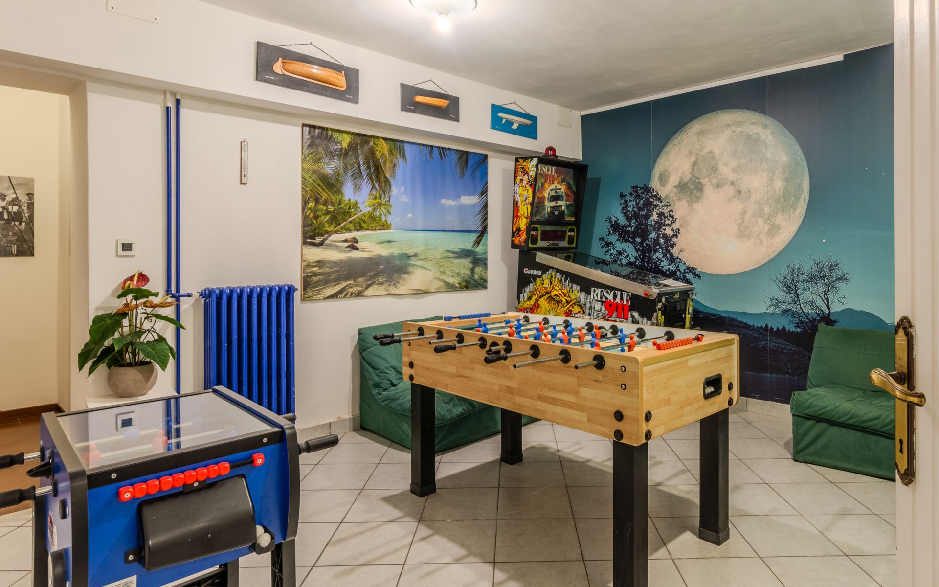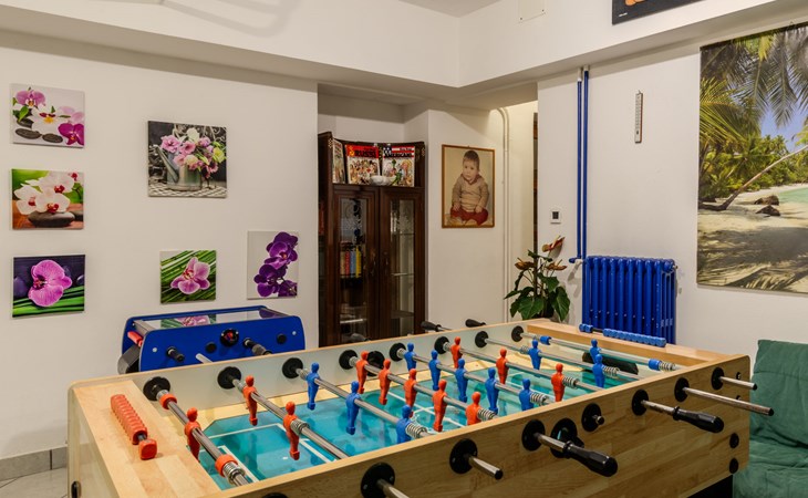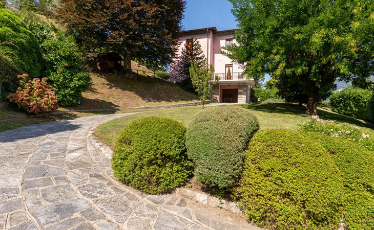 Large, beautiful villa "Vittoria". Above Bellagio 450 m from the centre of Bellagio, 23 km from the centre of Lecco, 31.5 km from the centre of Como, on a slope, residential area (villas), 300 m from the lake. Private: property 2'000 m2 (fenced), garden with lawn and wildlife garden. In the house: fitness room, playroom, table football. Stepped path (12 steps) to the house. Parking (for 5 cars) on the premises. E-charging station. Shop 500 m, supermarket 1 km, restaurant, bar 300 m, bakery 150 m, pedestrian zone 500 m, 5 minute walk to the centre, bus stop 450 m, railway station "Lecco" 22 km, pebble beach "Pescallo" 300 m, outdoor swimming pool 600 m, public bathing area 1.5 km. Marina 750 m, golf course (36 hole) 43 km, tennis 600 m, children's playground 800 m. Nearby attractions: I Giardini di Villa Melzi, Villa Carlotta-Tremezzina, Villa Balbianello-Lenno, Varenna, Como, Lecco. Well-known lakes can easily be reached: Lago di Mezzola. Hiking paths: Bellagio-Pescallo-Aureggio-San Giovanni, Monte San Primo, Belvedere del Nuvolone. Cooking courses bookable on request. Residence with electric gates.