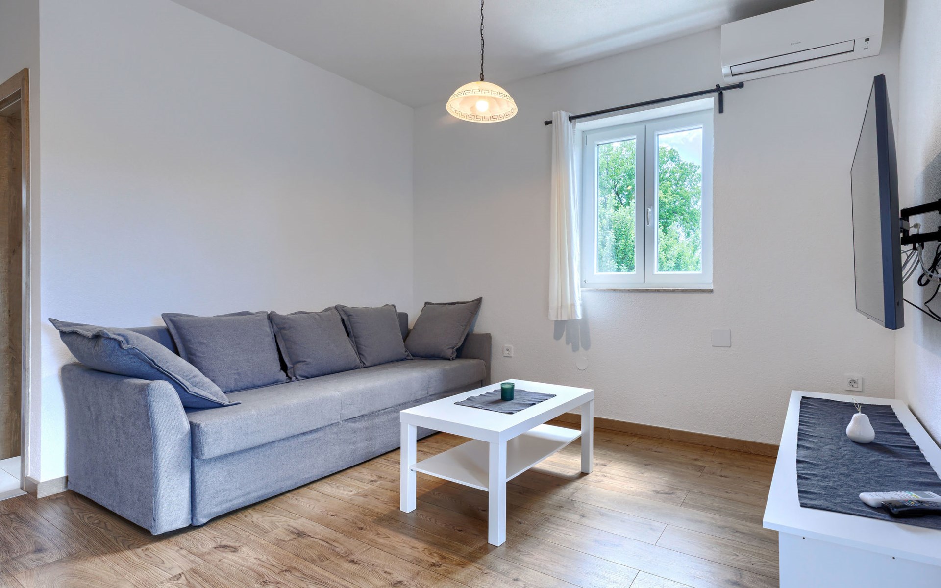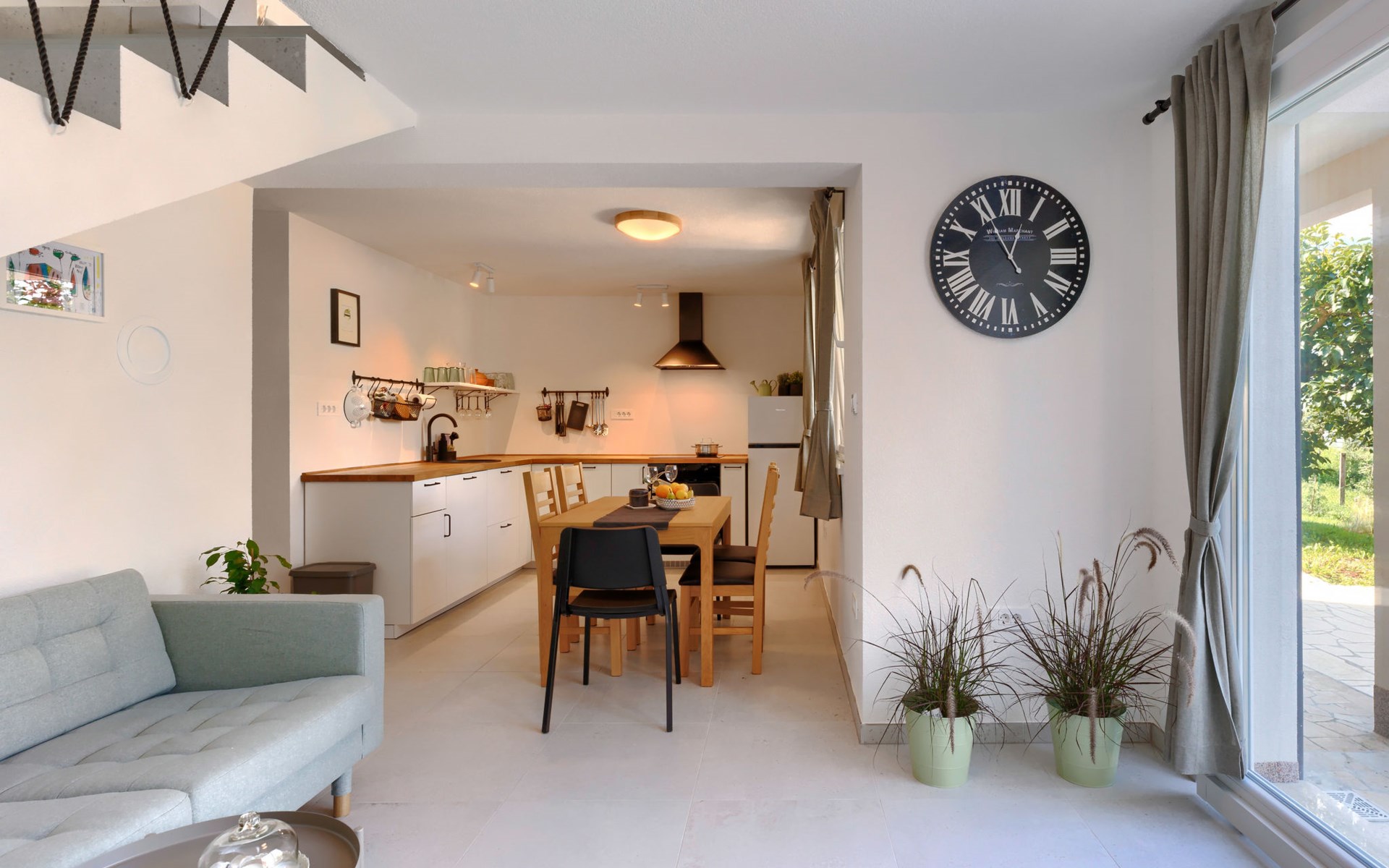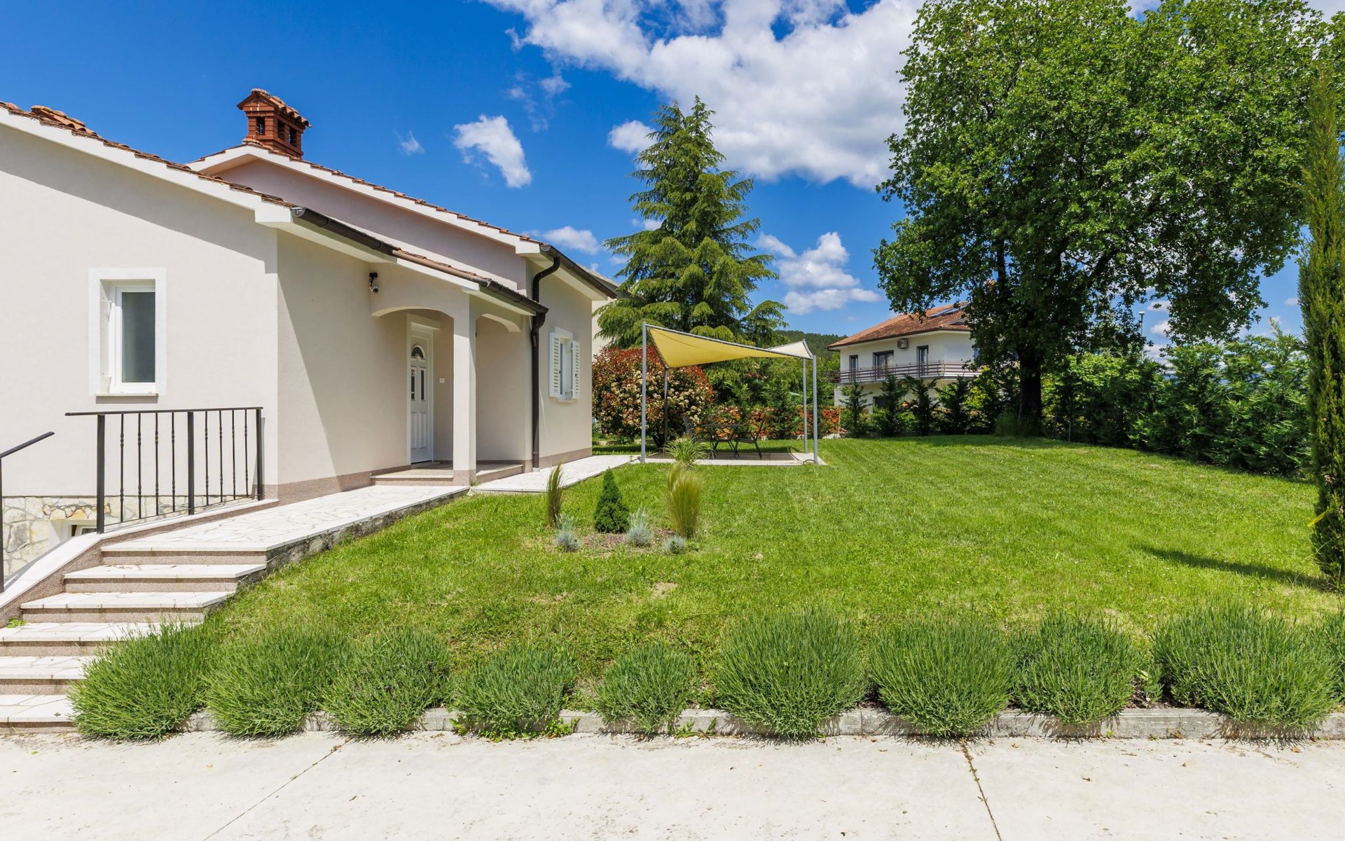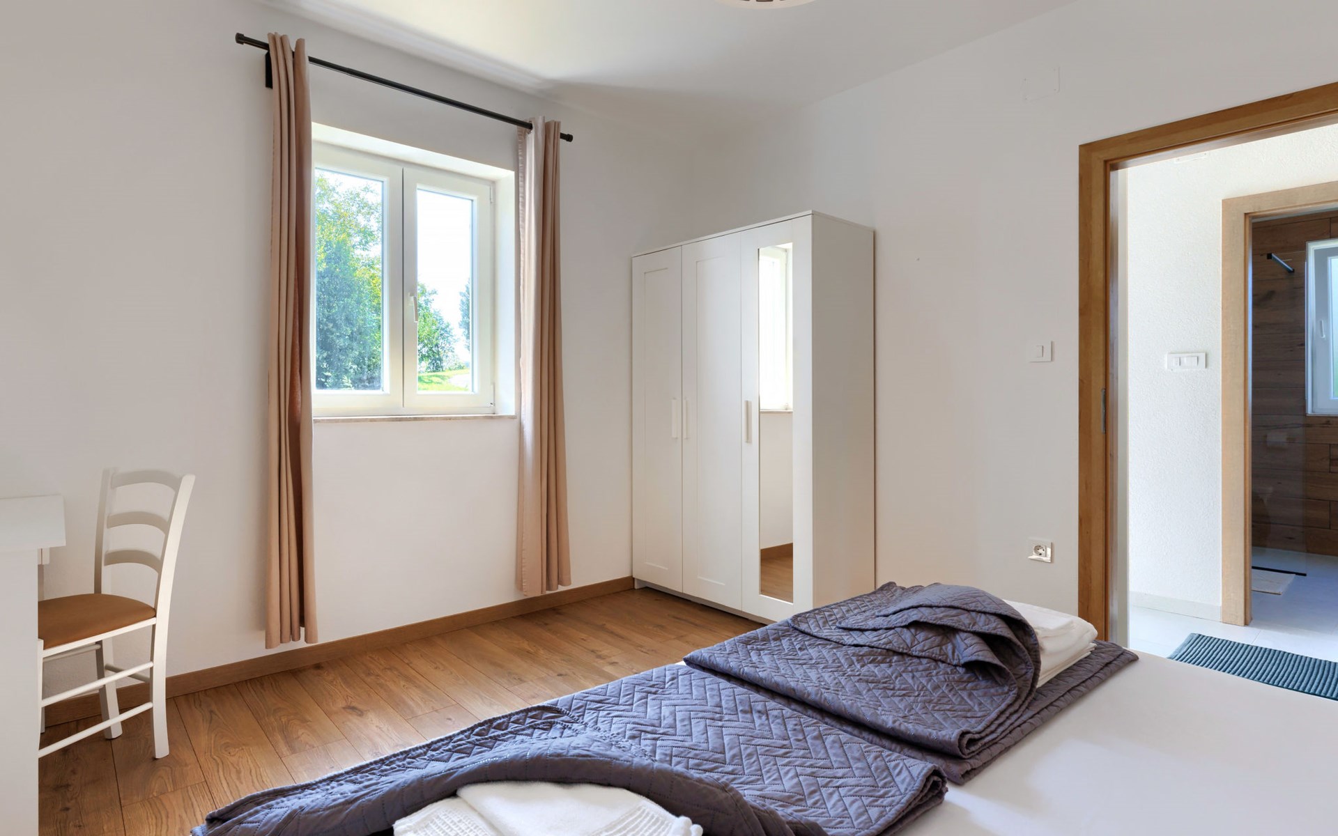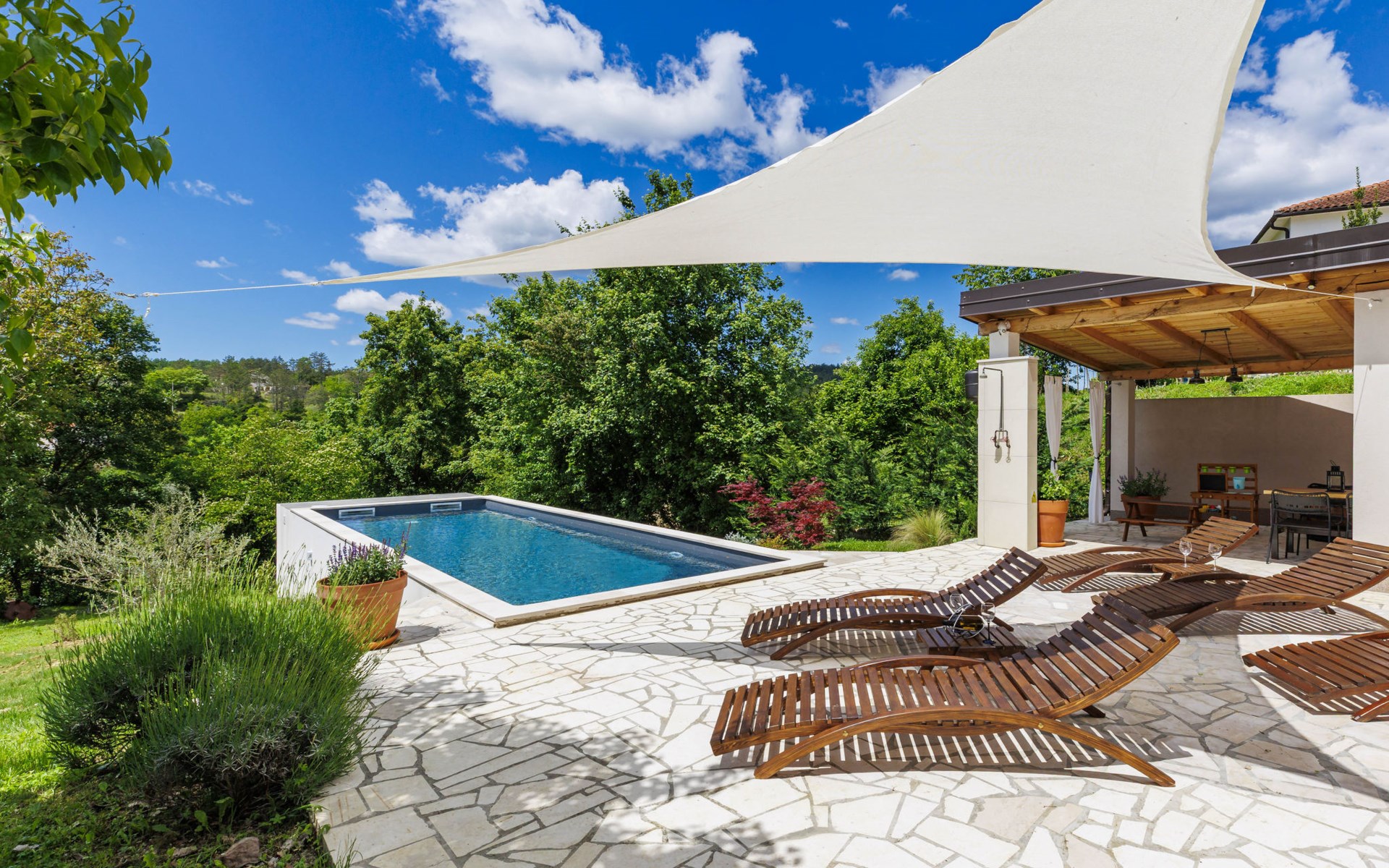 Single-family house "Klementini", 2 storeys, renovated in 2023. 8 km from the centre of Pazin, 22 km from the centre of Roč, in a sunny position, 40 km from the sea. Private: property 1'300 m2, lawn, swimming pool (9 x 3 m, depth 140 cm, seasonal availability: 01.May. - 01.Oct.) with internal staircase and salt-electrolysis pool-cleaning system. Outdoor shower, terrace (40 m2), garden furniture, barbecue, pool maintenance by the owner/gardener. In the house: internet access, washing machine. Parking (for 2 cars) at the house on the premises. Shop 100 m, supermarket 8 km, restaurant 100 m, bus stop 220 m, pebble beach 40 km, public bathing area 40 km. Walking paths from the house 50 m, cycle lane 100 m. Nearby attractions: Nature park Učka 27 km. The owner does not accept any youth groups.