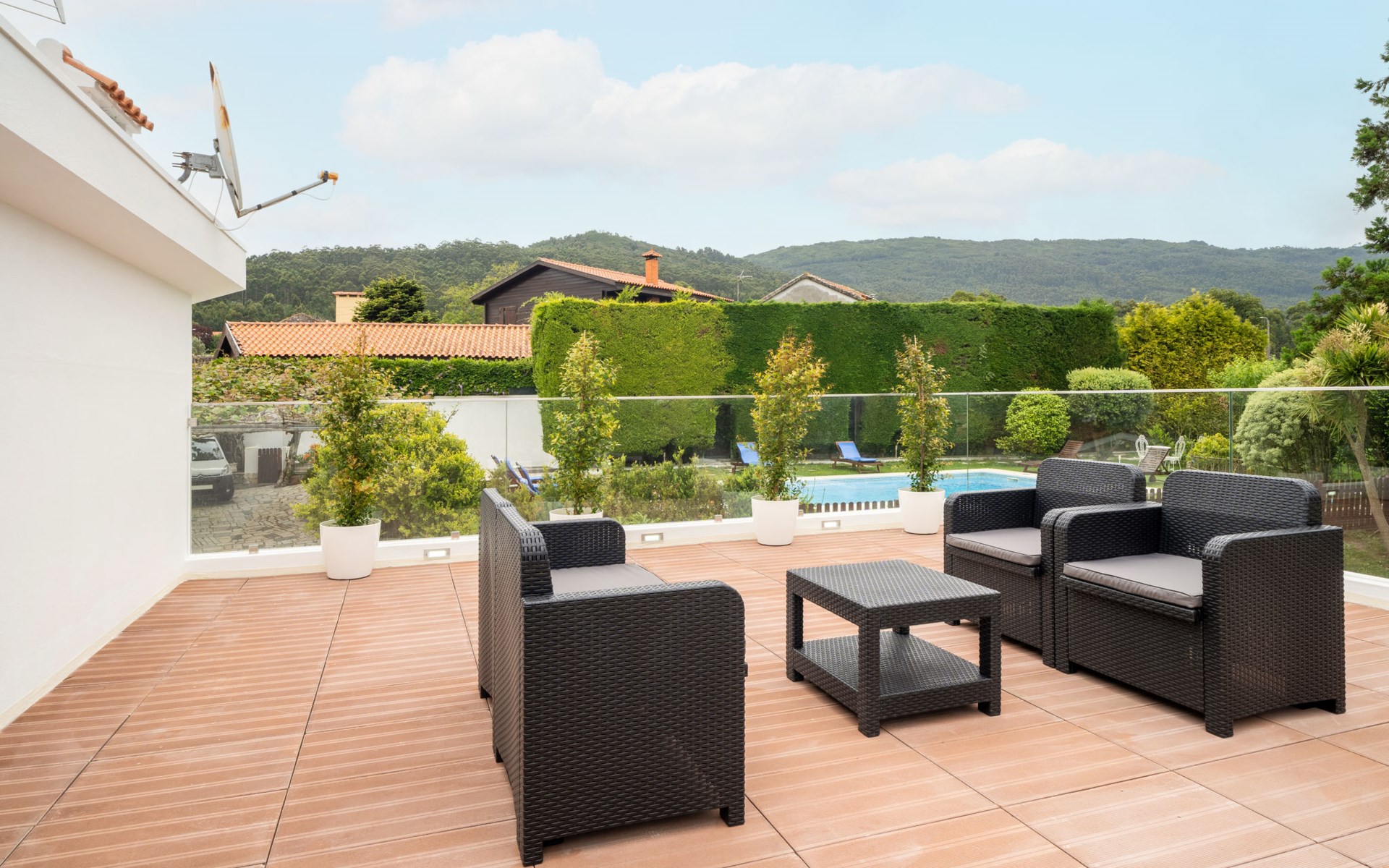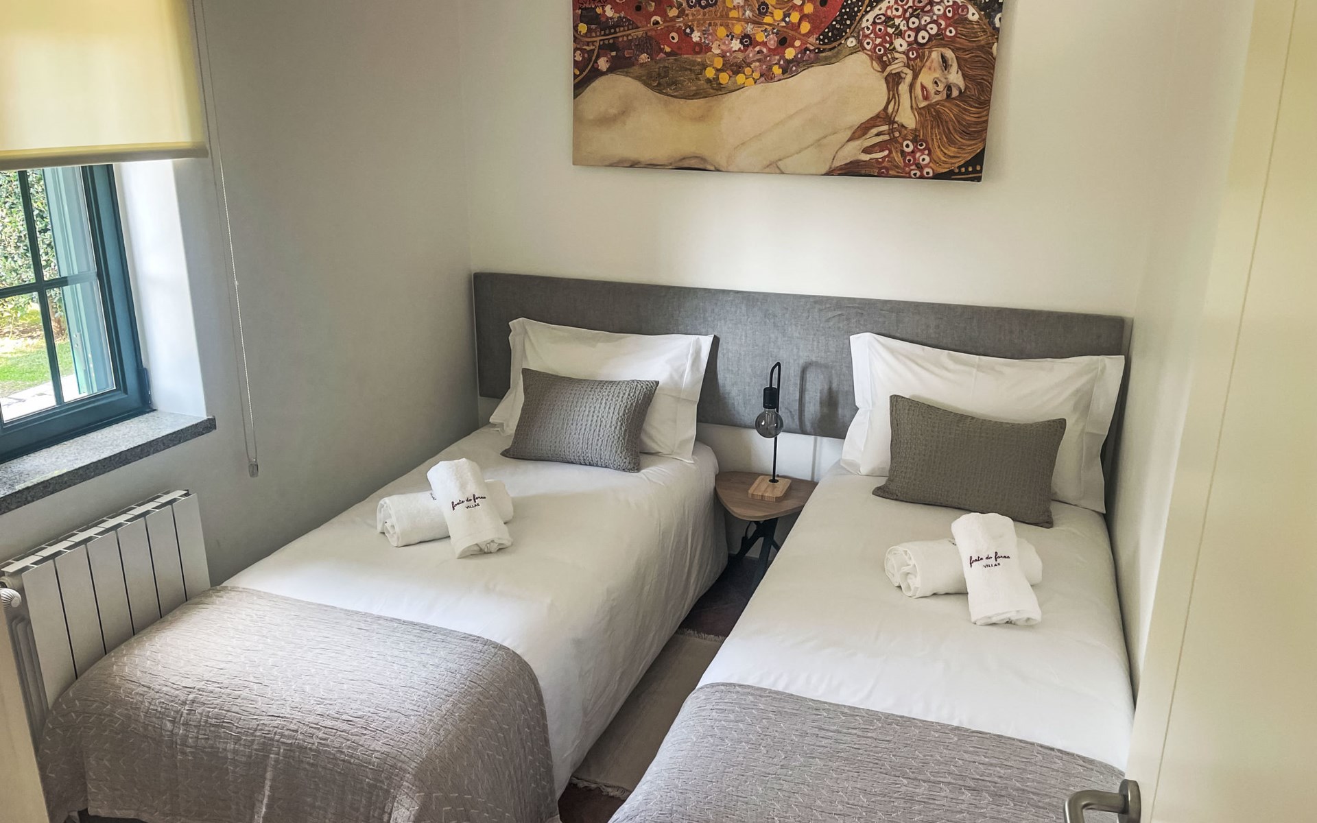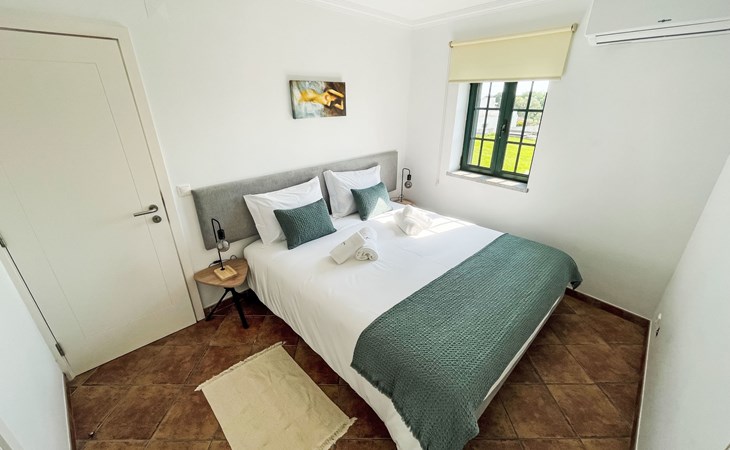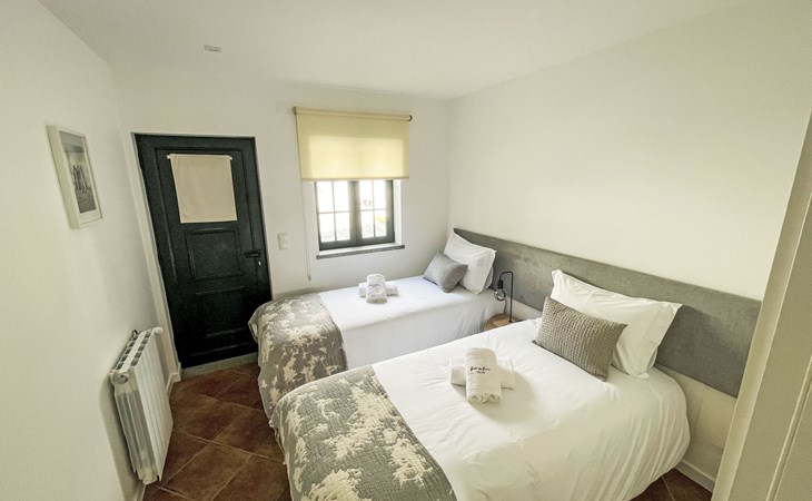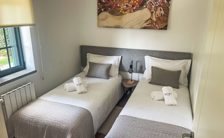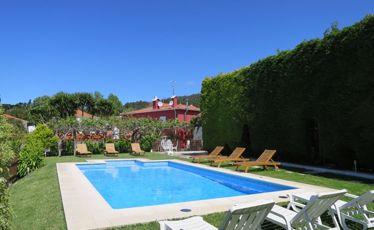 Cosy single-family house "Fonte do Forno", surrounded by meadows and fields. 500 m from the centre of Afife, 12 km from the centre of Viana do Castelo, 1.5 km from the sea. For shared use: property 3'500 m2, well-kept garden with lawn and trees, swimming pool (9 x 5 m, depth 110 - 180 cm, seasonal availability: 01.Jan. - 31.Dec.). WC in the pool area, outdoor shower, hot tub. Private: property 600 m2 with lawn, orchard. In the house: central heating system, washing machine (for shared use), bicycles available. Available: bicycles (4), children's bicycles (1). Public parking on the road. Shop 500 m, restaurant 1 km, café 300 m, bus stop 12.5 km, sandy beach 1.5 km. Groups of teenagers on request only. Please note: the owner lives on the same property. All bedrooms have central heating with pellets except for one bedroom with air conditioning for cooling and heating. The living room also has air conditioning for cooling and heating.