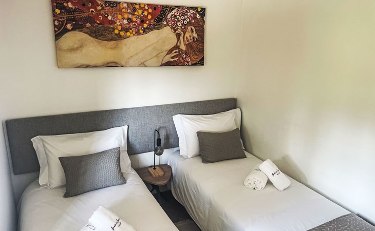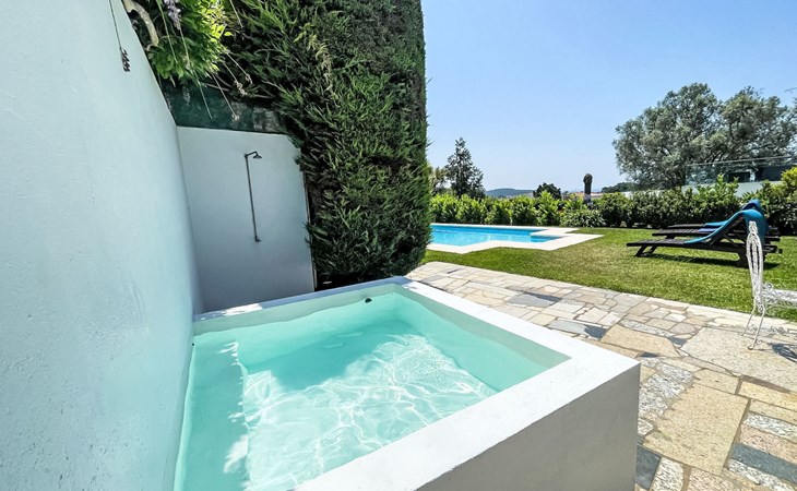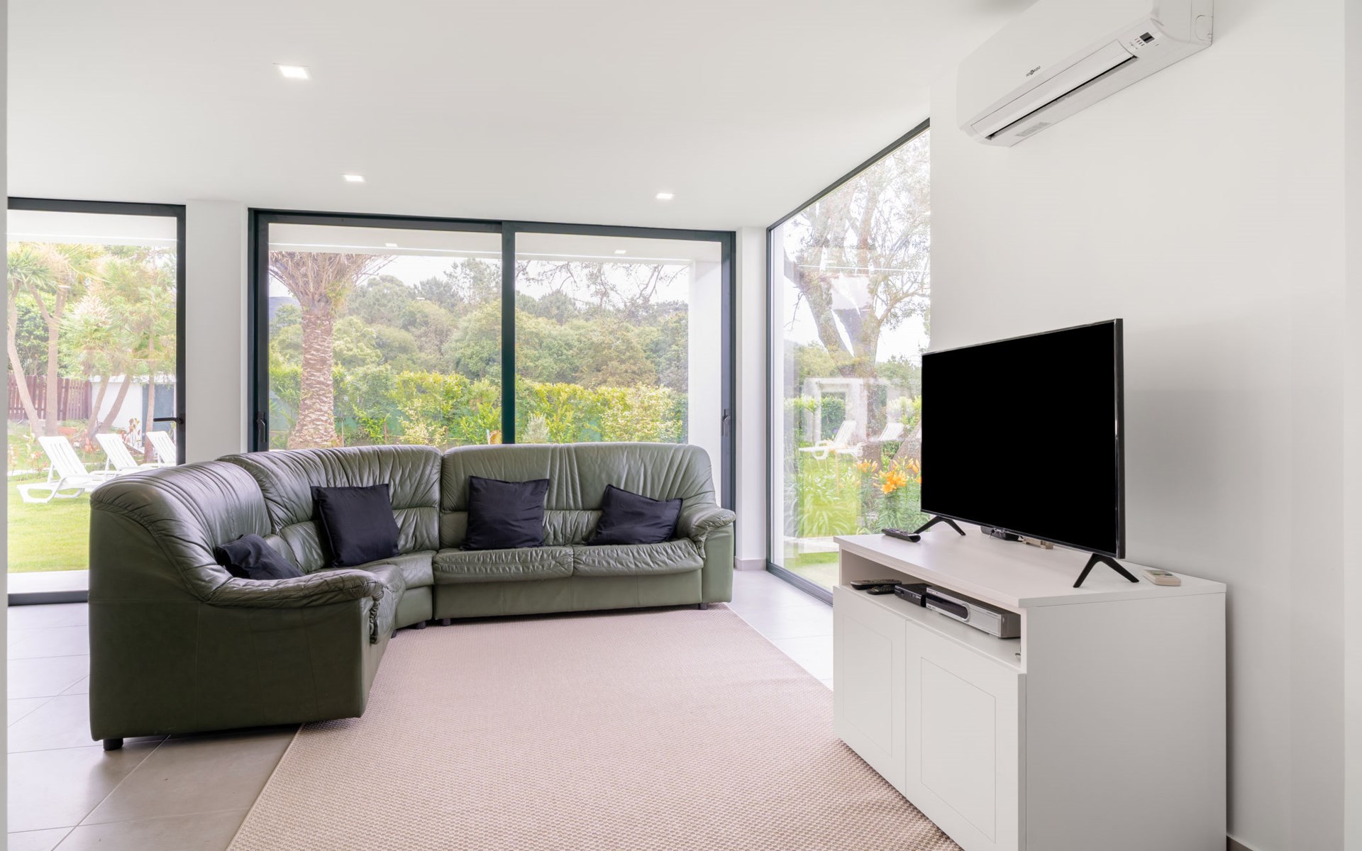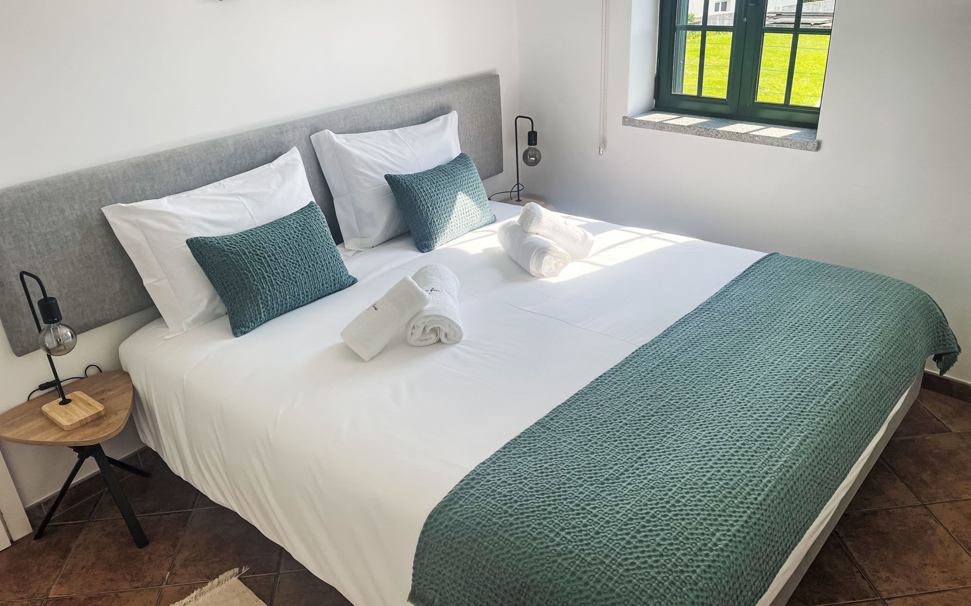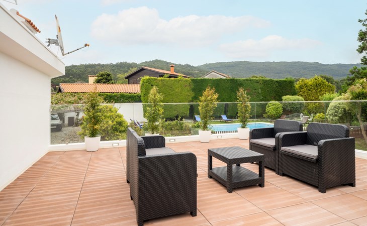 Cosy single-family house "Fonte do Forno", surrounded by meadows and fields. 500 m from the centre of Afife, 12 km from the centre of Viana do Castelo, 1.5 km from the sea. For shared use: property 3'500 m2, well-kept garden with lawn and trees, swimming pool (9 x 5 m, depth 110 - 180 cm, seasonal availability: 01.Jan. - 31.Dec.). WC in the pool area, outdoor shower, hot tub. Private: property 600 m2 with lawn, orchard. In the house: central heating system, washing machine (for shared use), bicycles available. Available: bicycles (4), children's bicycles (1). Public parking on the road. Shop 500 m, restaurant 1 km, café 300 m, bus stop 12.5 km, sandy beach 1.5 km. Groups of teenagers on request only. Please note: the owner lives on the same property. All bedrooms have central heating with pellets except for one bedroom with air conditioning for cooling and heating. The living room also has air conditioning for cooling and heating.