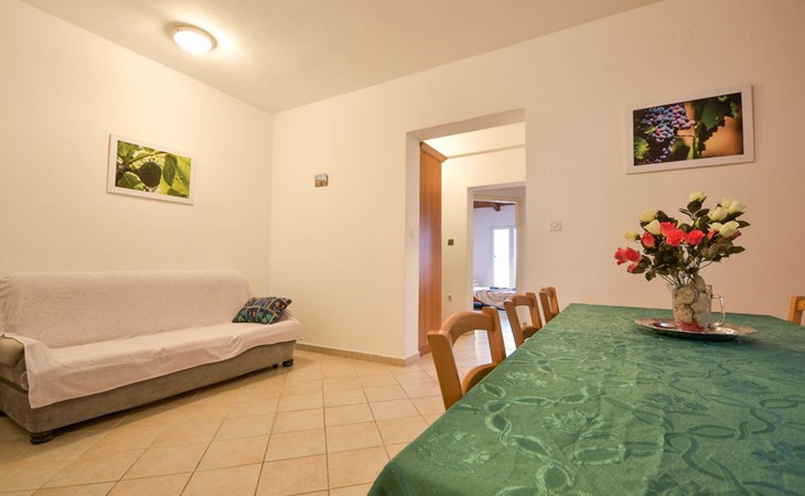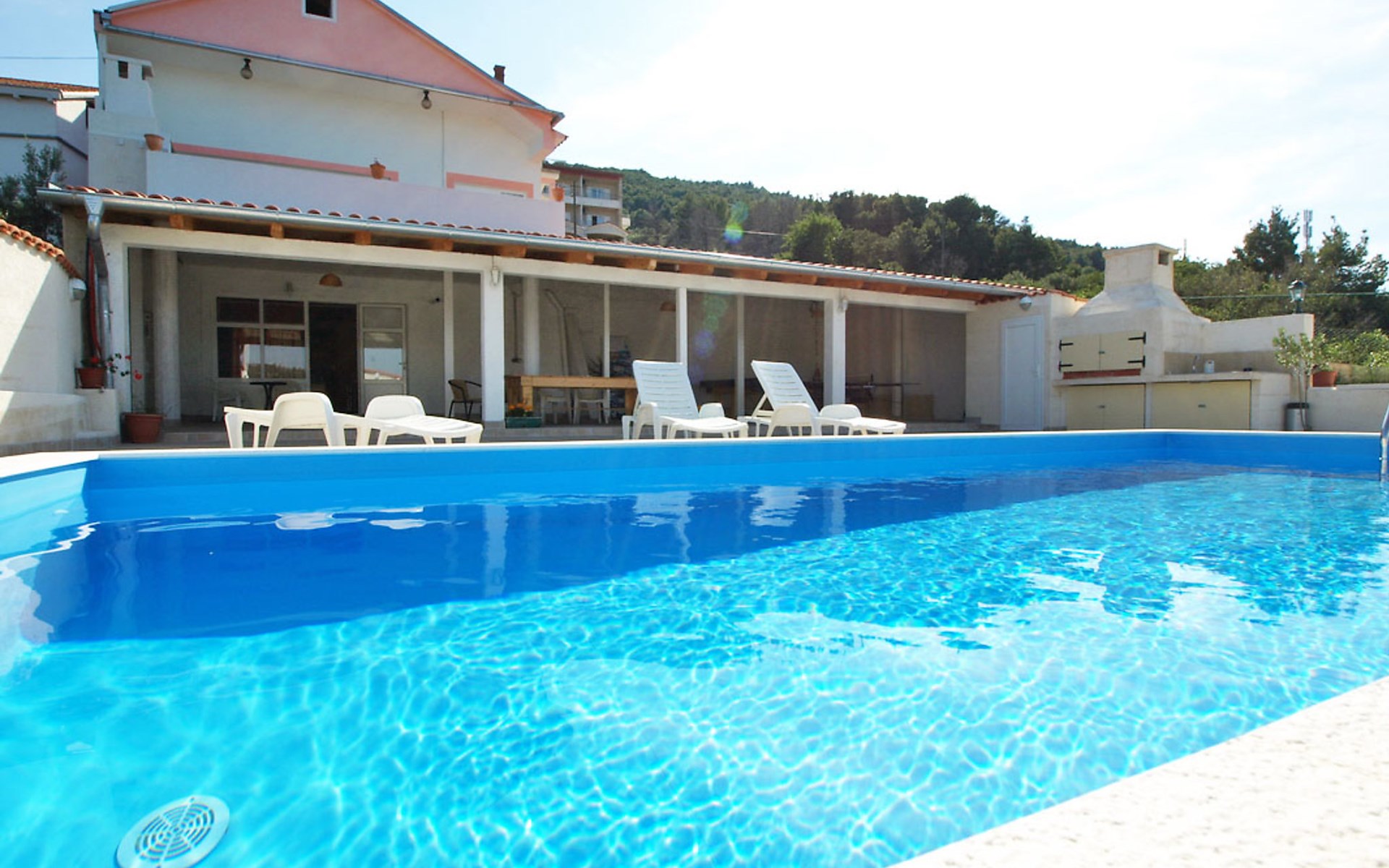Apartment house "Zdenko". 1 km from the centre of Kali, in a sunny position on a slope, 110 m from the sea, 110 m from the beach. For shared use: property 1'850 m2, swimming pool angular (9 x 3 m, 29 m2, depth 135 cm, seasonal availability: 01.May. - 21.Sep.) with internal staircase. Outdoor shower, terrace, barbecue. In the house: internet access. Parking at the house on the premises. Shop, restaurant 850 m, bus stop 9.9 km, rocky beach, concrete beach 110 m. Please note: Additional accommodations can be booked. Property ref. HR4210.131,132 is situated on the same property. The house is situated below the Kali-Preko road.