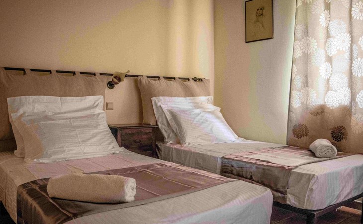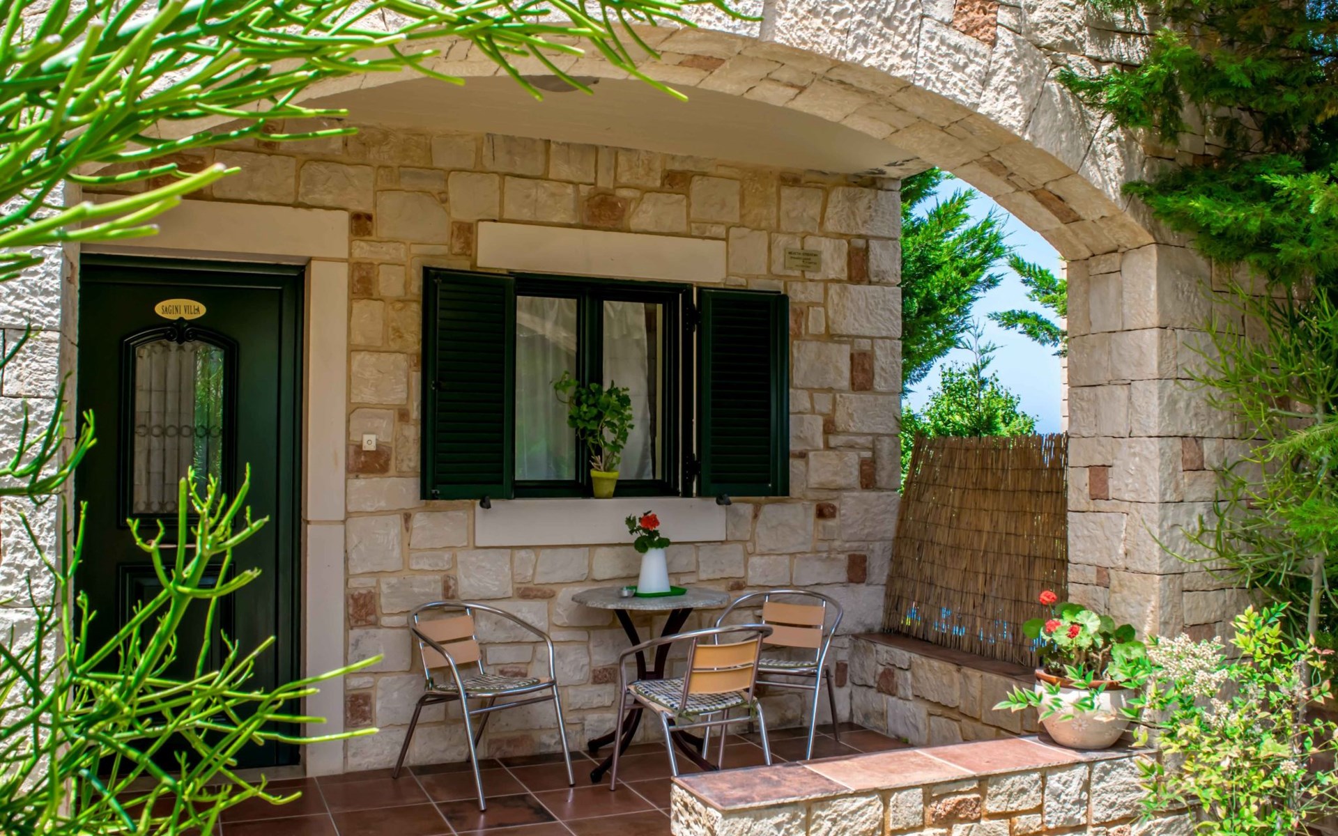Villa Sagini can accommodate up to 6 pax. It consists of 2 bedrooms with a double bed, 1 bedroom with two twin beds, and a bathroom at the first floor. At the ground floor lies the kitchen with open plan living room, WC and the fireplace.