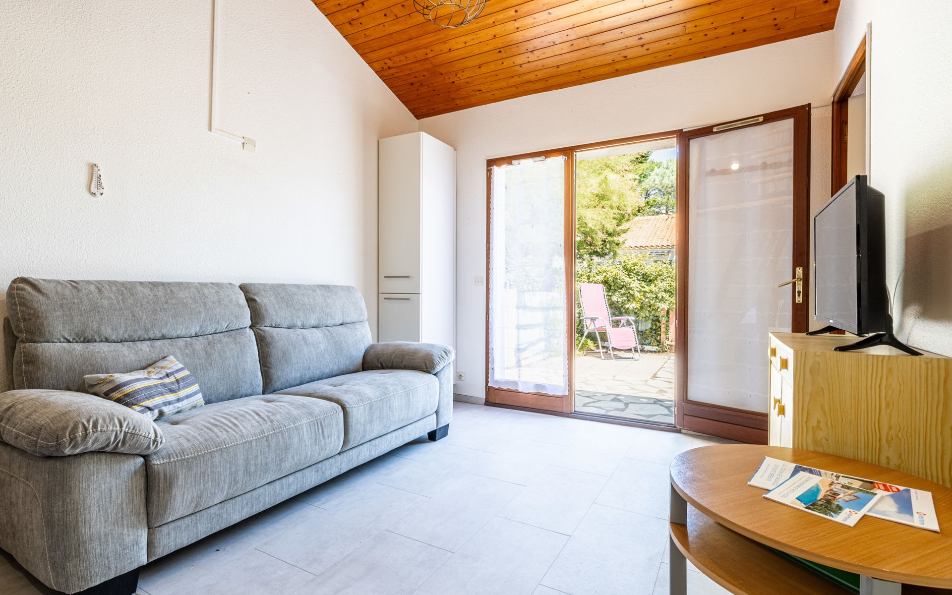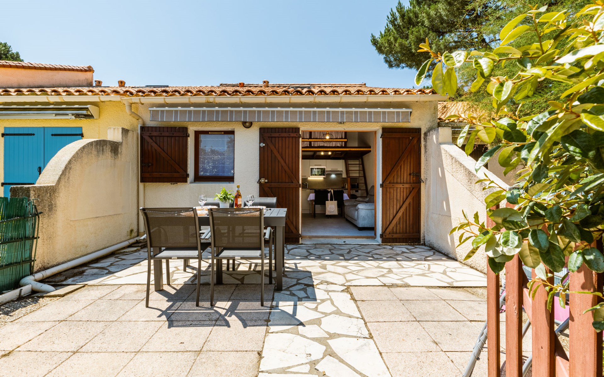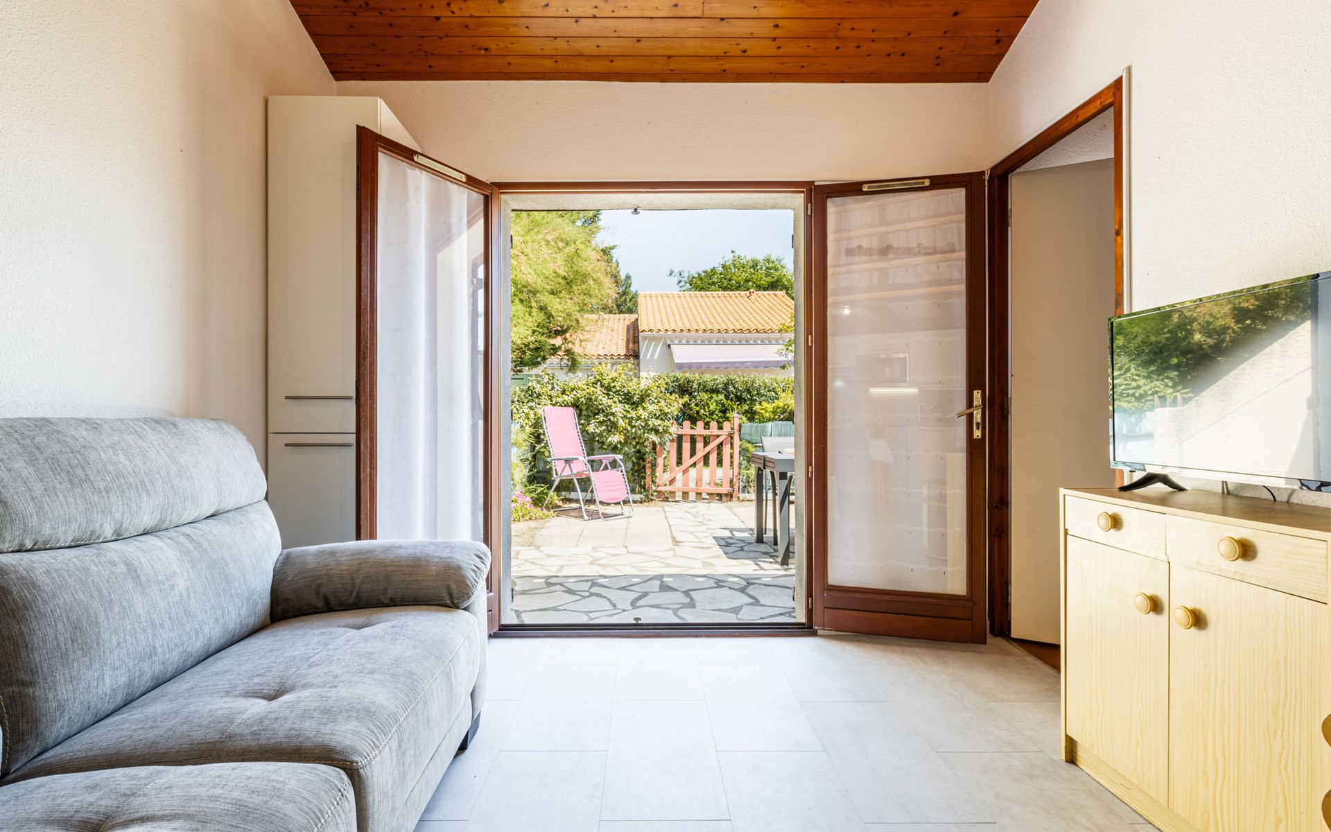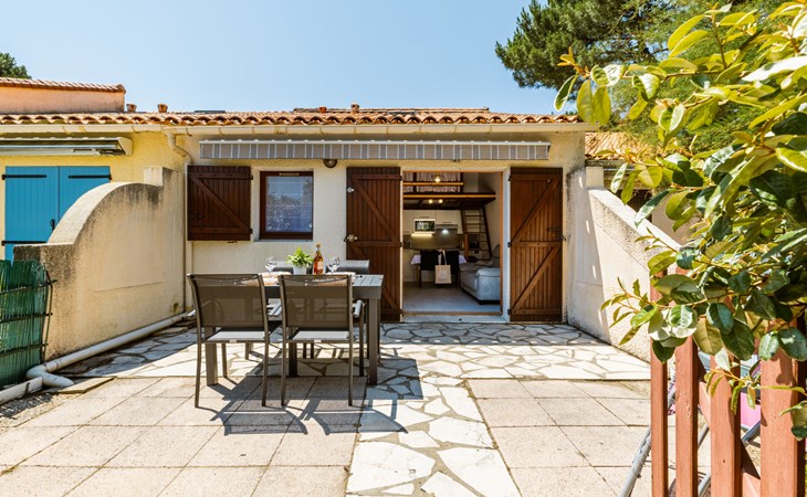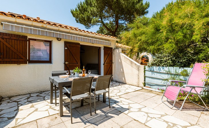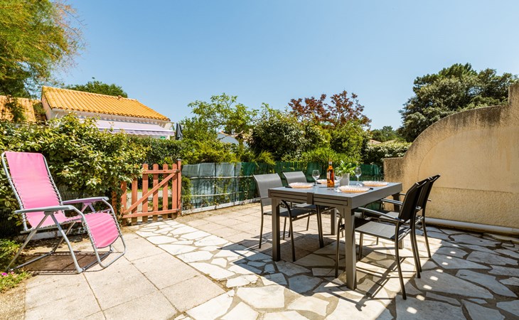 La Palmyre 15 km from Royan: Large residence "Les Maisons de l'Océan". 230 houses in the residence. In the resort 500 m from the centre of La Palmyre, in a central position in the residential district, 1 km from the sea, 1 km from the beach. For shared use: pond, parking at the house. Grocery, supermarket 500 m, restaurant 500 m, bakery, bicycle rental 500 m, railway station "Royan" 19 km, sandy beach "La Palmyre" 1 km, indoor swimming pool 19 km, thermal baths "Thalassothérapie Thalazur Royan" 16 km. Sports harbour 1.2 km, golf course (9 hole) 2 km, surf school 500 m, tennis 1.5 km, minigolf 1.2 km, riding stable 1.5 km. Nearby attractions: Zoo de La Palmyre 1.5 km, Hippodrome - La Palmyre 1 km, Luna Park (Juillet-Août) 5 km, Embarcadère Royan - Le Verdon 15 km, Centre aquatique Iléo - Ile d'Oléron 35 km, Fort Boyard - Ile d'Aix 60 km. The keys‘ handover takes place by the agency Interhome in La Palmyre, 1 km.