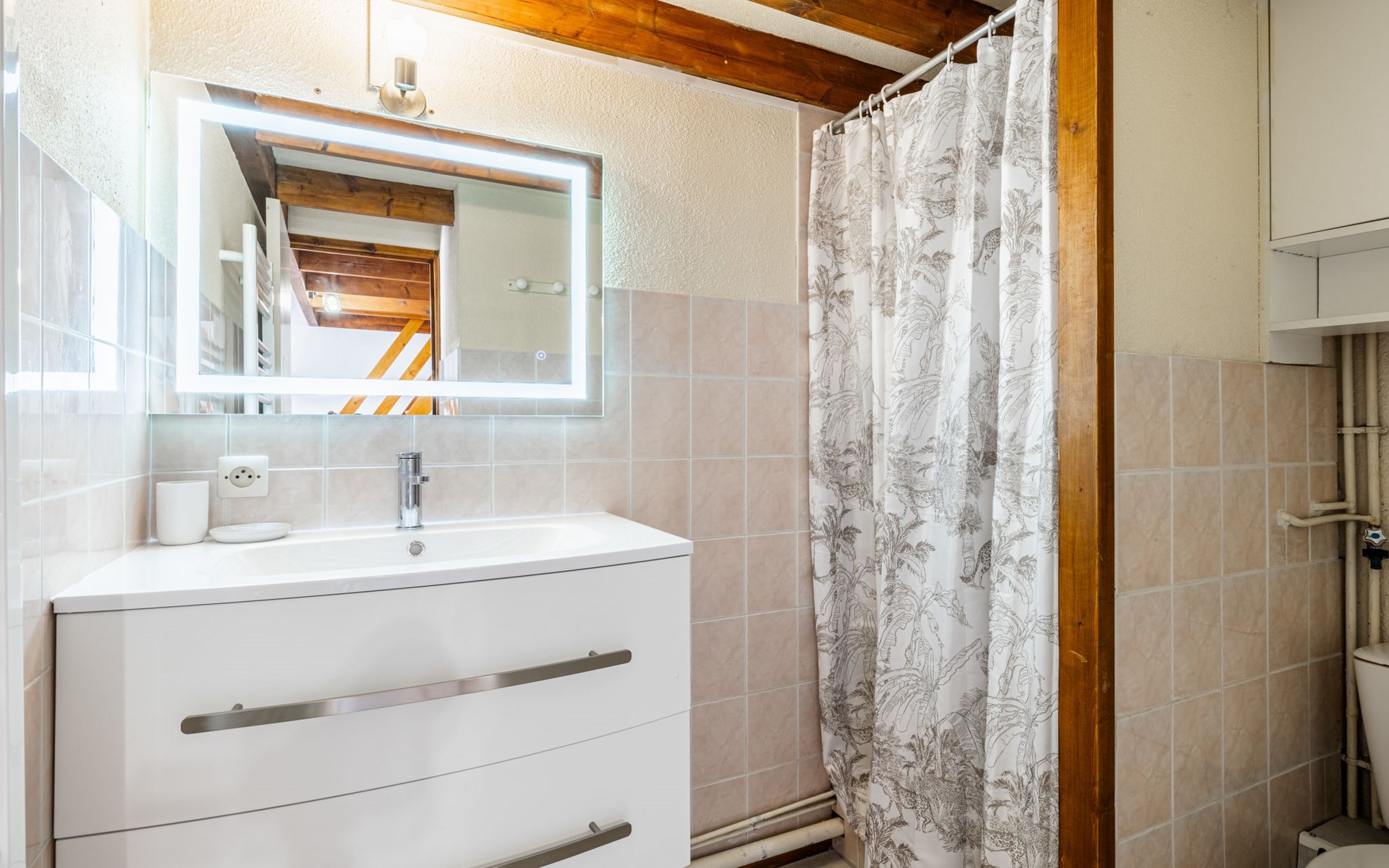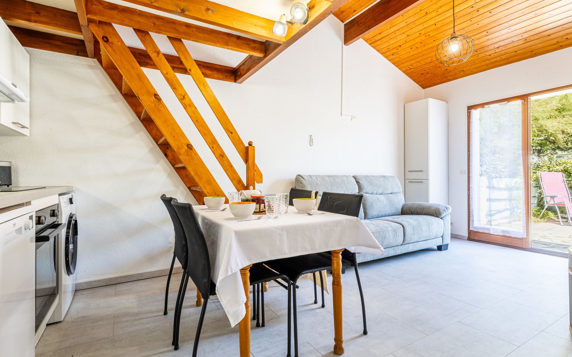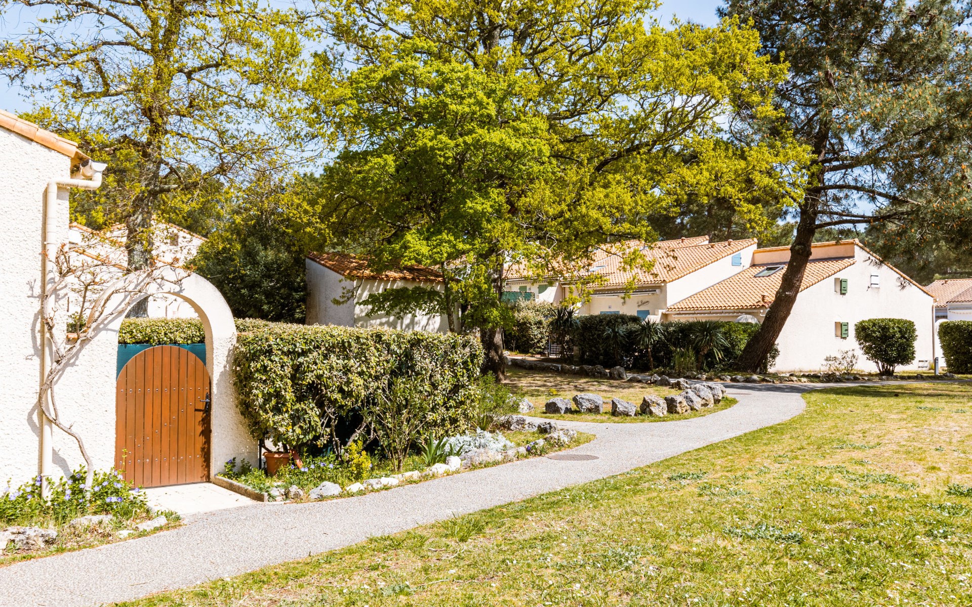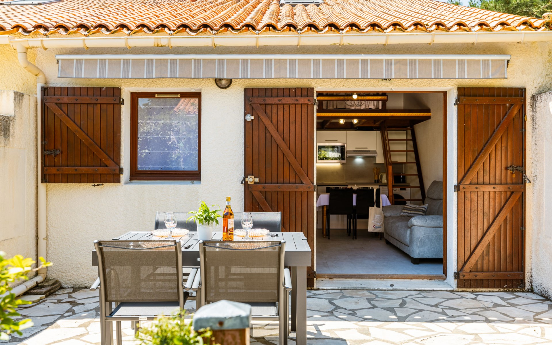 La Palmyre 15 km from Royan: Large residence "Les Maisons de l'Océan". 230 houses in the residence. In the resort 500 m from the centre of La Palmyre, in a central position in the residential district, 1 km from the sea, 1 km from the beach. For shared use: pond, parking at the house. Grocery, supermarket 500 m, restaurant 500 m, bakery, bicycle rental 500 m, railway station "Royan" 19 km, sandy beach "La Palmyre" 1 km, indoor swimming pool 19 km, thermal baths "Thalassothérapie Thalazur Royan" 16 km. Sports harbour 1.2 km, golf course (9 hole) 2 km, surf school 500 m, tennis 1.5 km, minigolf 1.2 km, riding stable 1.5 km. Nearby attractions: Zoo de La Palmyre 1.5 km, Hippodrome - La Palmyre 1 km, Luna Park (Juillet-Août) 5 km, Embarcadère Royan - Le Verdon 15 km, Centre aquatique Iléo - Ile d'Oléron 35 km, Fort Boyard - Ile d'Aix 60 km. The keys‘ handover takes place by the agency Interhome in La Palmyre, 1 km.