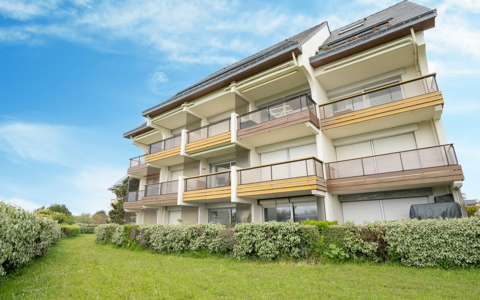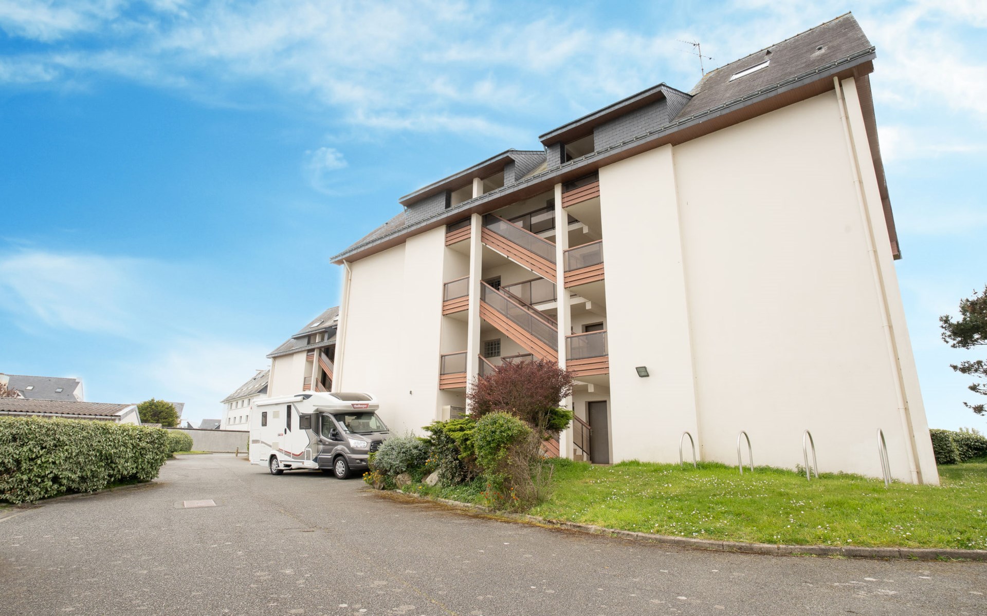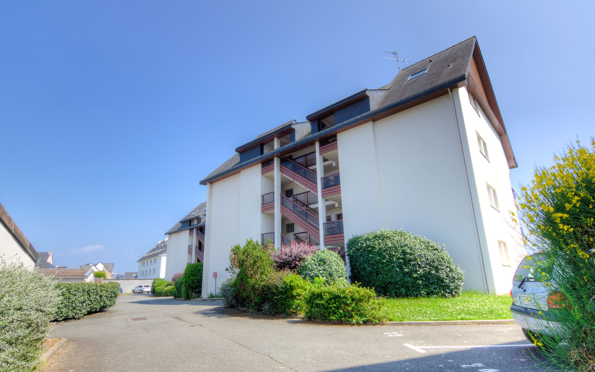 Residence "Plein Sud", 3 storeys. In the resort 2 km from the centre of Quiberon, 300 m from the sea, from the beach. Supermarket 1 km, sandy beach 300 m (small), thermal baths "Thalassothérapie de Quiberon" 1.8 km. Marina 450 m, golf course (9 hole) 800 m. Nearby attractions: Quiberon et la côte sauvage, Saint Pierre Quiberon 6 km, Carnac et les alignements 19 km, Auray et le Port de St Goustan 30 km, Vannes 45 km, Lorient 65 km. The keys‘ handover takes place by the agency Interhome in Quiberon, 2 km.