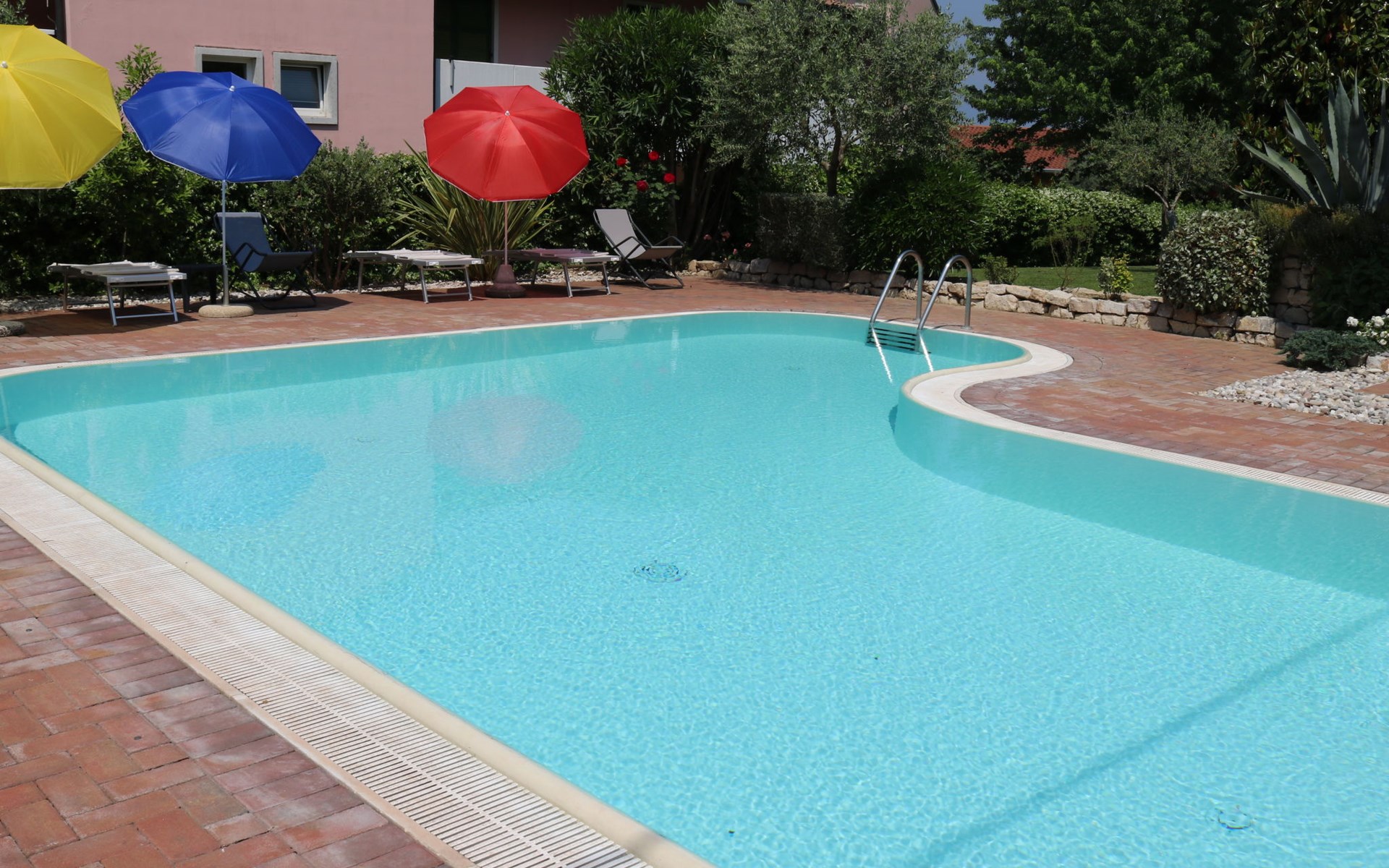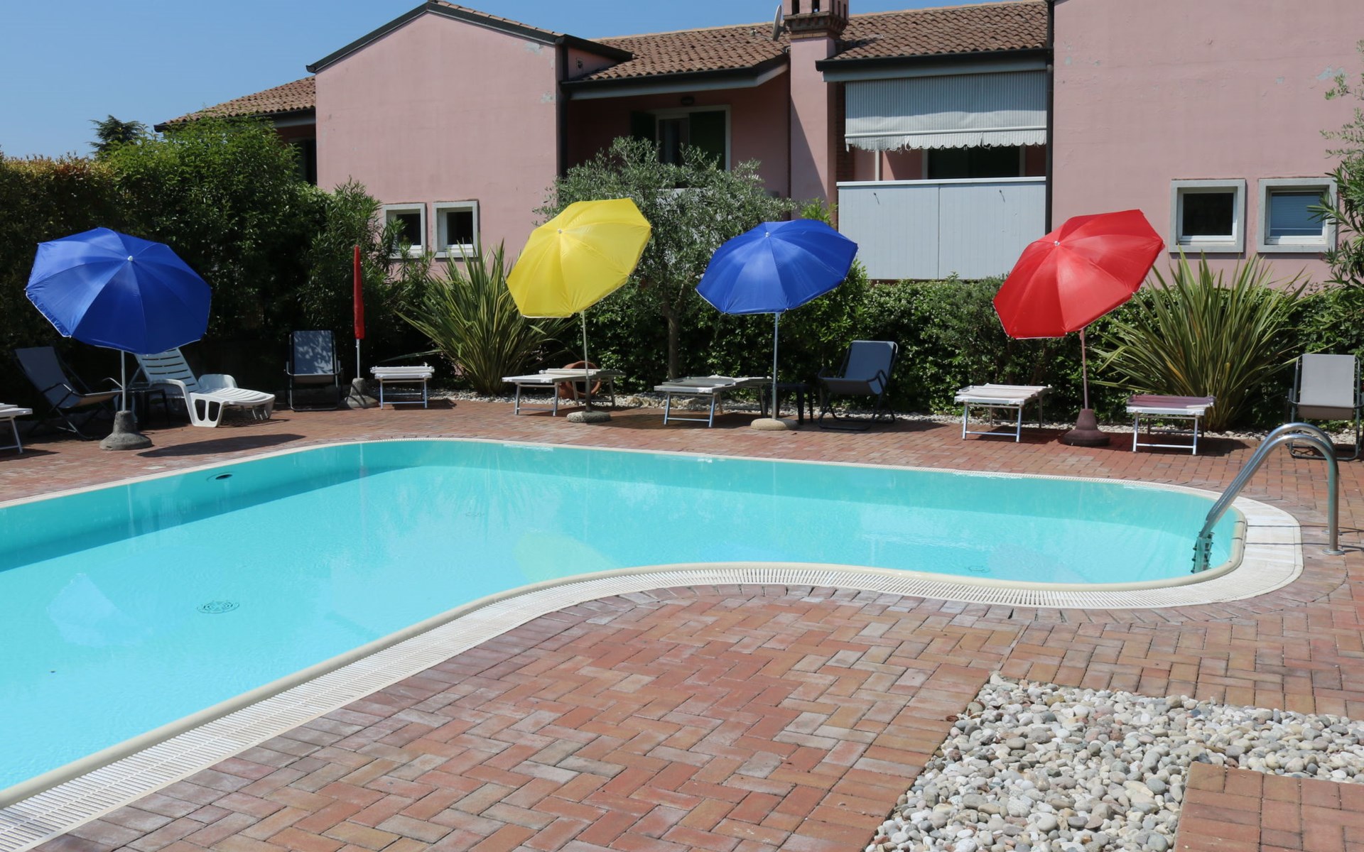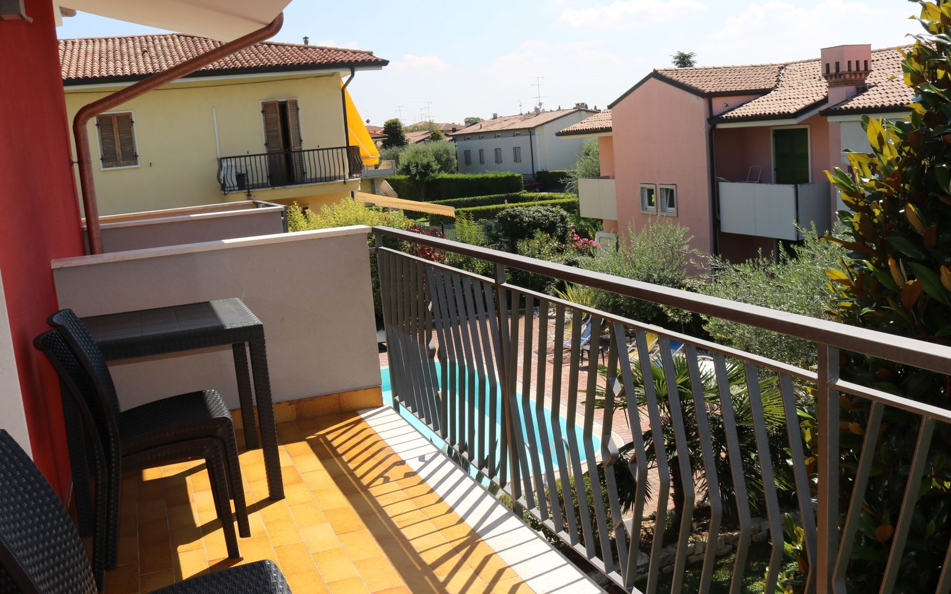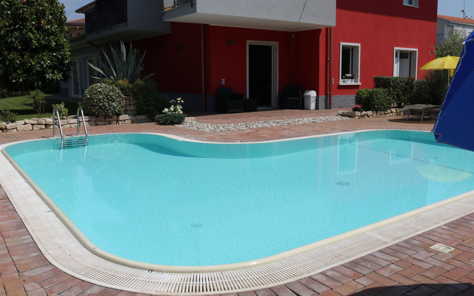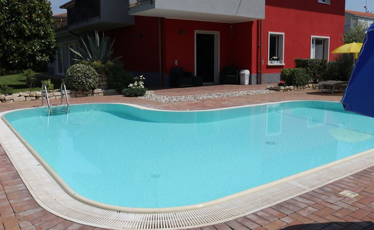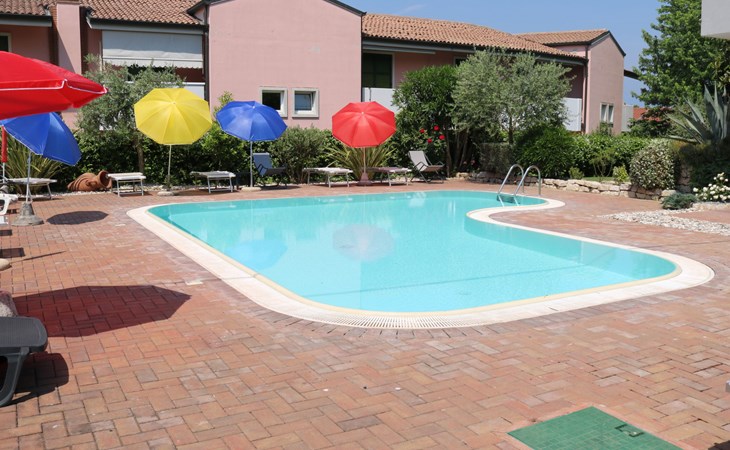 Apartment house "Corte Chiara", 2 storeys. 4 apartments in the property. In the district of Paiari 1 km from the centre of Lazise, in the residential district, 1 km from the lake, 1 km from the beach. For shared use: swimming pool (40 m2, depth 150 cm, seasonal availability: 01.Jun. - 30.Sep.). Unconventional pool shape. Outdoor shower, garden furniture. Shop 1 km, bus stop 150 m, pebble beach 1 km. Golf course (18 hole) 20 km. Nearby attractions: Peschiera del Garda 11 km, Verona 26 km.