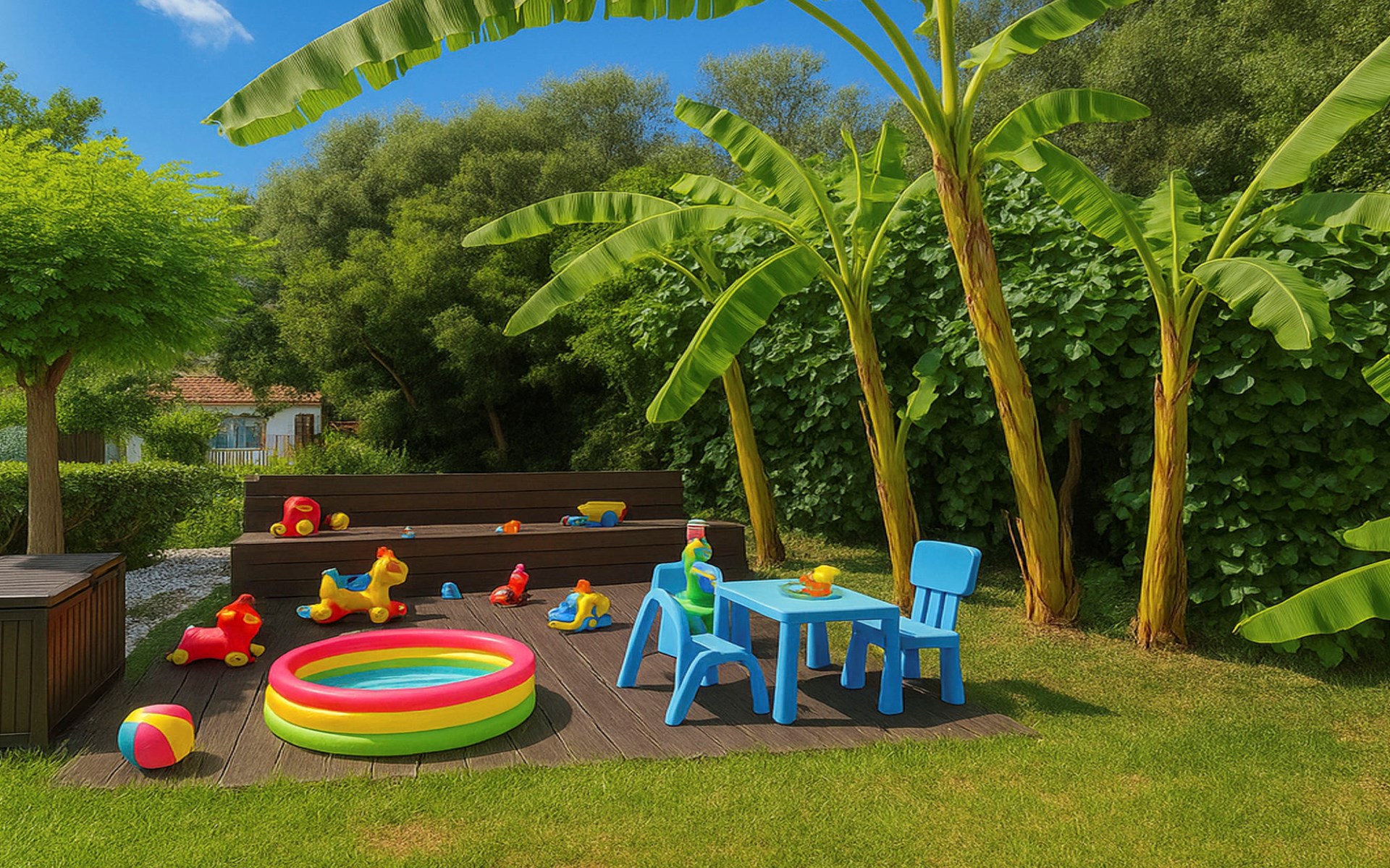 Children can safely enjoy the inflatable kids' pool and have fun at the private playground tucked away in the back of the garden.