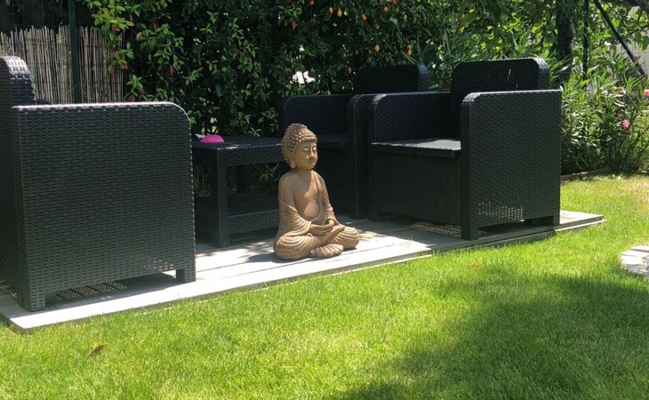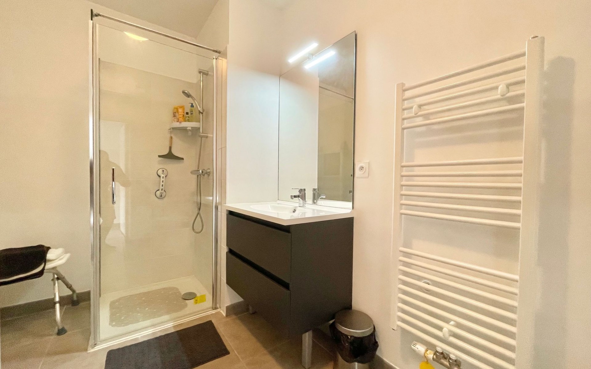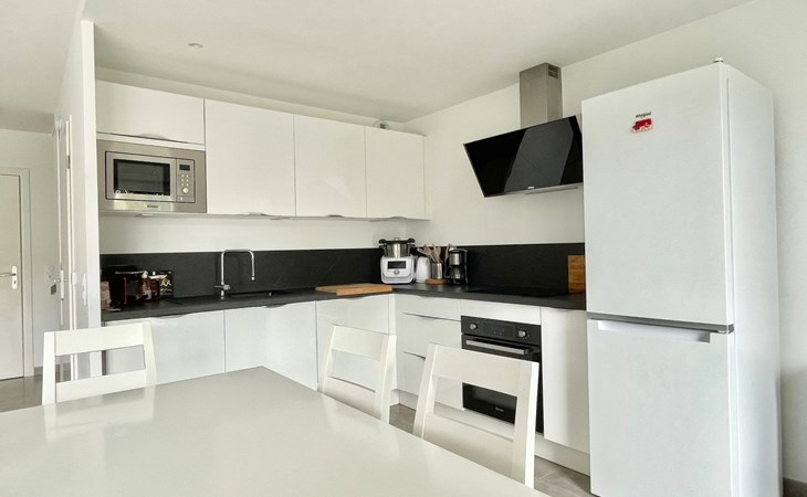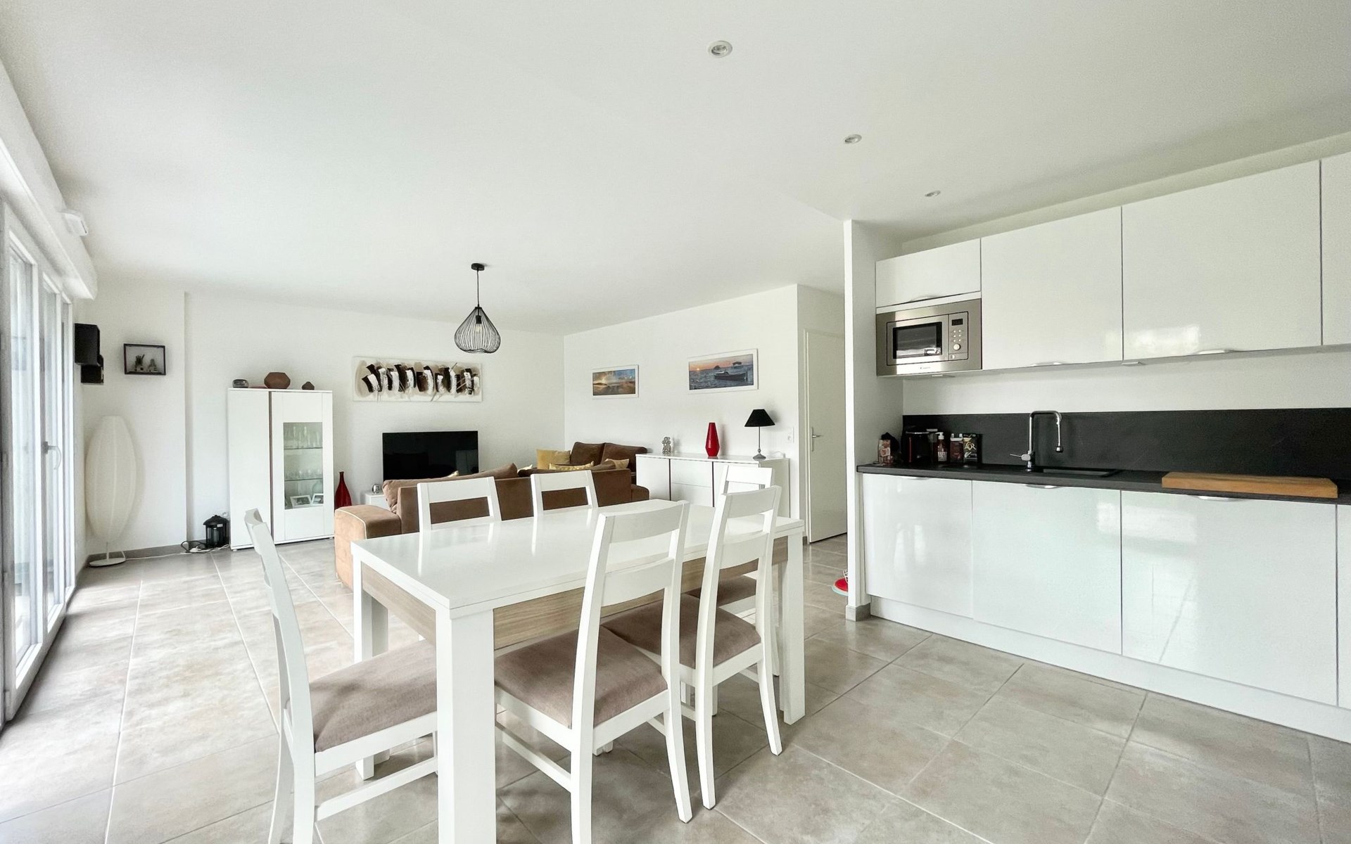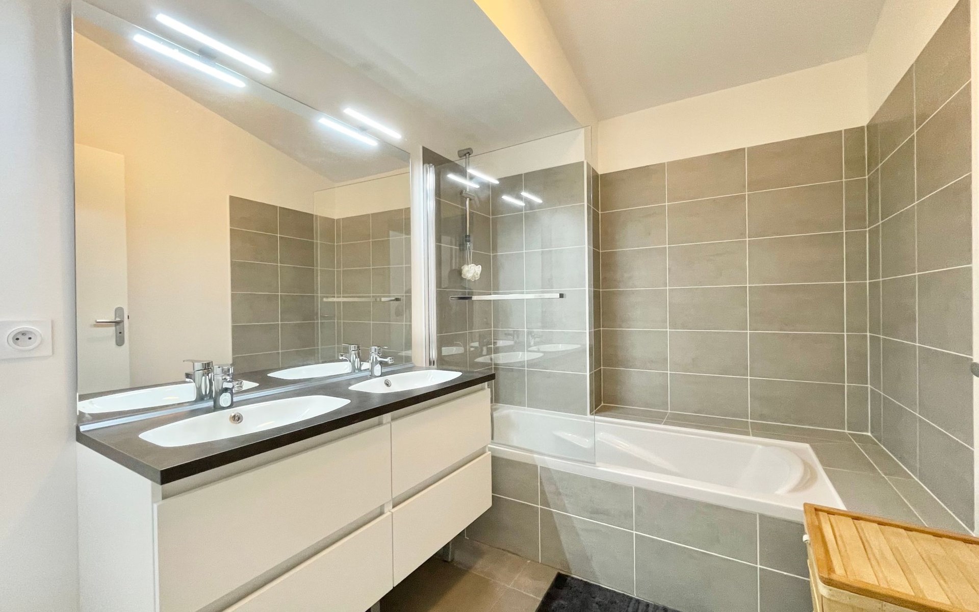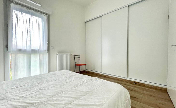 The 60 m² garden is laid to lawn and planted with trees, providing a private, unoverlooked space. A 20 m² terrace, equipped with a parasol, a six-seater dining table and a small electric barbecue, invites you to dine al fresco, while a 6 m² shaded wooden terrace completes this outdoor space with garden furniture, all in an individually fenced plot.