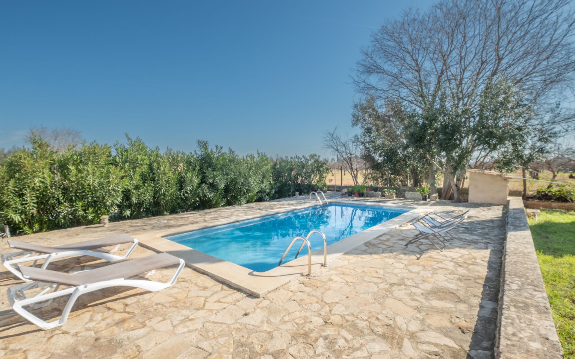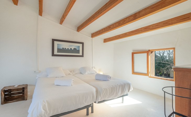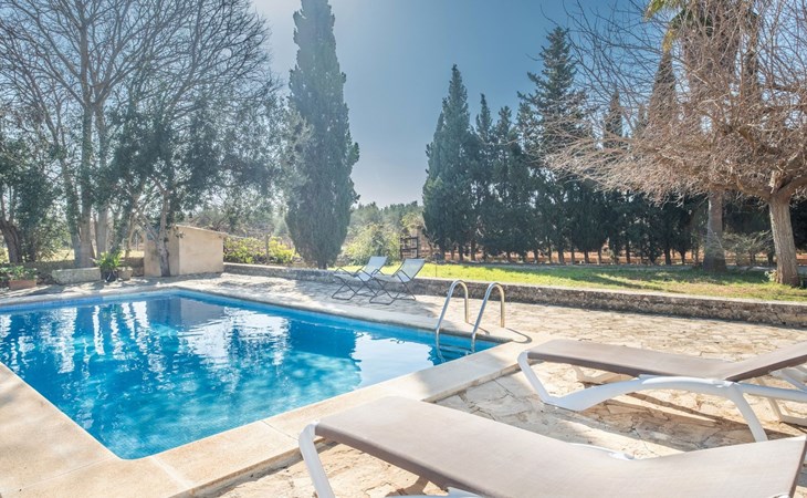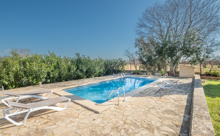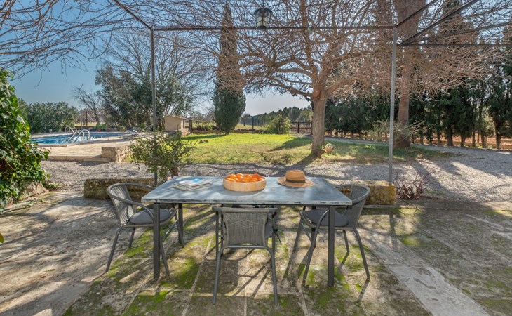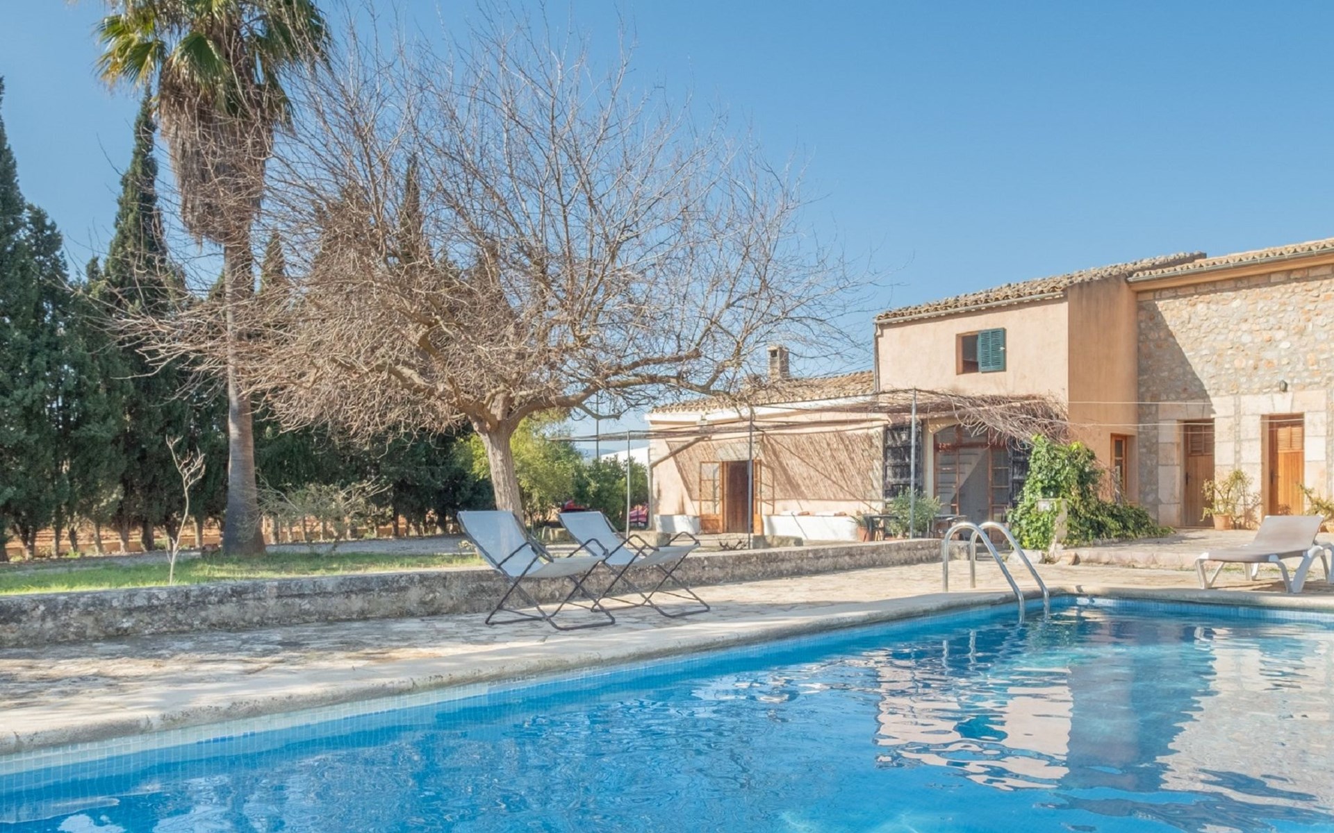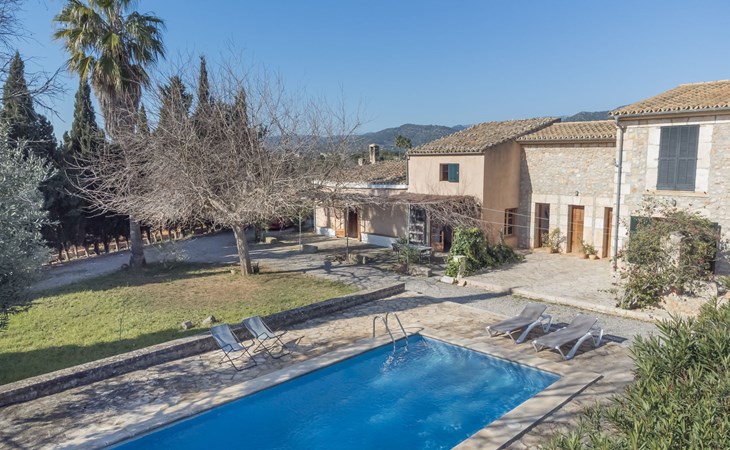Rustic, historical farmhouse "Sa Caseta", 2 storeys, semi-detached, built in 1820, surrounded by fields and vineyards. Property composed of main house and outbuilding, outside the resort, 2 km from the centre of Binissalem, in a quiet, sunny position, 5 km from the edge of the forest, 36 km from the sea, in the countryside. Private: natural state property (fenced), garden with wildlife garden and trees, swimming pool angular (8 x 4 m, depth 120 - 250 cm, seasonal availability: 01.Jan. - 31.Dec.). Outdoor shower, pool maintenance by the owner/gardener. In the house: central heating system. Supermarket 1.7 km, restaurant 2 km, bar 1.8 km, bakery 2.3 km, 35 minute walk to the centre, bus stop "Binissalem" 2 km, railway station "Binissalem Estació (213)" 2.4 km, ferry "Port d'Alcúdia" 32 km, sandy beach "Playa de Alcúdia" 29 km. Golf course (18 hole) 26 km, cycle lane 200 m. Nearby attractions: Bodegas Tianna Negre 450 m, Bodegas Jose Luís Ferrer 2.7 km, Santuari de Lluc 23.5 km, Pueblos:Inca,Lloseta,Consell, Sta. Maria, Palma 30 km, Mallorca Fashion Outlet & Cinemas 17 km. Hiking paths: Tossals Verds, Castell d'Alaró, Serra de Tramuntana. Please note: car recommended. The owner does not accept any youth groups. Part of the house is closed and unoccupied. Airfield 32 km from the property. Events and parties are not allowed.