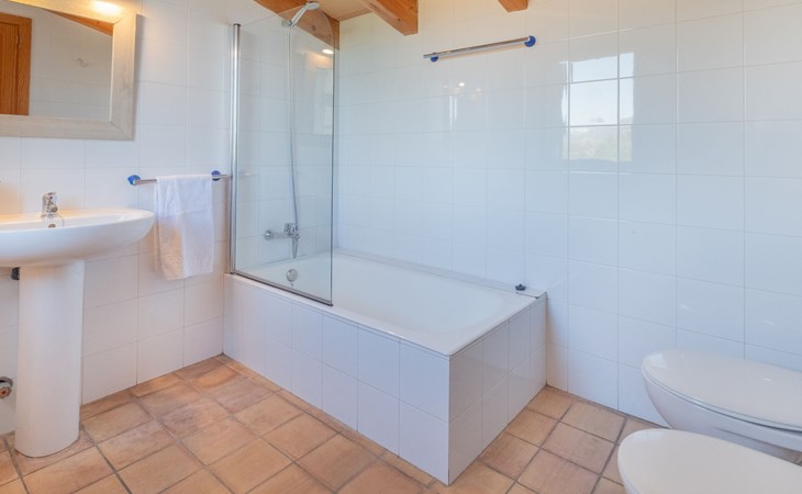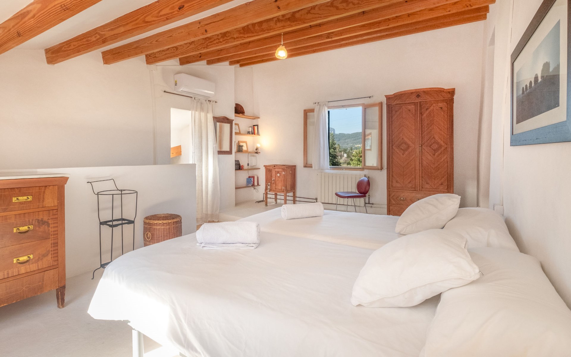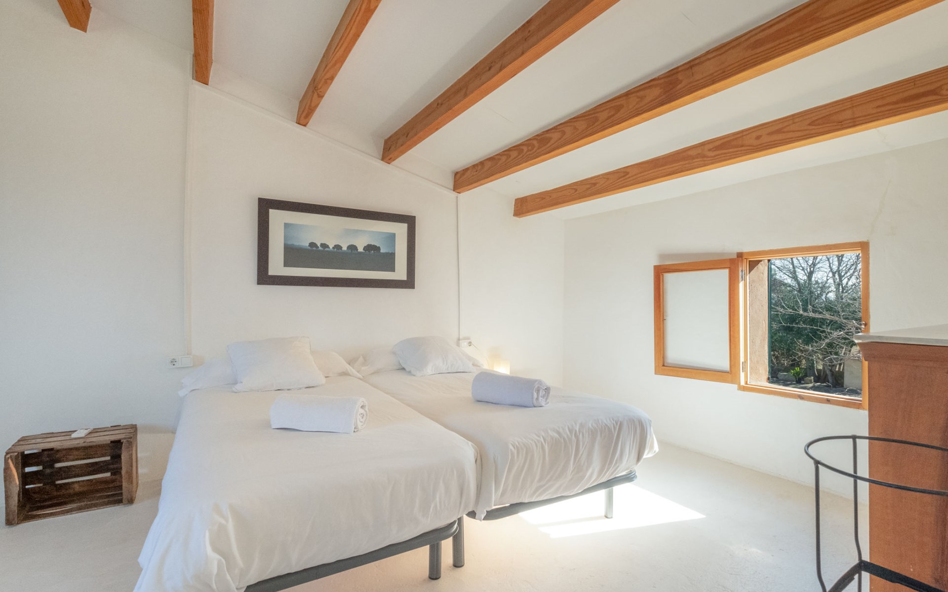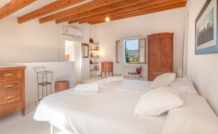 Rustic, historical farmhouse "Sa Caseta", 2 storeys, semi-detached, built in 1820, surrounded by fields and vineyards. Property composed of main house and outbuilding, outside the resort, 2 km from the centre of Binissalem, in a quiet, sunny position, 5 km from the edge of the forest, 36 km from the sea, in the countryside. Private: natural state property (fenced), garden with wildlife garden and trees, swimming pool angular (8 x 4 m, depth 120 - 250 cm, seasonal availability: 01.Jan. - 31.Dec.). Outdoor shower, pool maintenance by the owner/gardener. In the house: central heating system. Supermarket 1.7 km, restaurant 2 km, bar 1.8 km, bakery 2.3 km, 35 minute walk to the centre, bus stop "Binissalem" 2 km, railway station "Binissalem Estació (213)" 2.4 km, ferry "Port d'Alcúdia" 32 km, sandy beach "Playa de Alcúdia" 29 km. Golf course (18 hole) 26 km, cycle lane 200 m. Nearby attractions: Bodegas Tianna Negre 450 m, Bodegas Jose Luís Ferrer 2.7 km, Santuari de Lluc 23.5 km, Pueblos:Inca,Lloseta,Consell, Sta. Maria, Palma 30 km, Mallorca Fashion Outlet & Cinemas 17 km. Hiking paths: Tossals Verds, Castell d'Alaró, Serra de Tramuntana. Please note: car recommended. The owner does not accept any youth groups. Part of the house is closed and unoccupied. Airfield 32 km from the property. Events and parties are not allowed.
