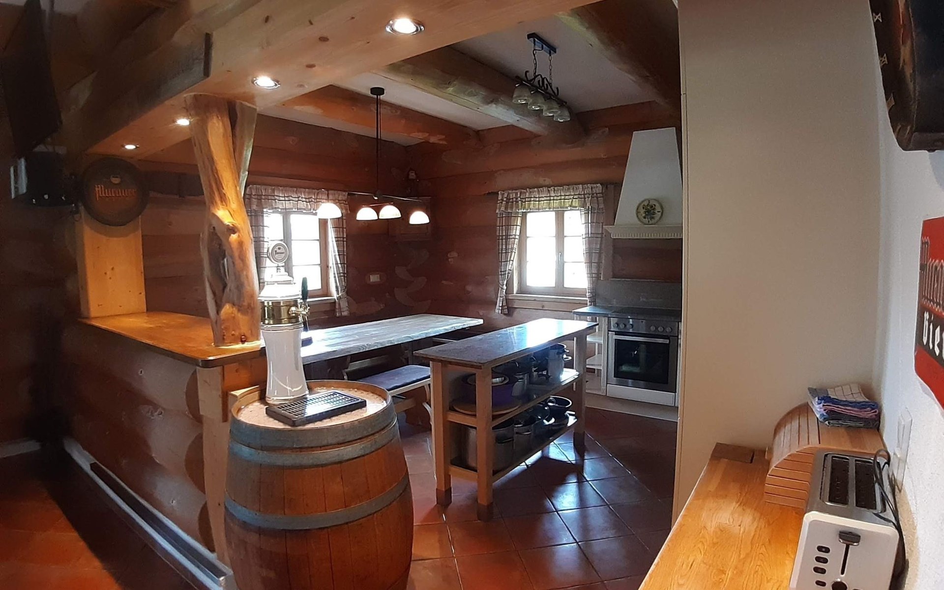 Inside you will find the highest level of comfort combined with a cosy atmosphere. The perfectly equipped kitchen on the ground floor, including a beer tap, leaves nothing to be desired. The large seating area in the open-plan dining and living area invites you to socialise in the evenings, while the SaT TV provides entertainment. For a good night's sleep, there is a bedroom with a double bed and bathroom on the ground floor and two further bedrooms with their own TV and an additional bathroom on the upper floor. The highlight is the wellness area in the basement with sauna, infrared cabin, whirlpool, shower and separate WC - perfect for relaxing after an active day.