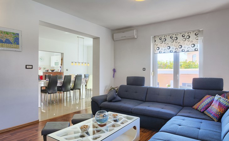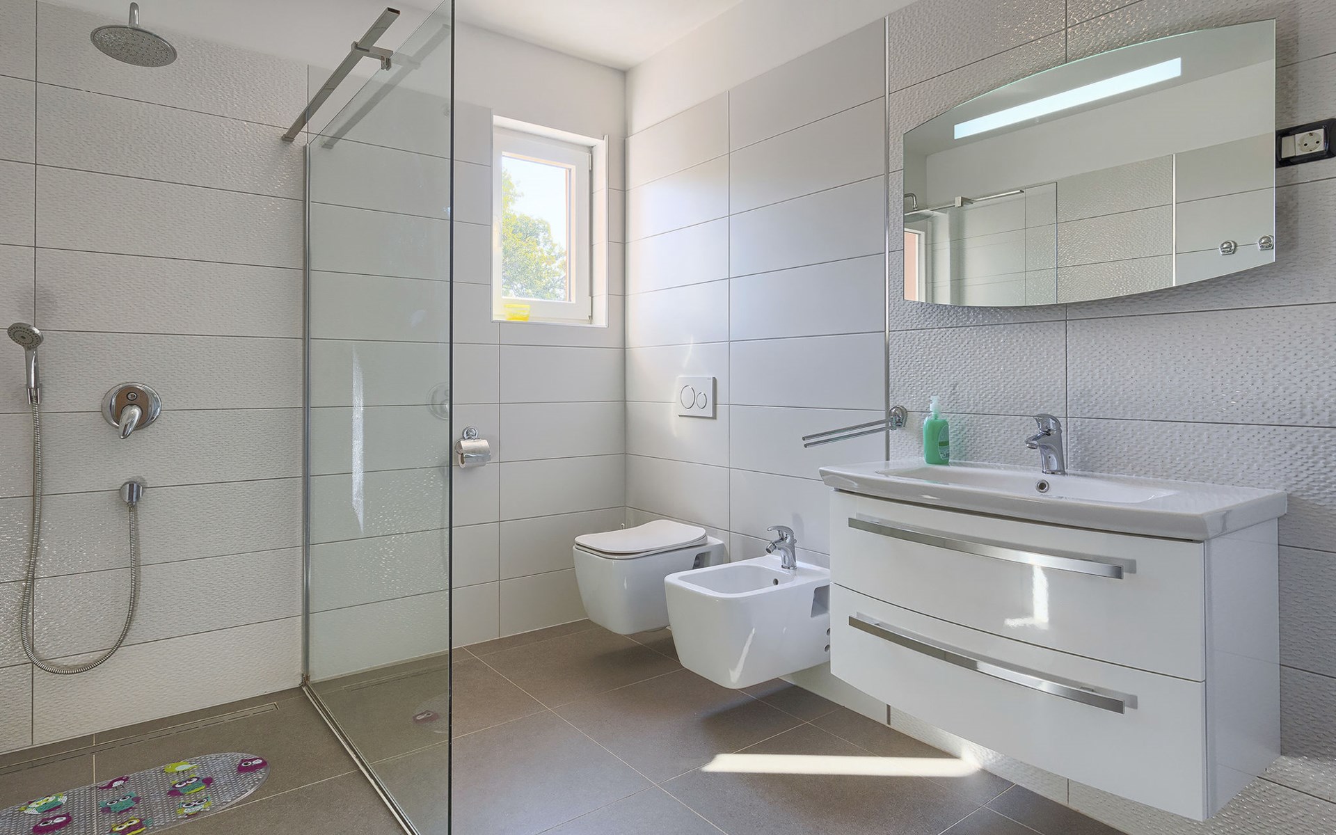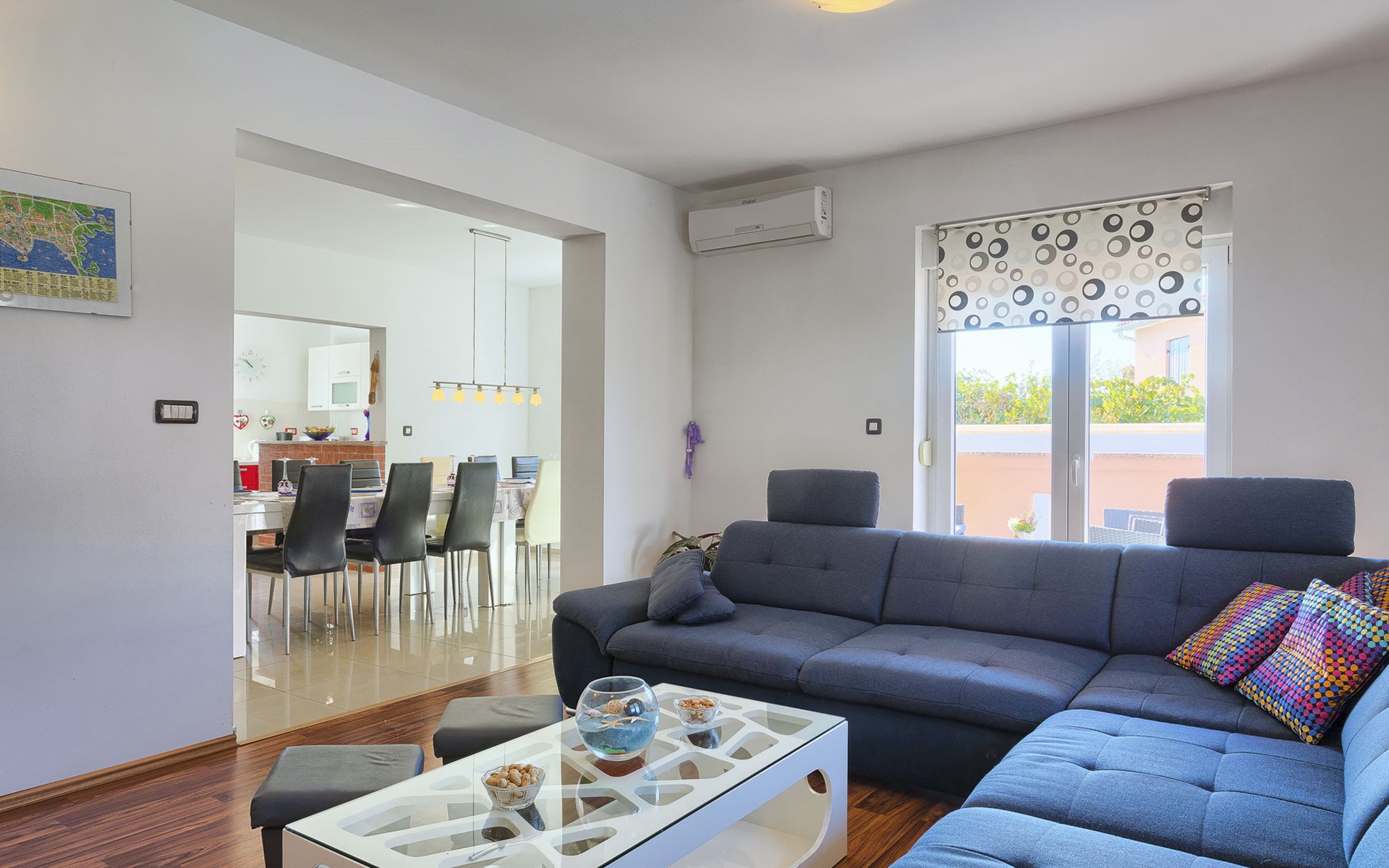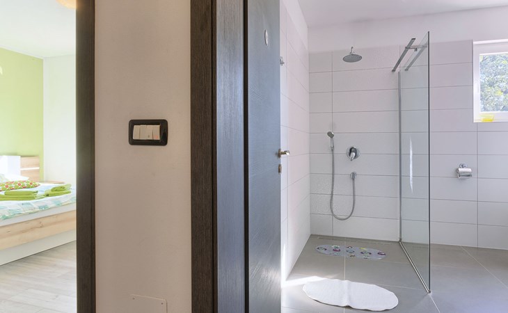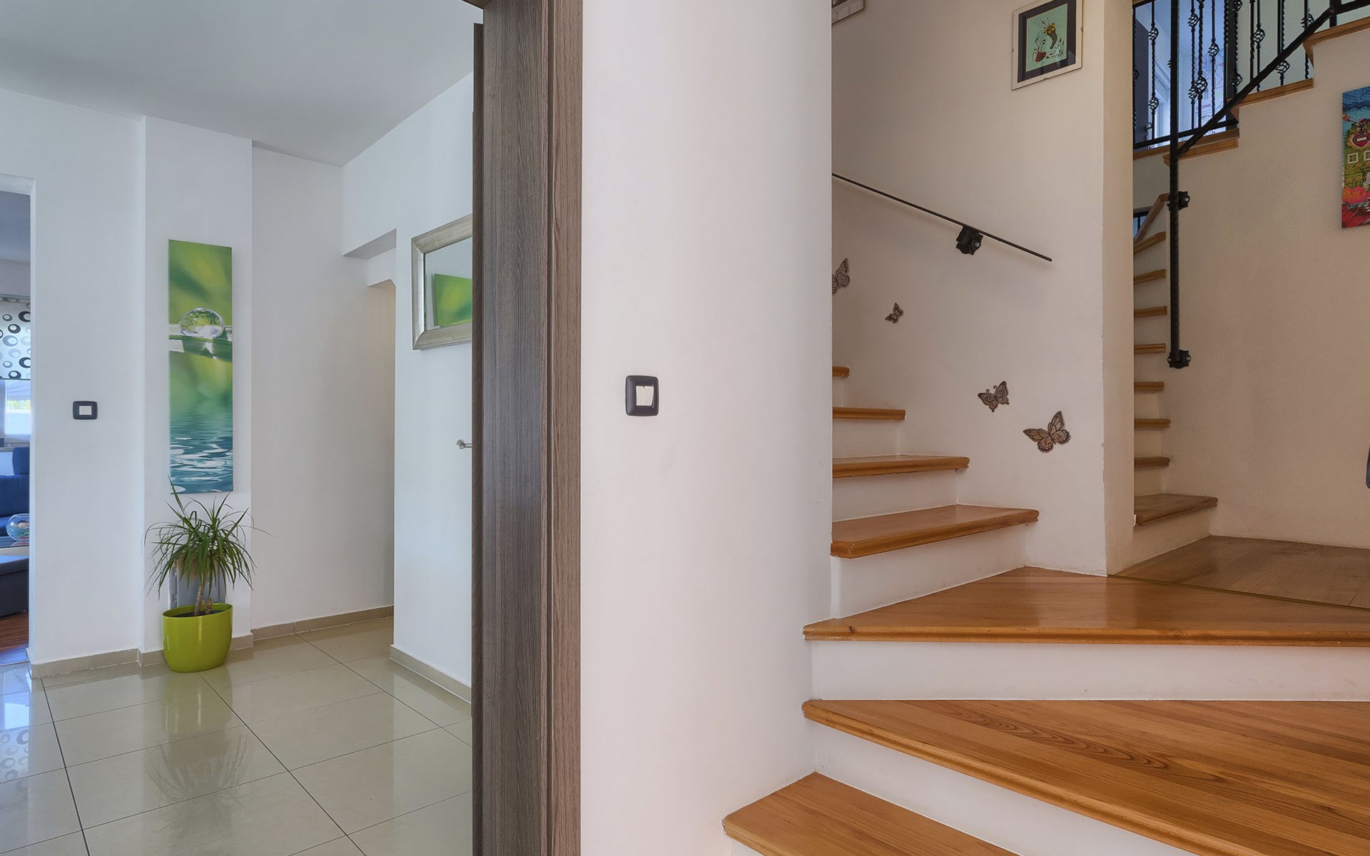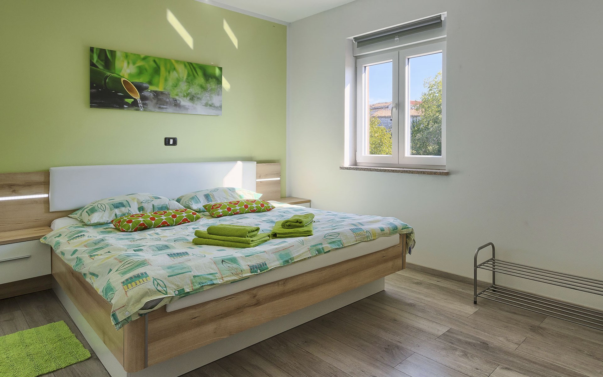 Single-family house "Paus", 2 storeys. In the hamlet Orihi 7 km from the centre of Barban, in a quiet, sunny position, 15 km from the sea. Private: property 1'000 m2 (fenced), garden with lawn and wildlife garden, swimming pool heated (32 m2, depth 140 cm, seasonal availability: 27.Apr. - 26.Oct.) with internal staircase. Unconventional pool shape. Outdoor shower, table tennis, terrace (40 m2), garden furniture, barbecue, children's playground (slide, swing). In the house: internet access, sauna, billiard table, trampoline, washing machine. Parking at the house on the premises. Shop 50 m, restaurant 250 m, bus stop 3 km, pebble beach 15 km. Riding stable 15 km, walking paths from the house 100 m, cycle lane 150 m. Nearby attractions: Adrenalin park 15 km. Groups of teenagers are not allowed.