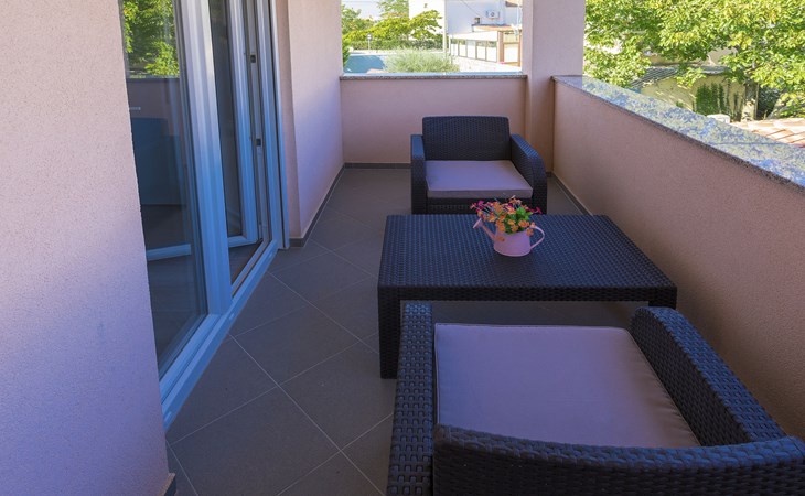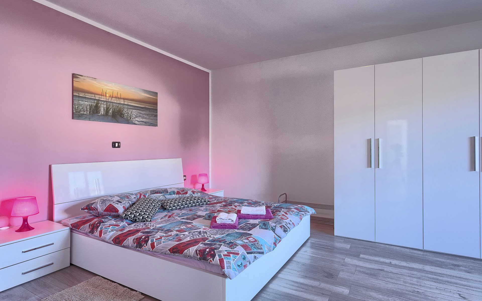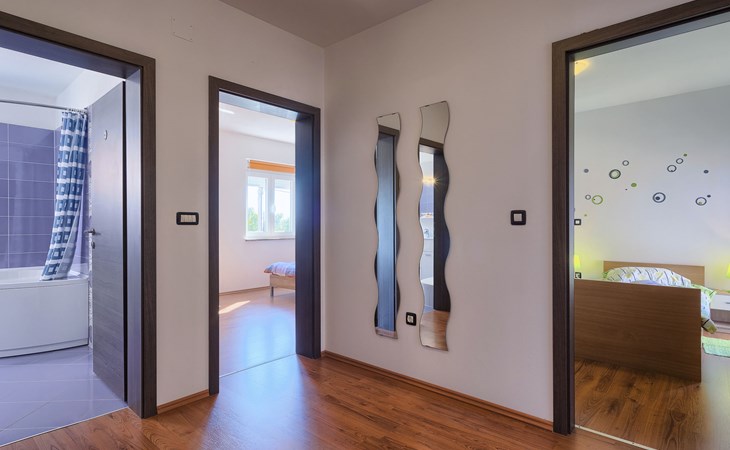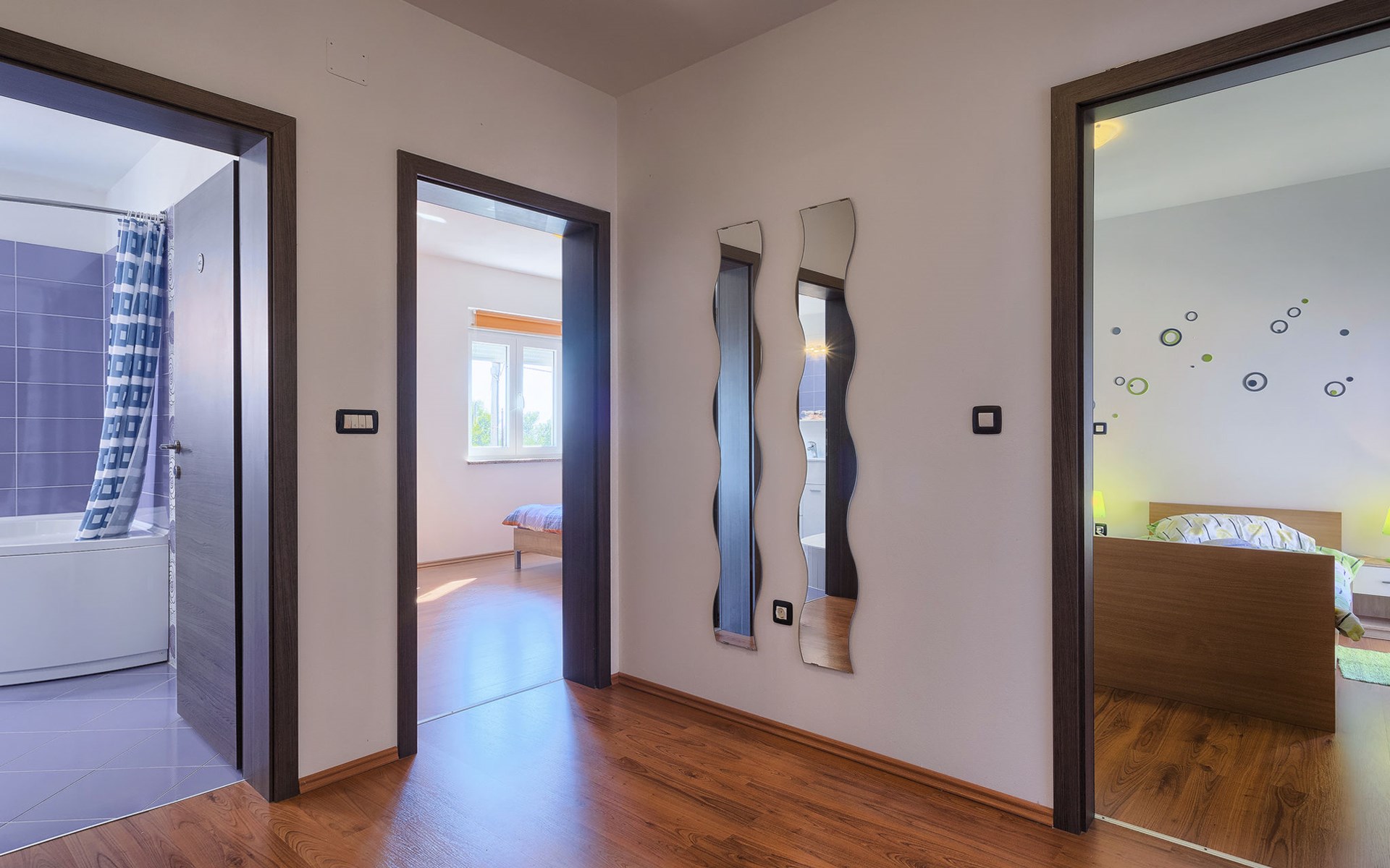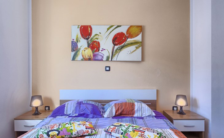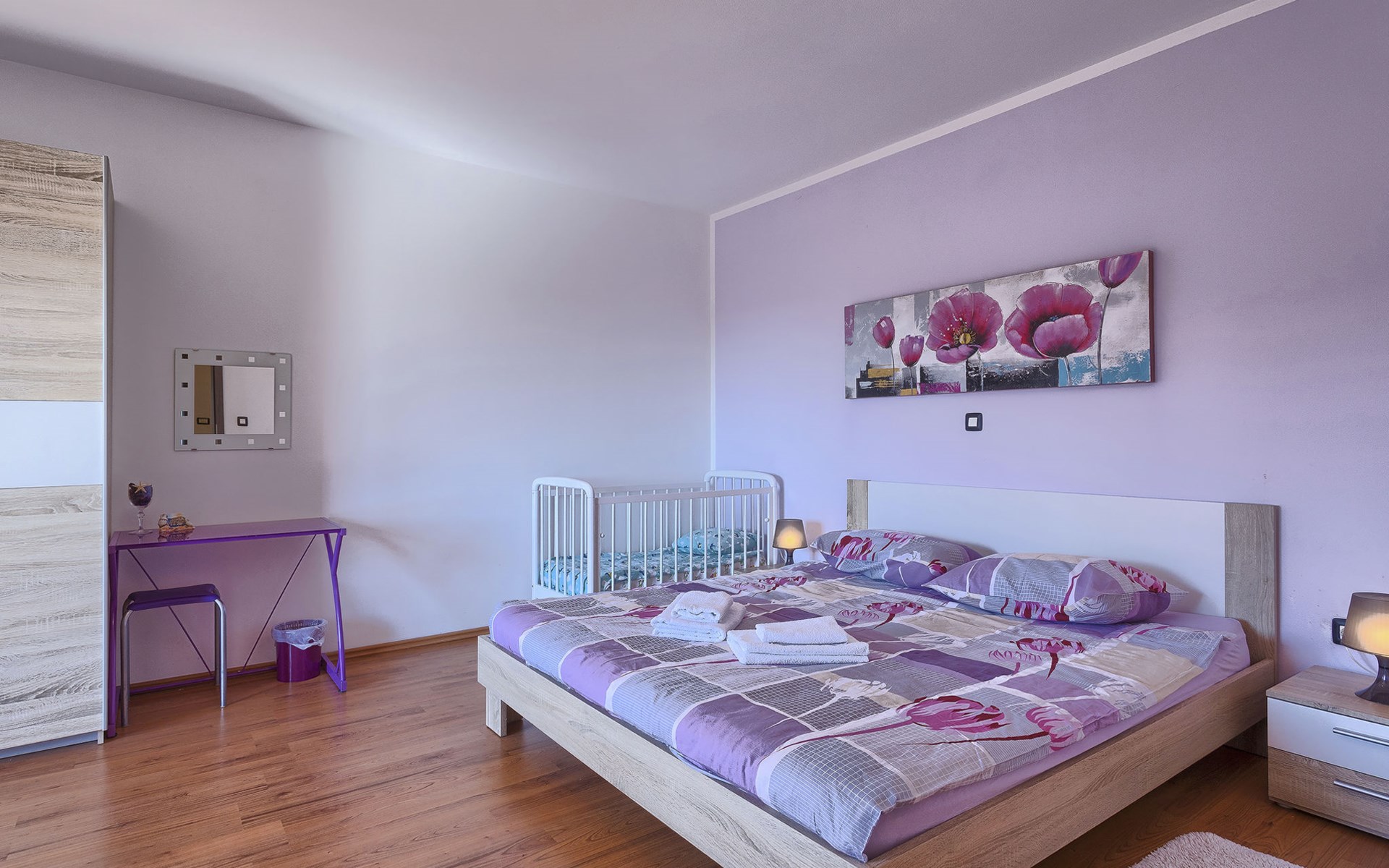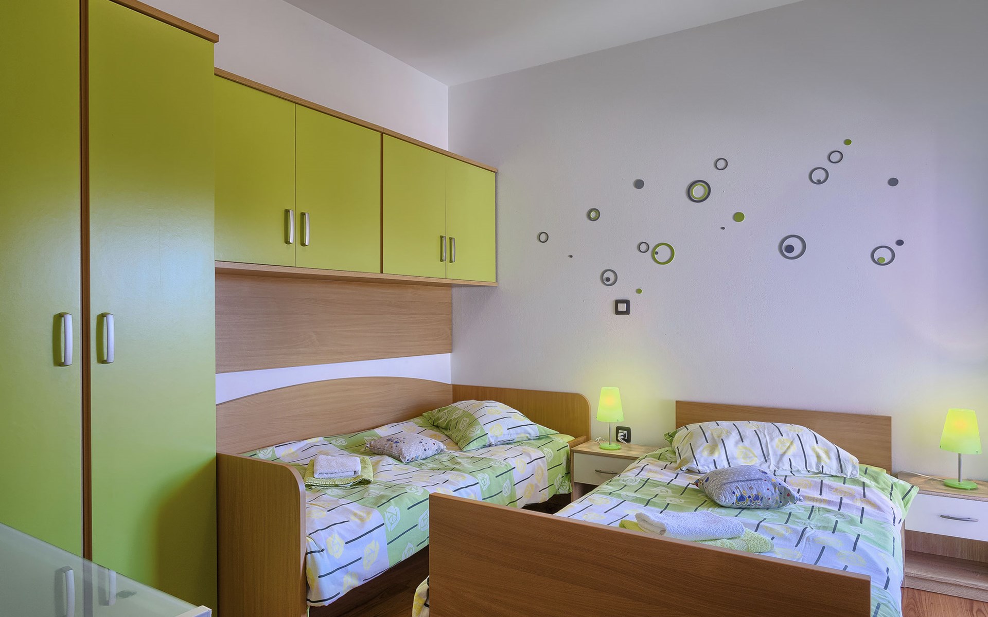 Single-family house "Paus", 2 storeys. In the hamlet Orihi 7 km from the centre of Barban, in a quiet, sunny position, 15 km from the sea. Private: property 1'000 m2 (fenced), garden with lawn and wildlife garden, swimming pool heated (32 m2, depth 140 cm, seasonal availability: 27.Apr. - 26.Oct.) with internal staircase. Unconventional pool shape. Outdoor shower, table tennis, terrace (40 m2), garden furniture, barbecue, children's playground (slide, swing). In the house: internet access, sauna, billiard table, trampoline, washing machine. Parking at the house on the premises. Shop 50 m, restaurant 250 m, bus stop 3 km, pebble beach 15 km. Riding stable 15 km, walking paths from the house 100 m, cycle lane 150 m. Nearby attractions: Adrenalin park 15 km. Groups of teenagers are not allowed.
