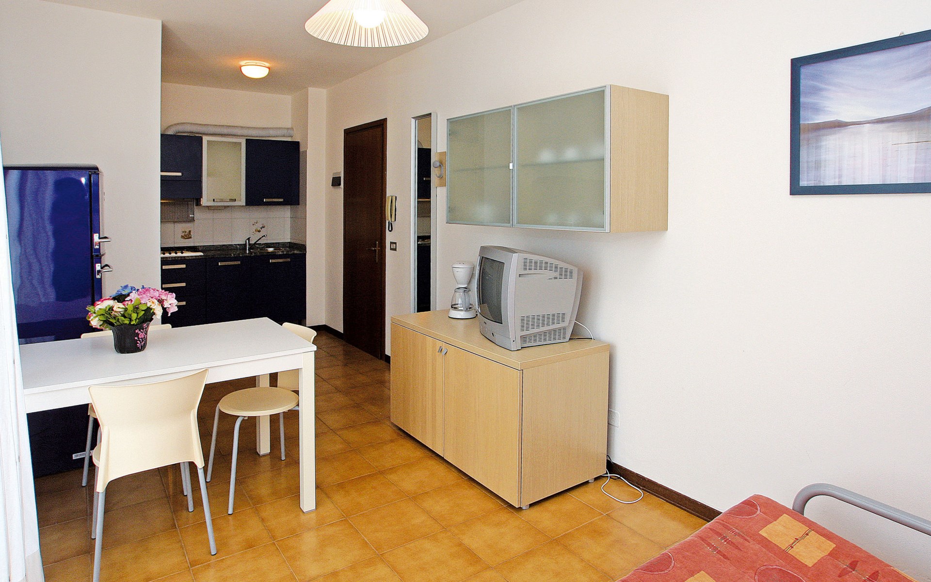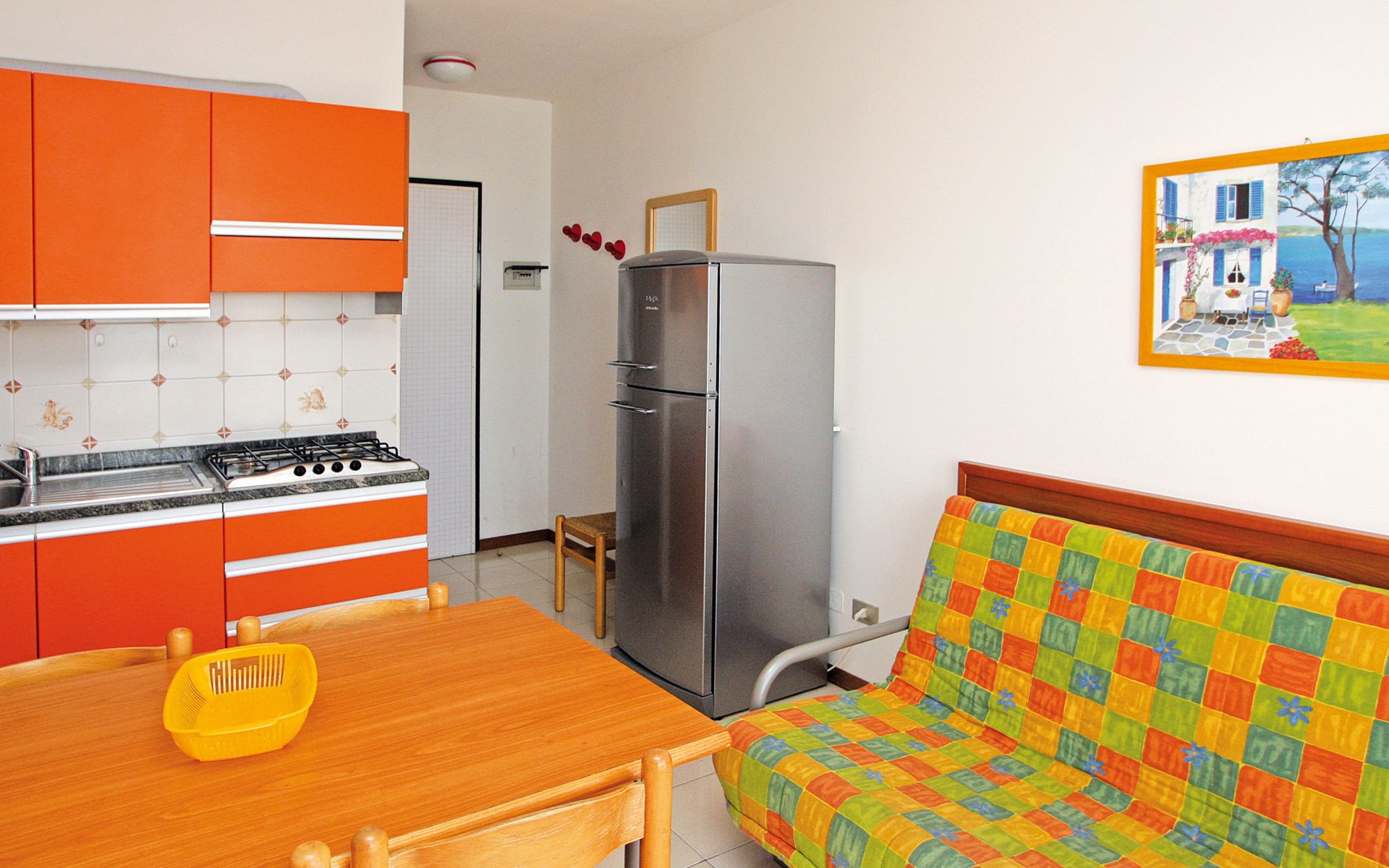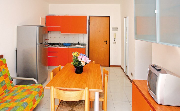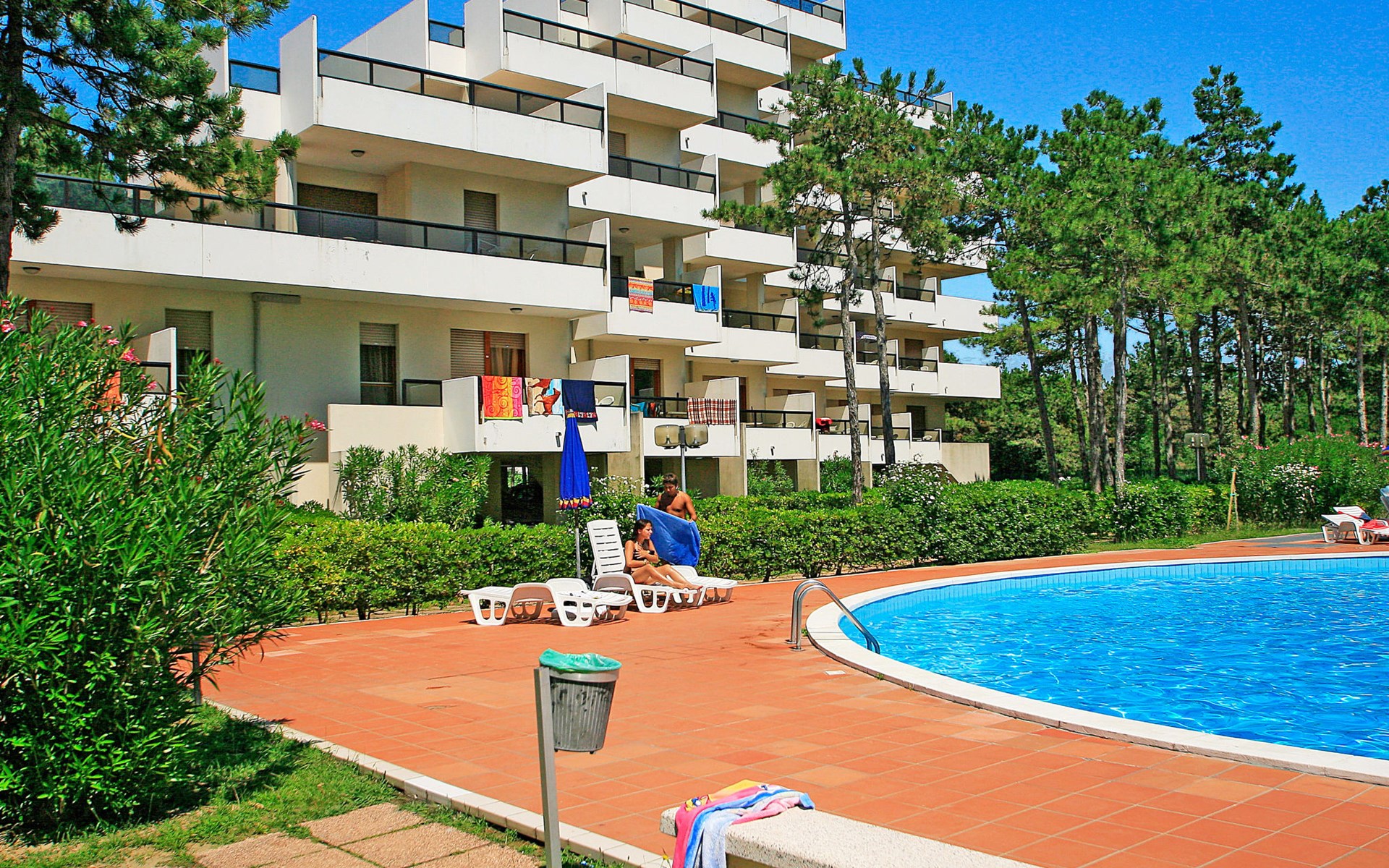 Large resort "Villaggio Serenissima", 8 storeys. 4 houses in the resort. In the district of Bibione-Lido del Sole 1.3 km from the centre of Bibione, 13 km from the centre of Lignano, 100 km from the centre of Venezia, 400 m from the sea. For shared use: natural state property with plants and trees, swimming pool (13 x 6 m, seasonal availability: 15.May. - 15.Sep.). Children's pool. In the house: lift. Parking at the house on the premises. Shop, restaurant 250 m, bus stop 350 m, railway station "Latisana (Milano-Venezia-Triest)" 21 km, sandy beach 400 m, thermal baths "Bibione Thermae" 1 km. Golf course (18 hole) 9 km.