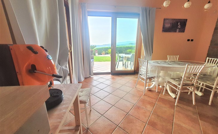 Outside, guests are greeted by a large terrace and a communal garden, ideal for al fresco dining or simply relaxing under the Cilento sky. Despite the owner's presence on the property, guests' independence and privacy are completely guaranteed. A magnificent swimming pool of over 16 metres, open from 9:00 to 20:00, and located on a sun terrace offers breathtaking views of the Gulf of Salerno, promising refreshing summer dips. In addition, a mini play area and a Mediterranean garden invite guests to enjoy pleasant moments of play or relaxation in the greenery.