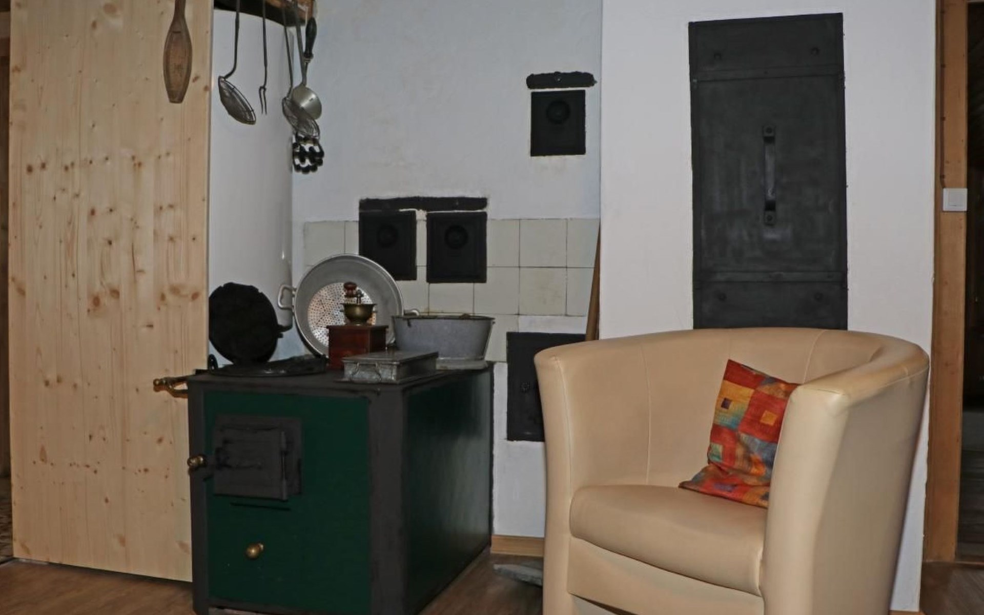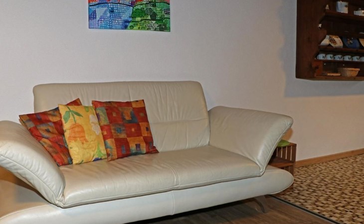 Inside, you will find a bright, fully equipped eat-in kitchen with everything you need for everyday life. Comfortable seating such as a sofa and armchair invite you to relax, while a small book corner with swap facilities provides reading material.