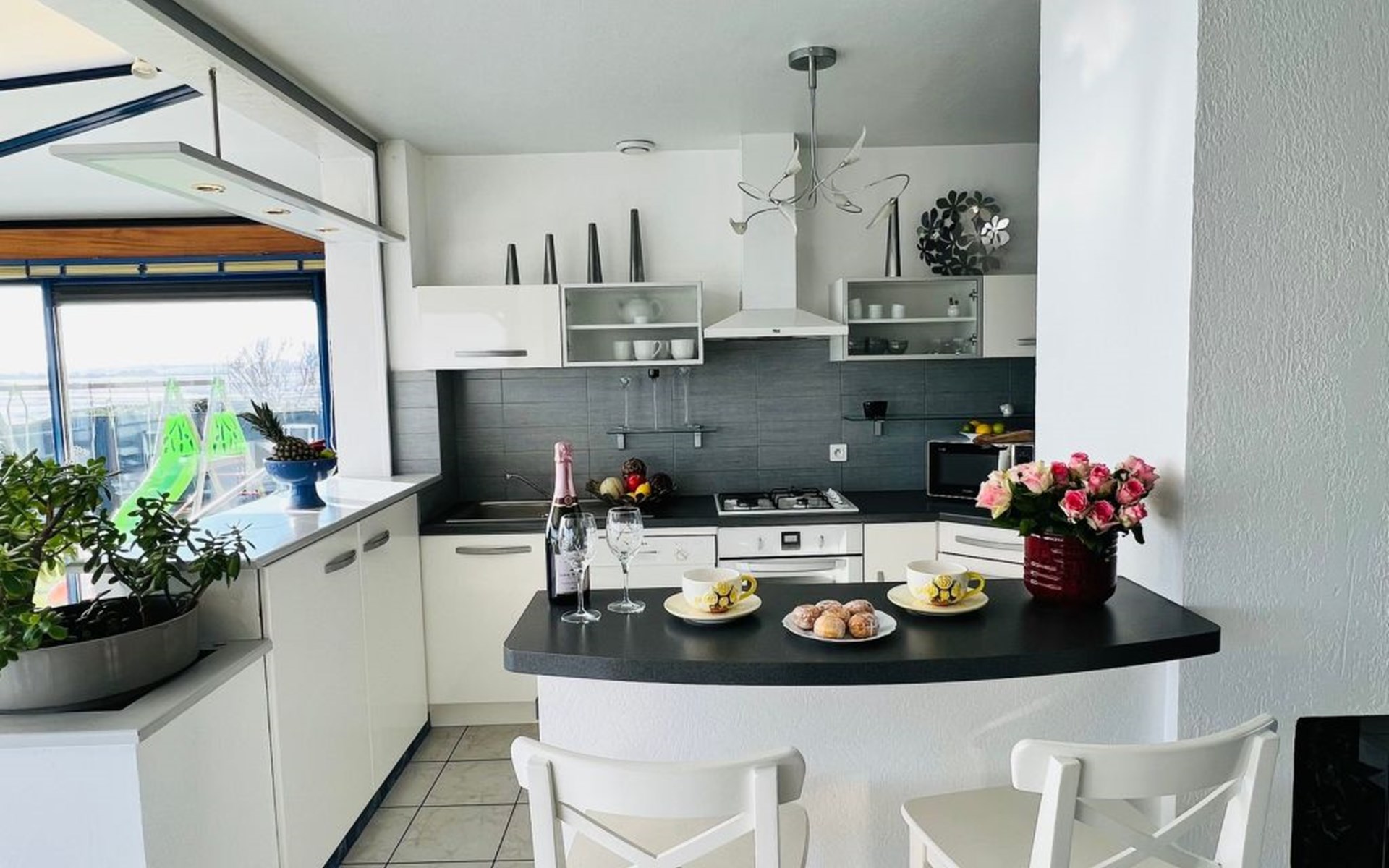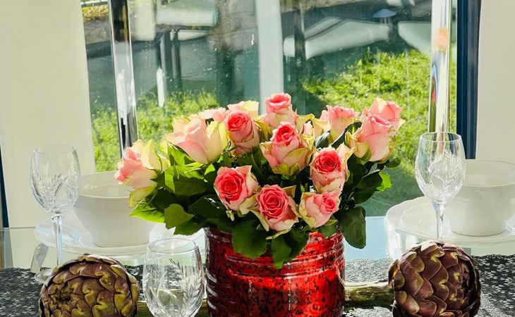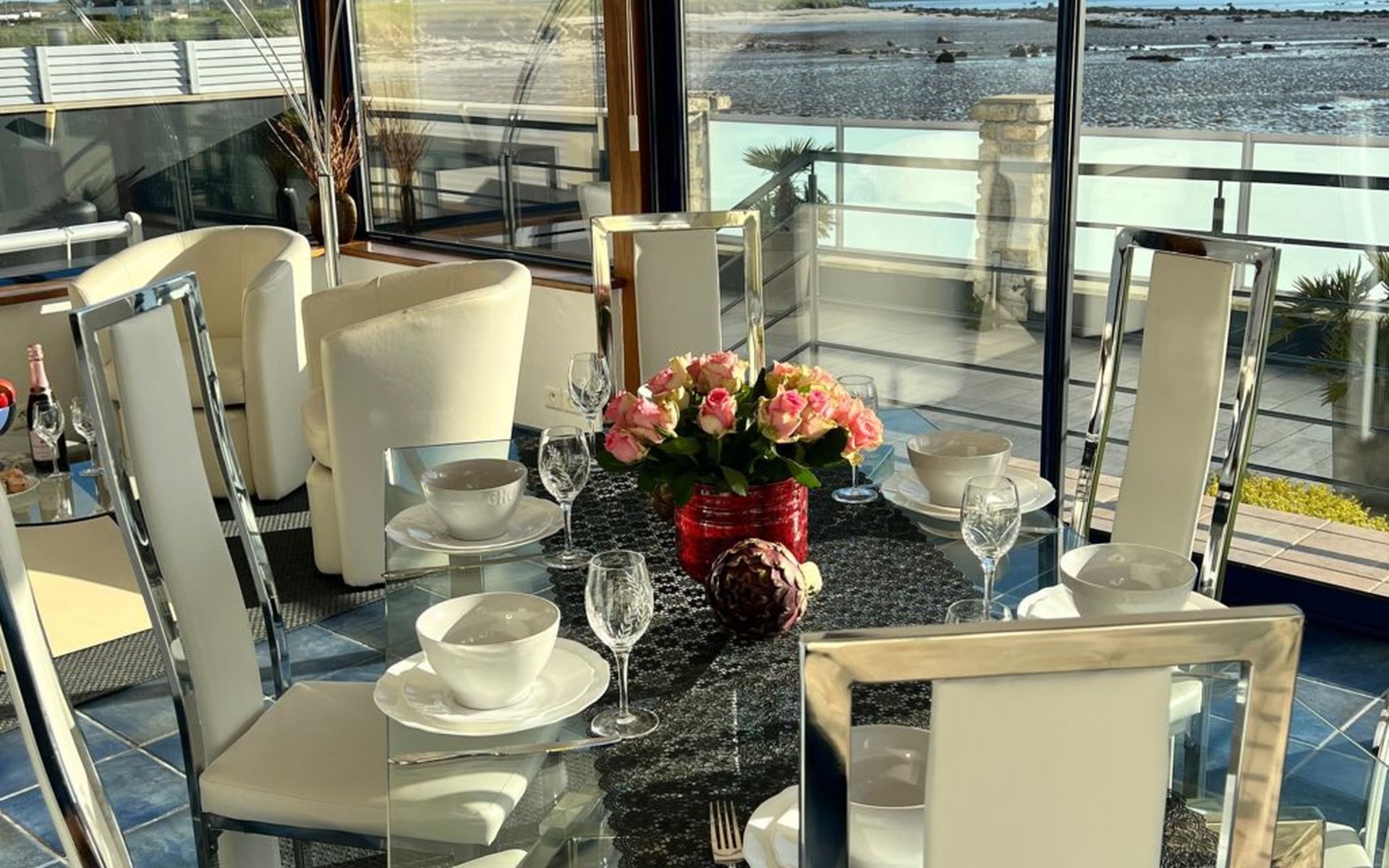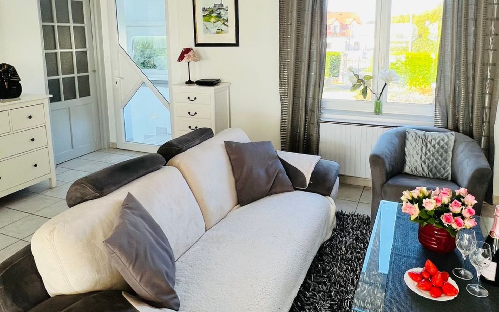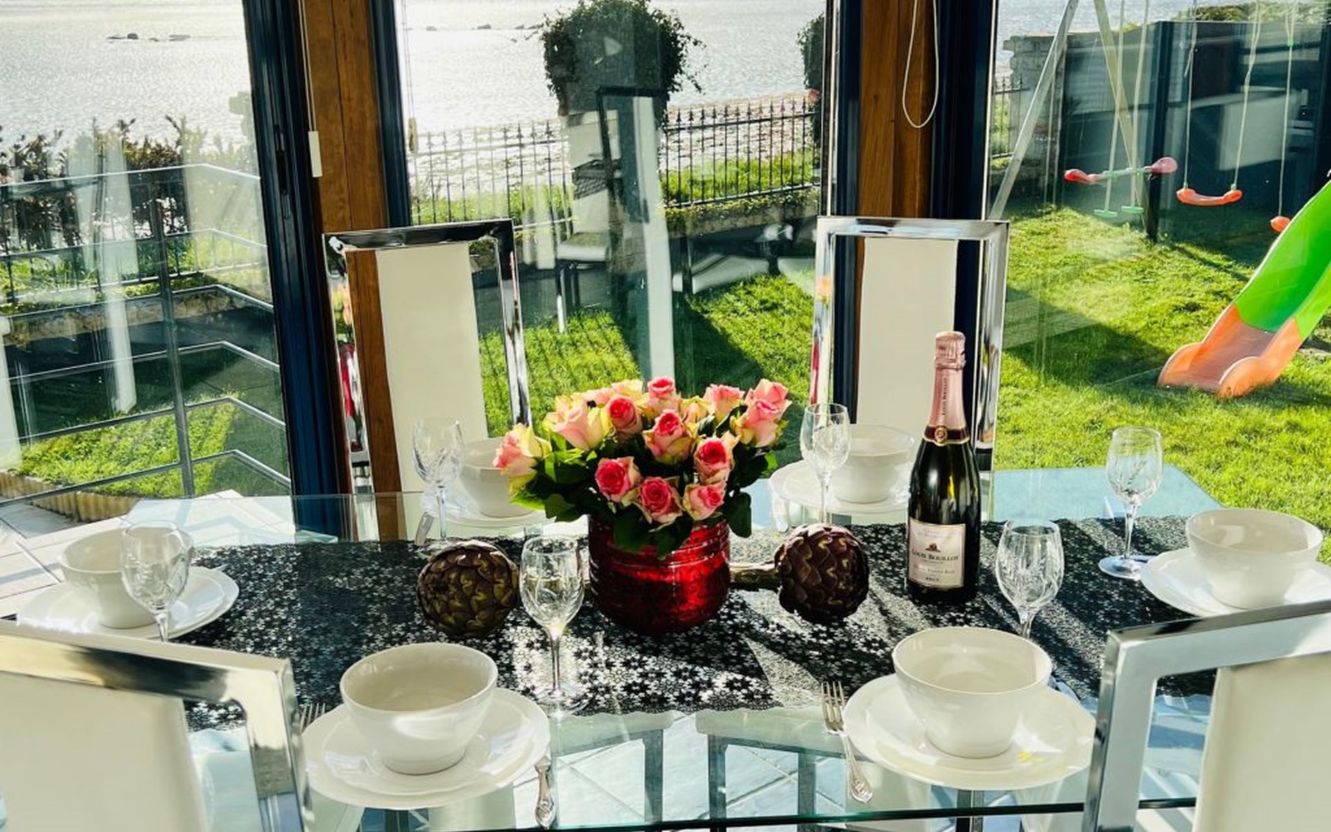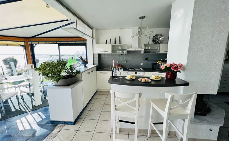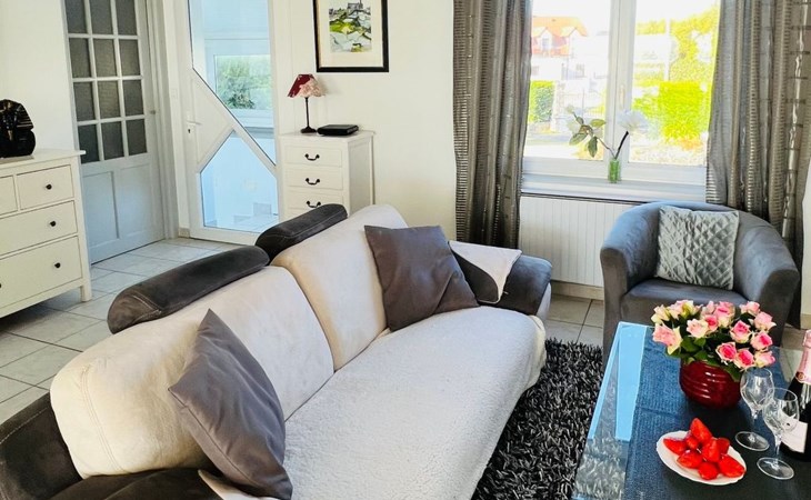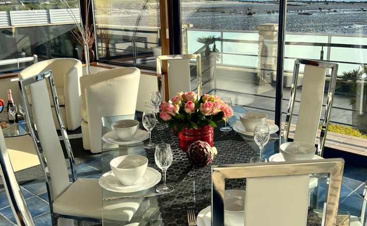 The location is undoubtedly the best feature of the beach villa - you can hardly get any closer to the sea than this. It also has its own access to the beach, a swimming pool in the garden and a view from the open-plan living area made of glass - just like on a cruise ship (I always think when I enjoy the view when I visit the house). There is a small lawn area with play equipment for kids, an extra playroom with table football and bicycles. And on the access side of the house a large car park for several vehicles behind an electric gate. The entire area is fenced in at the front and back - and your four-legged friends are also welcome by appointment - this is literally a dog paradise. Please note that our outdoor beach pool has opening hours throughout the year - it is open from 1 June to 31 September. The temperature of the heated pool - is 24/25°C!