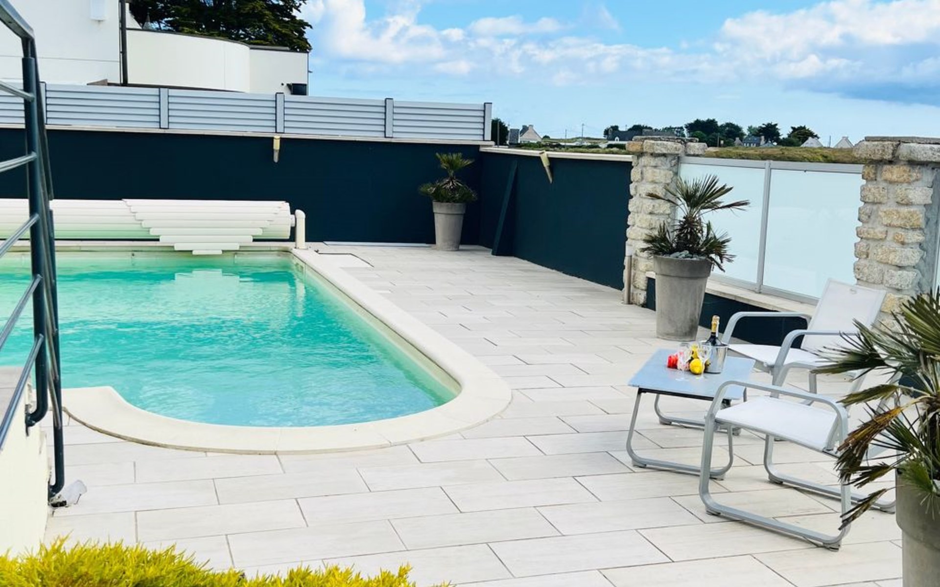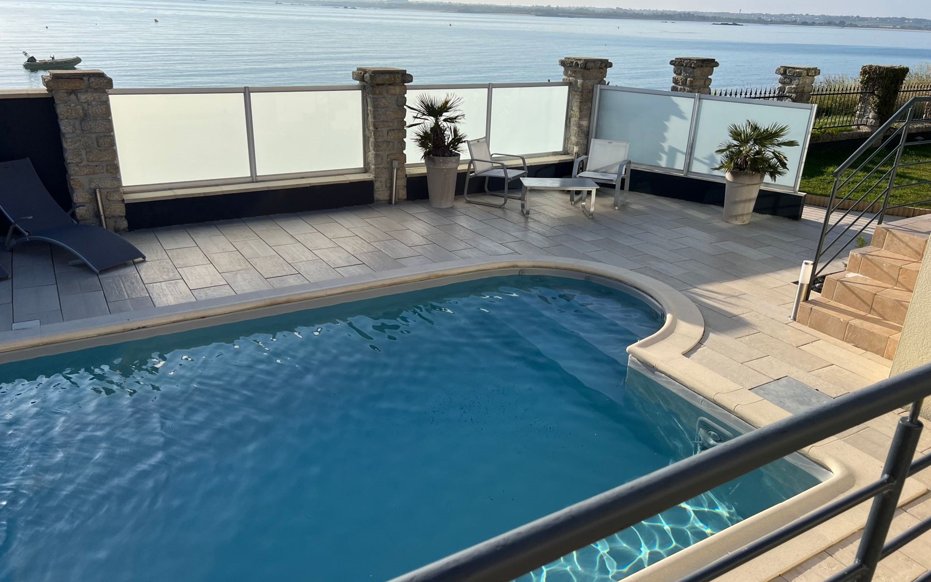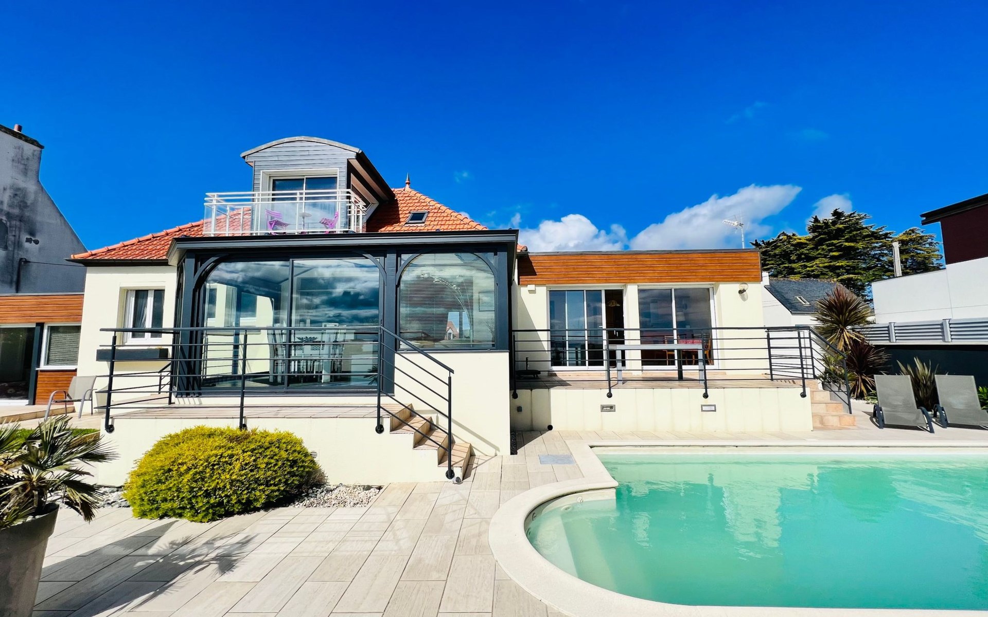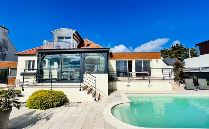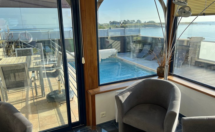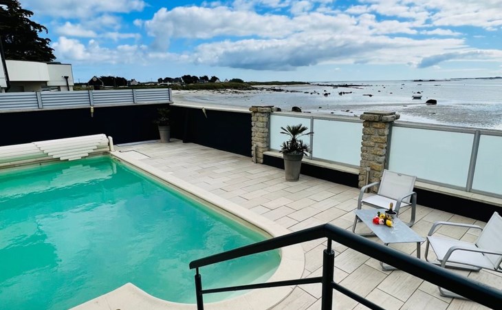 We have been working as an agency in our marvellous Finistère for a long time now, the surroundings are picturesque and you are spoilt by nature - you will be surprised how much space you will find everywhere, even in high season our North Finistère is never overcrowded. This is "THE" advantage for guests who really want to relax and "come down". All this in and with our marvellous nature (we often say ourselves - the world is still in order here - the air is clean, the water is clear and the Bretons are incredibly warm, friendly people). However, this beach house has a location that we have never discovered before. In Plouneour Très directly on the beach, with fantastic sea views; you can't be closer to the sea - a private gate gives direct access to the beach - and then a swimming pool in the garden - incredible for a pretty holiday villa. The "sentier cotier" in front of the house invites you, even with your dog, to take wonderful walks. We especially love the vastness at low tide - sand as far as the eye can see and 6 hours later sea as far as the eye can see. And just around the corner there's a small pizzeria, a café and a beach bar....that's also rare here in Finistère, you'll love the location of the house, at least that's how we feel!!!