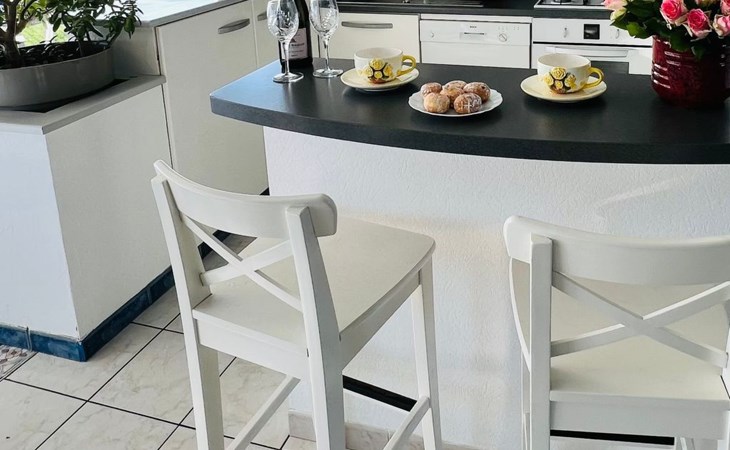 Absolute dream holiday location - you could almost say "on" the beach. Wonderfully situated in a beautiful bay, the swimming pool in the garden and the beach on the doorstep - it really doesn't get any closer. We say this is our beach house with a "yacht feeling", slightly elevated above the pool, the fully glazed living room offers a complete and rich sea view over the beach - you can't imagine it more marvellous - it is indescribably authentic and impressive - this location is almost unique for our region. The sofa and dining table offer sea views from every seat. Not only does the house have its own private swimming pool (only open from 1 June to 30 September), but the master bedroom with its own small sea view balcony is located above the living/yacht area, as well as a bathroom and WC en suite. On the ground floor there is a bathroom/WC and 2 bedrooms (one of which has 2 separate beds - we recommend this as a children's room). On one side is the beautifully palm-covered courtyard with several parking spaces (closed with a large gate); on the other side is the access to the stand; in front is a small green area with a swing and the pool. This part is also 100% enclosed by walls and fences - a beach gate gives direct access to the sea and the beach. There is an extra games room for sports and games.