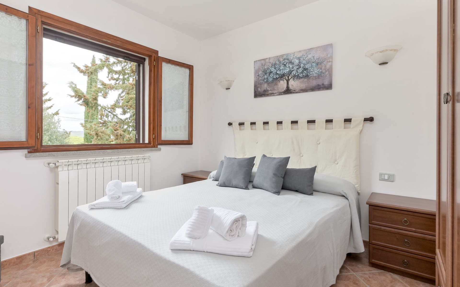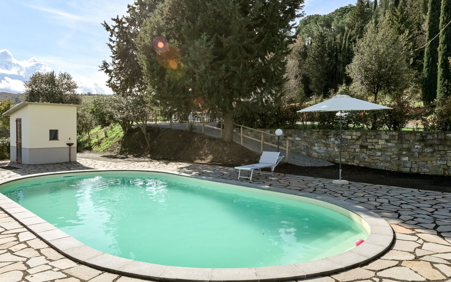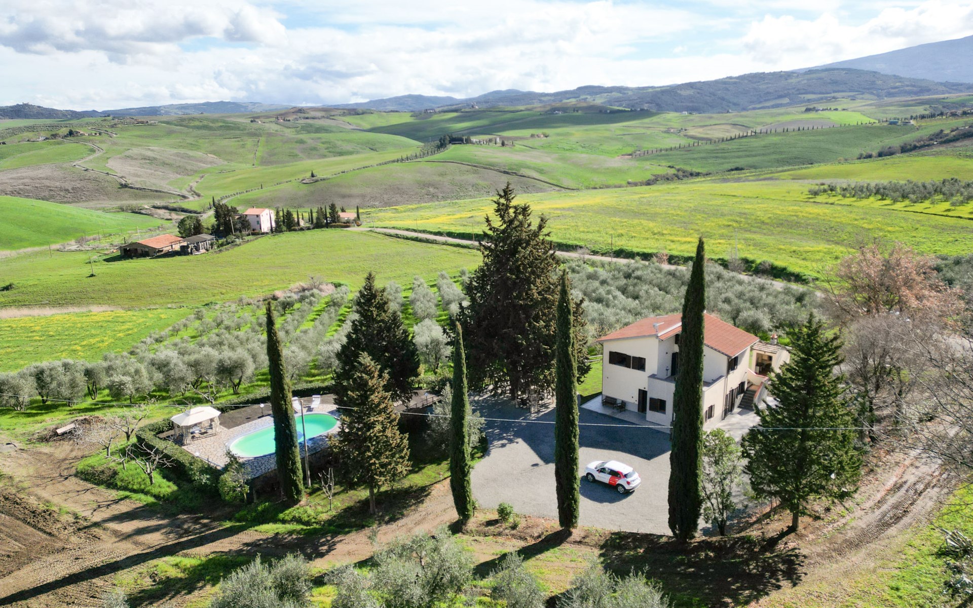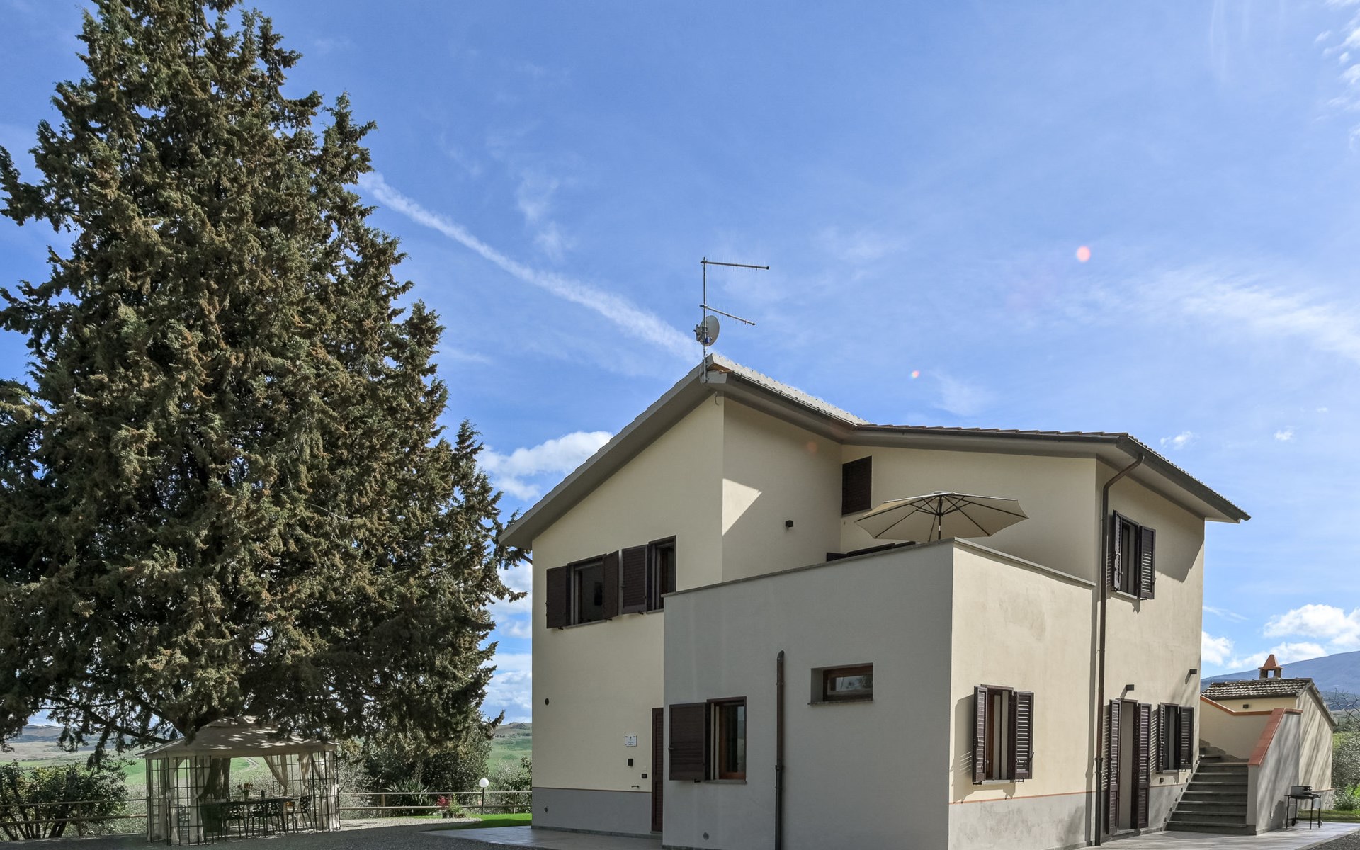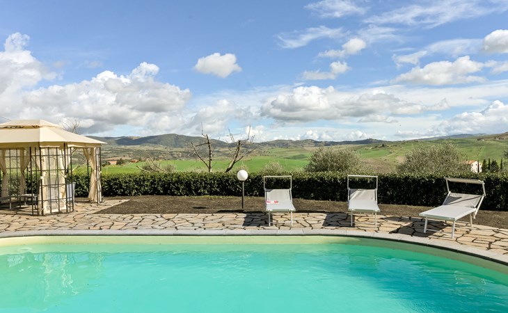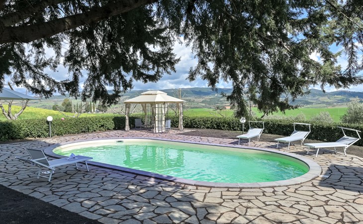 Cosy house "Il Cipresso", 2 storeys, renovated in 2025, surrounded by trees and meadows. 2 km from the centre of Montenero, 23 km from the centre of Montalcino, in a secluded, quiet position, 60 km from the sea, 60 km from the beach, in the countryside. Private: terraced garden with wildlife garden and trees, swimming pool kidney shaped (10 x 5 m, depth 124 cm, seasonal availability: 15.Apr. - 30.Oct.). Outdoor shower, pergola, garden furniture, barbecue, parking at the house. Shop 2 km, grocery 2 km, supermarket 15 km, restaurant 2 km, bar 2 km, bakery 2 km, bus stop "Montenero Bivio" 7 km, railway station "Paganico" 20 km, sandy beach "Castiglione della Pescaia" 67 km, thermal baths "Bagni San Filippo" 40 km. Nearby attractions: Cinigiano / Castel del Piano 16 km, Monte Amiata 28 km, Grosseto 46 km, Pienza 45 km, Siena 60 km. Please note: car recommended.