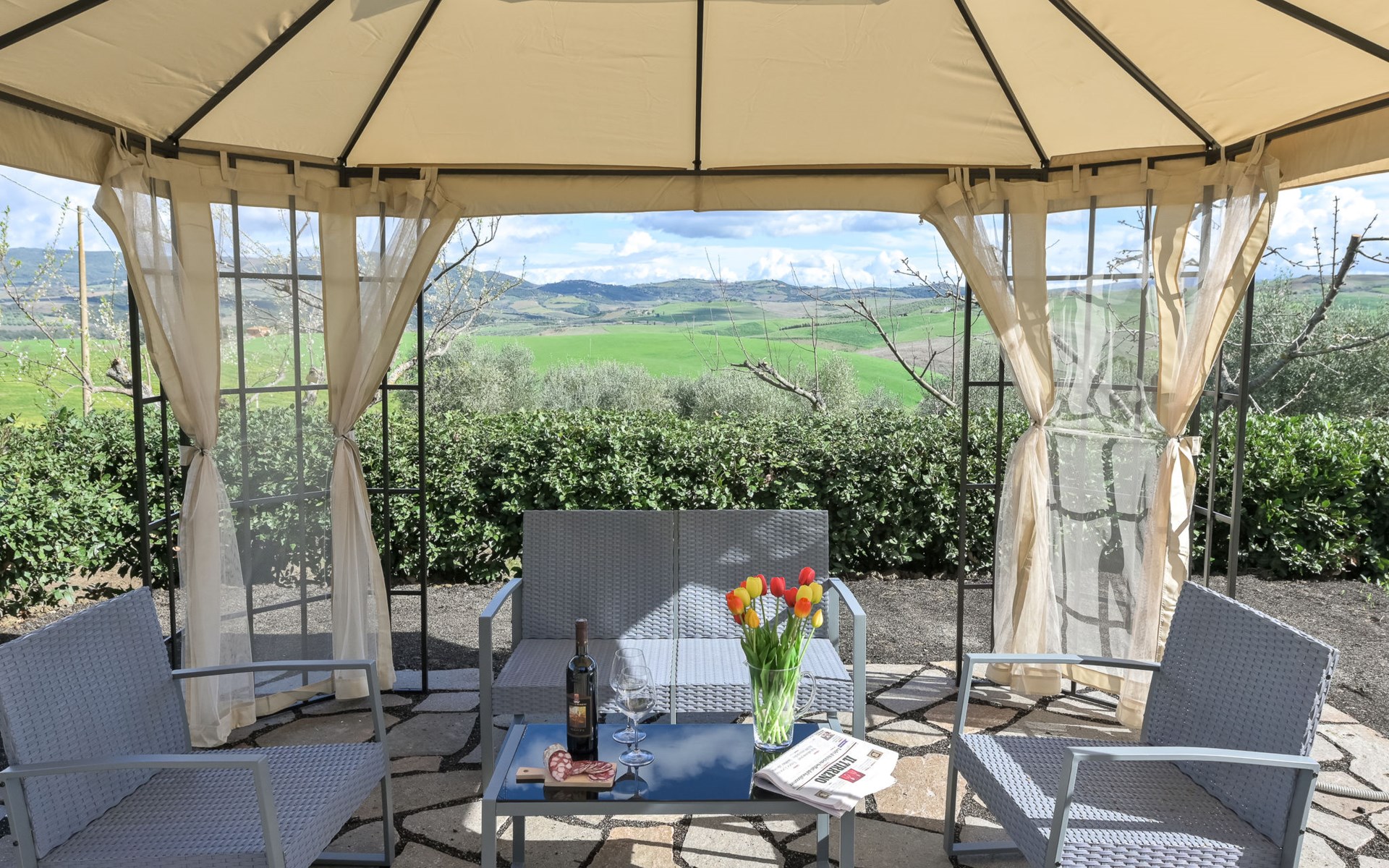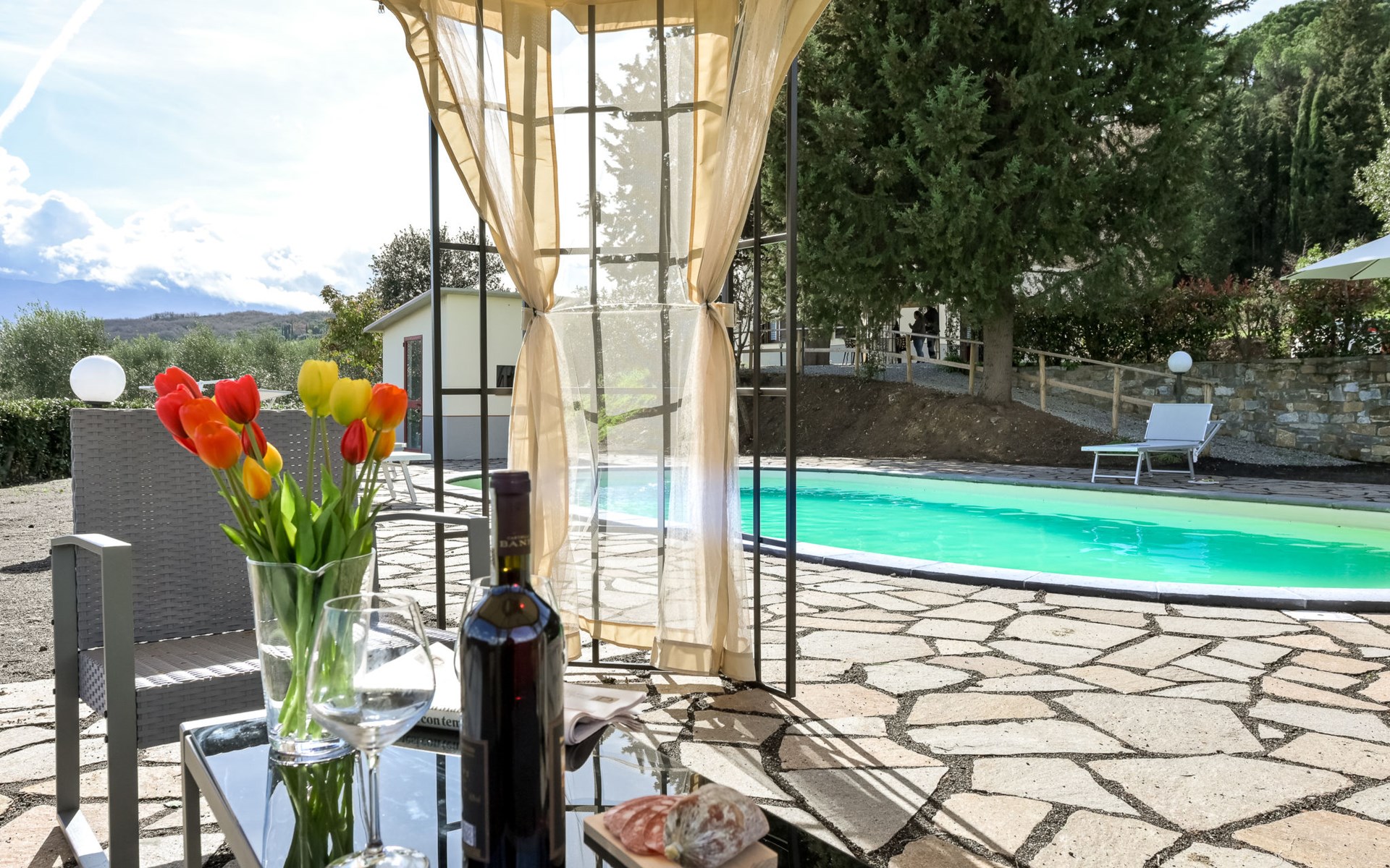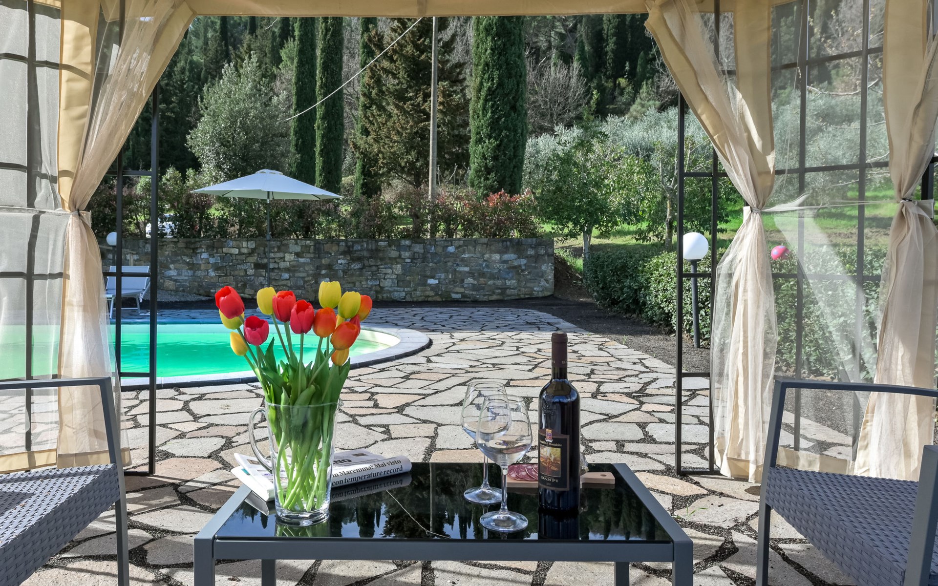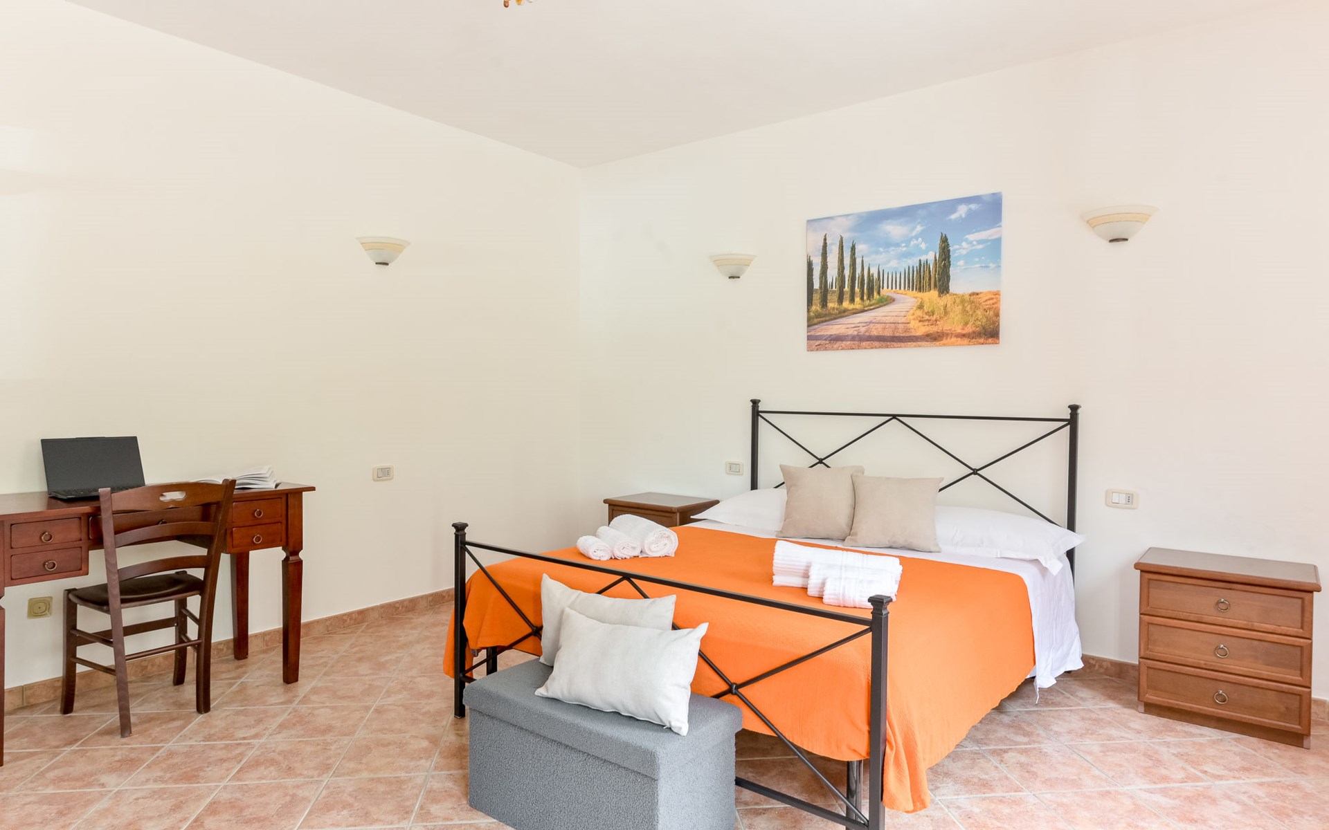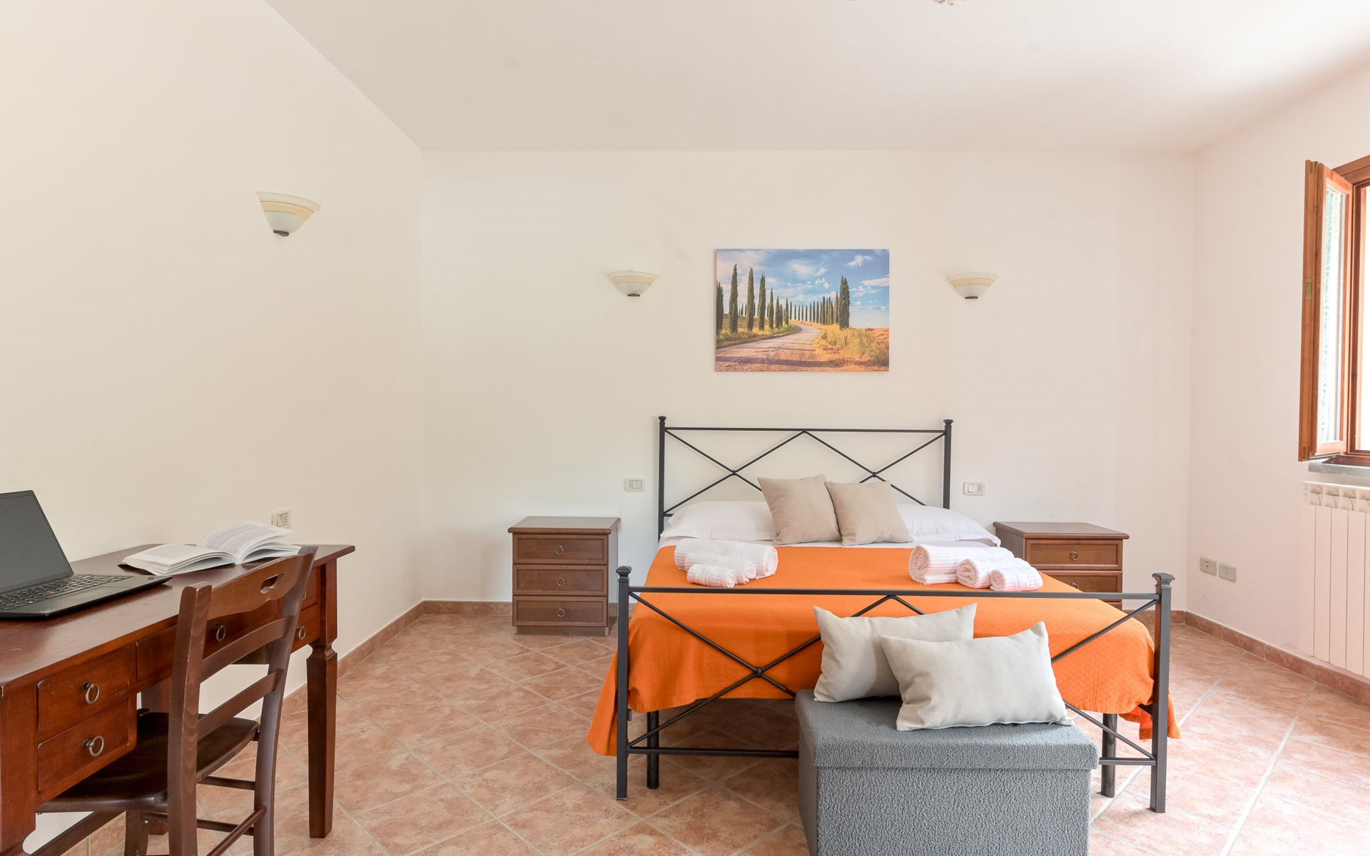 Cosy house "Il Cipresso", 2 storeys, renovated in 2025, surrounded by trees and meadows. 2 km from the centre of Montenero, 23 km from the centre of Montalcino, in a secluded, quiet position, 60 km from the sea, 60 km from the beach, in the countryside. Private: terraced garden with wildlife garden and trees, swimming pool kidney shaped (10 x 5 m, depth 124 cm, seasonal availability: 15.Apr. - 30.Oct.). Outdoor shower, pergola, garden furniture, barbecue, parking at the house. Shop 2 km, grocery 2 km, supermarket 15 km, restaurant 2 km, bar 2 km, bakery 2 km, bus stop "Montenero Bivio" 7 km, railway station "Paganico" 20 km, sandy beach "Castiglione della Pescaia" 67 km, thermal baths "Bagni San Filippo" 40 km. Nearby attractions: Cinigiano / Castel del Piano 16 km, Monte Amiata 28 km, Grosseto 46 km, Pienza 45 km, Siena 60 km. Please note: car recommended.