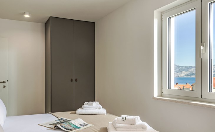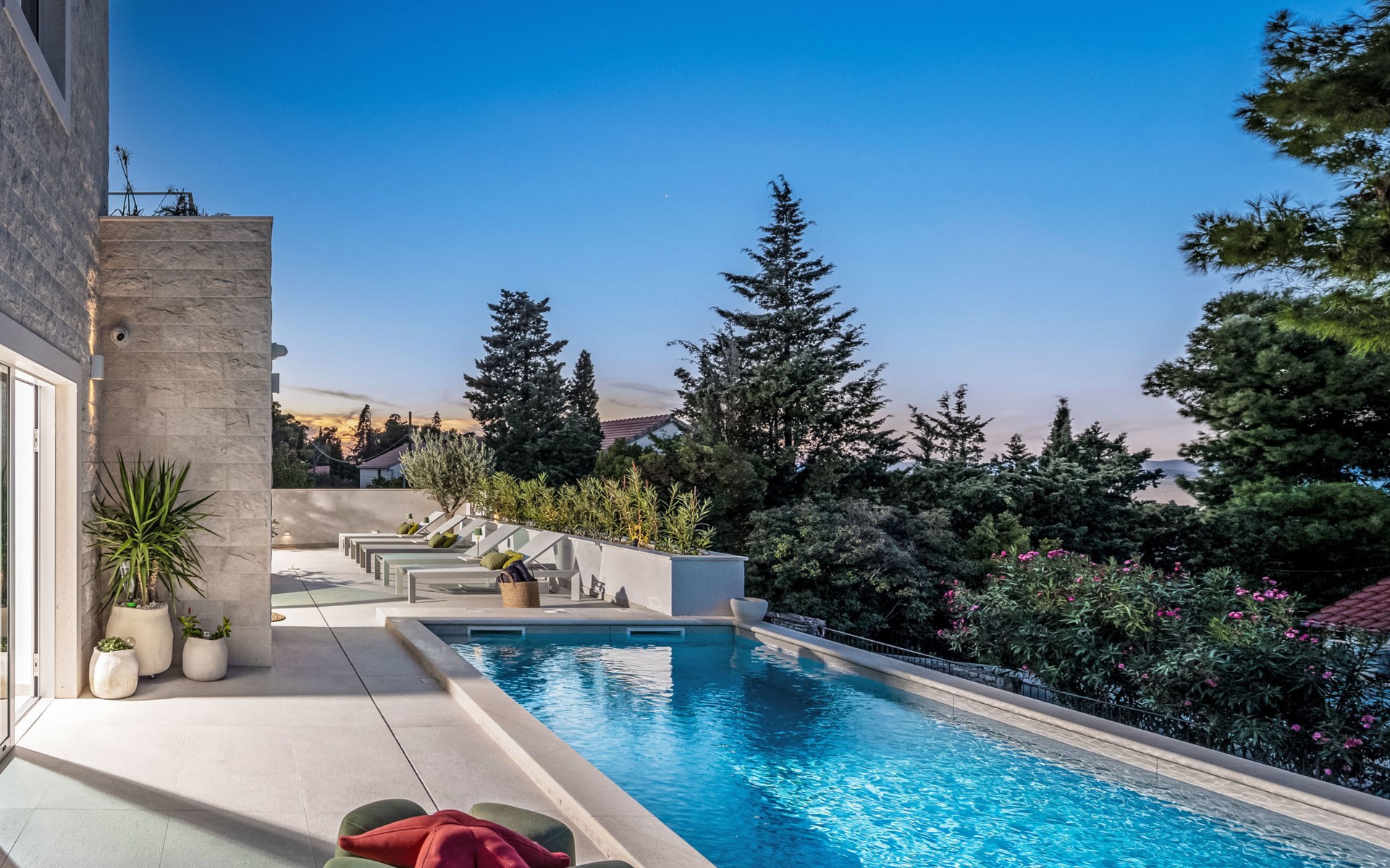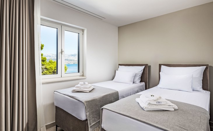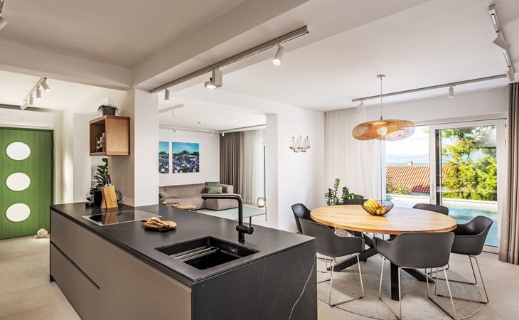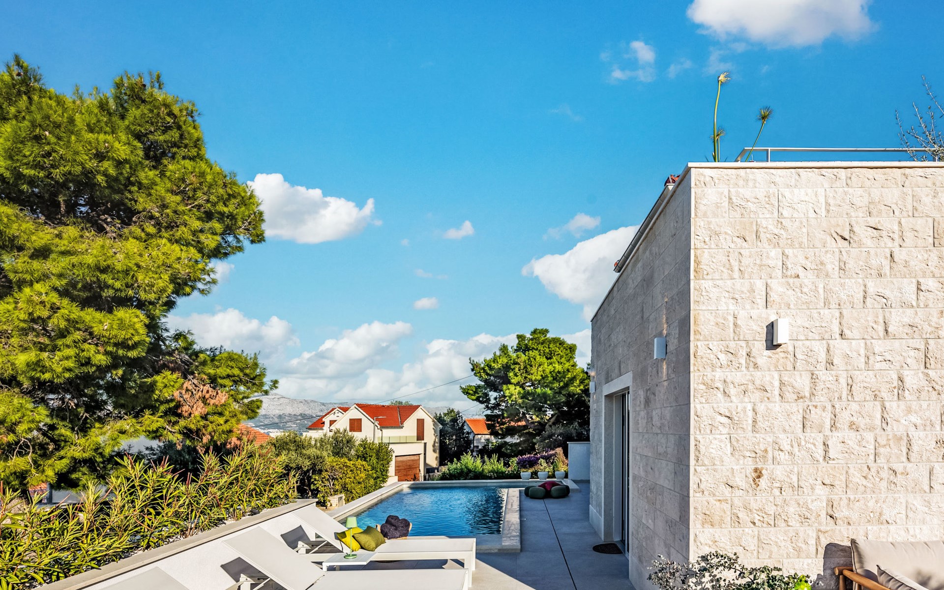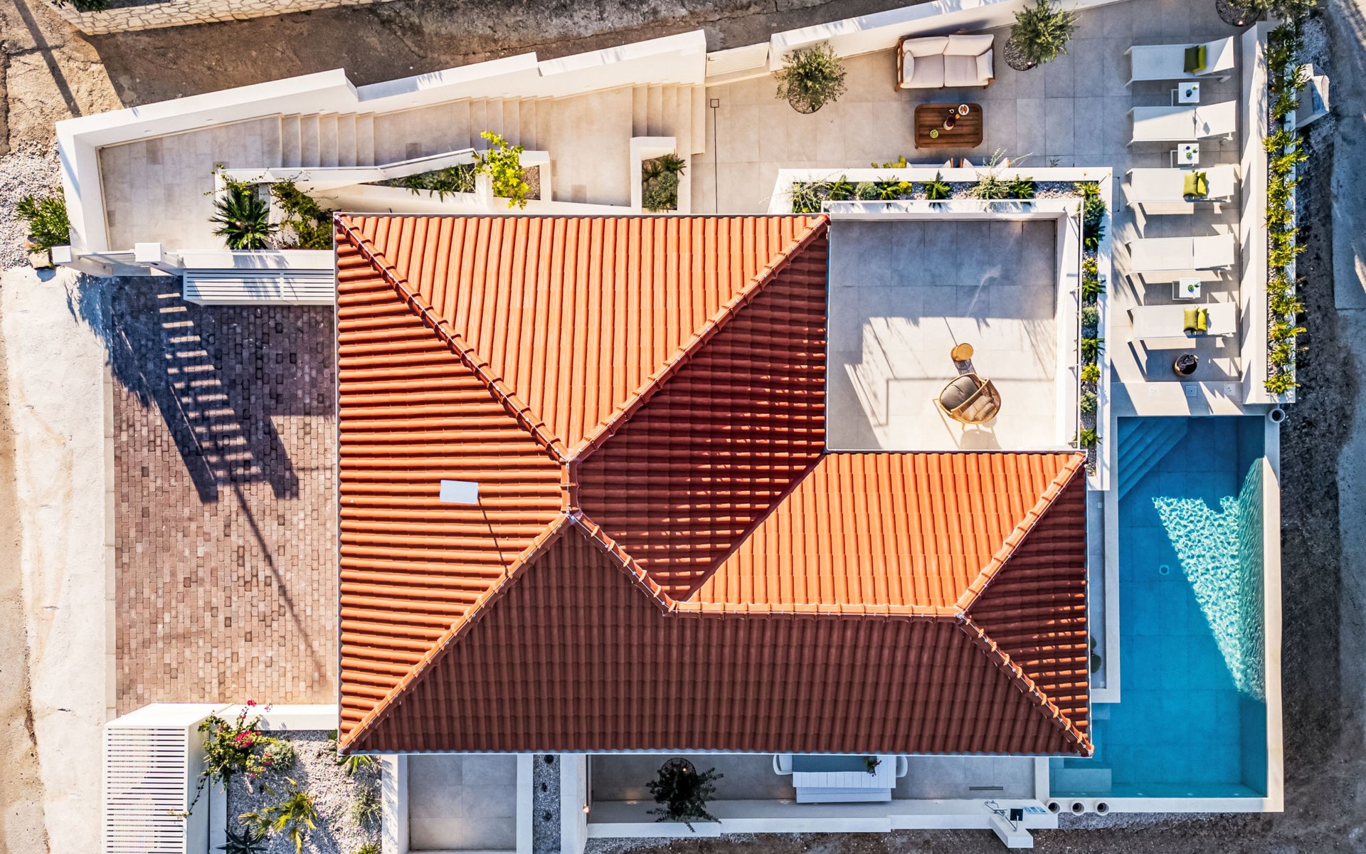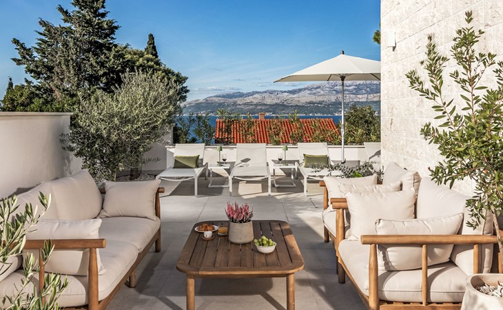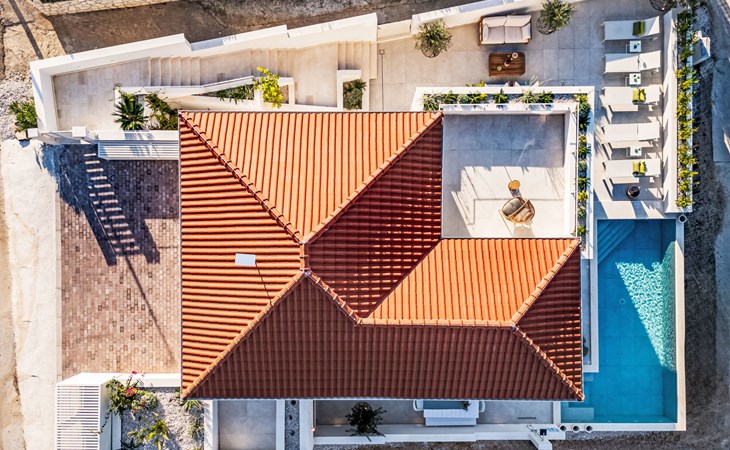 Splitska 5 km from Supetar: Beautiful villa "Brax8", built in 2024. In a quiet, sunny, elevated position, 200 m from the sea, 500 m from the beach. Private: property 370 m2, swimming pool angular (8 x 3 m, depth 150 cm, seasonal availability: 01.May. - 01.Oct.) with internal staircase. Outdoor shower, terrace (50 m2), garden furniture, barbecue. In the house: internet access, washing machine, tumble dryer. Parking (for 3 cars) at the house on the premises. Shop 400 m, supermarket 5 km, shopping centre 5 km, restaurant, café, bus stop 400 m, pebble beach 500 m.