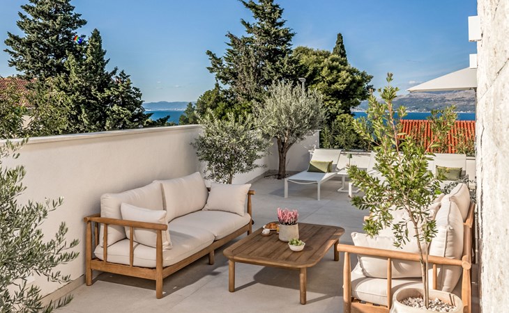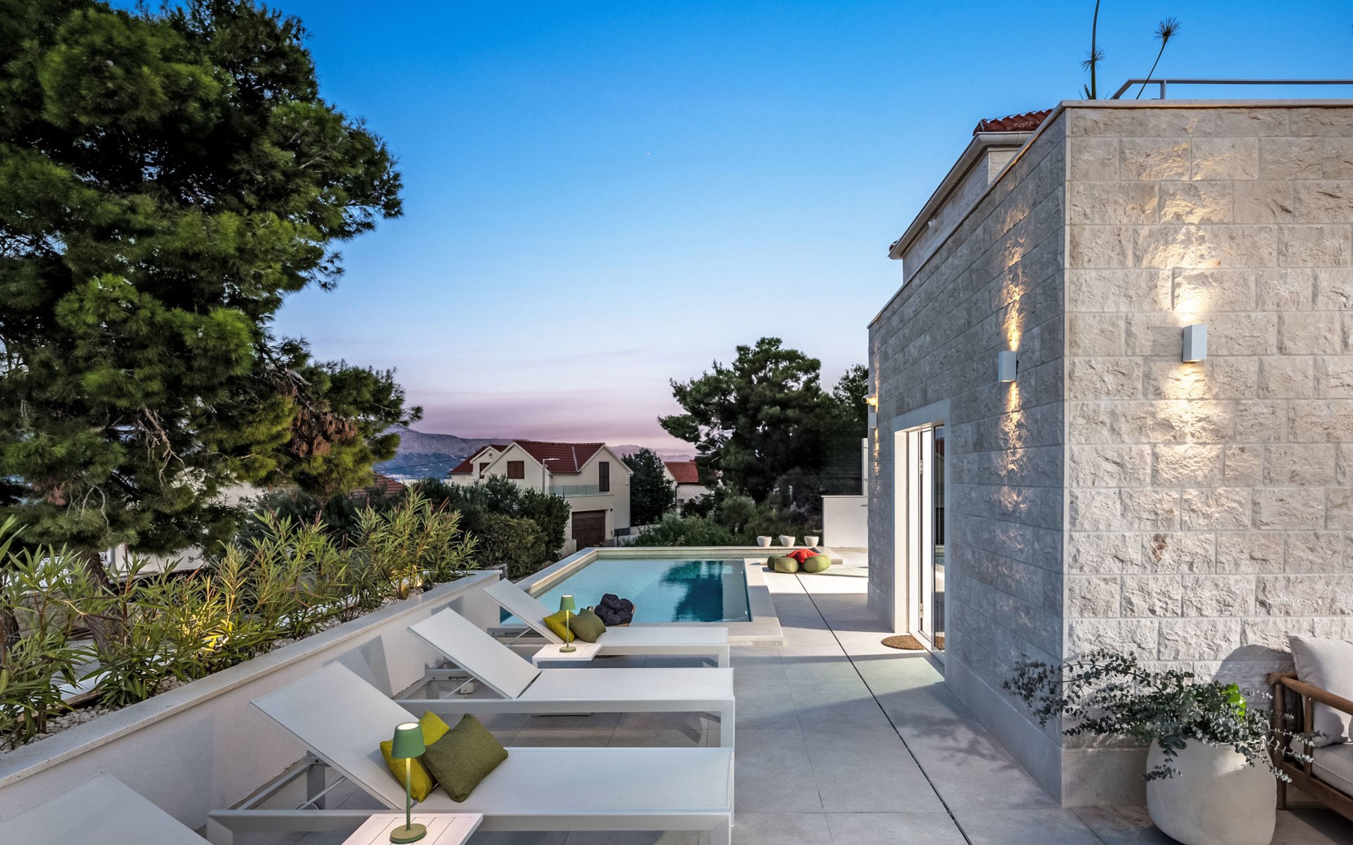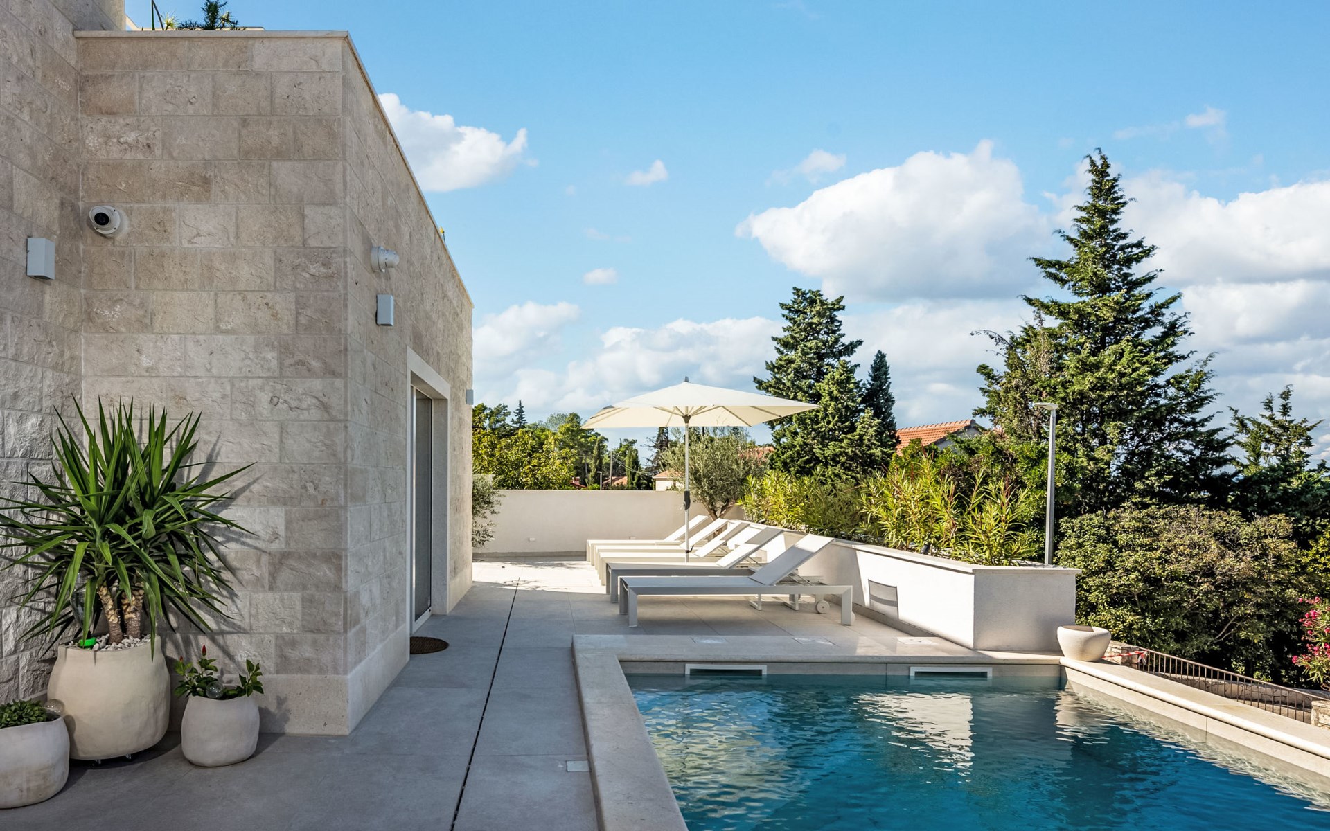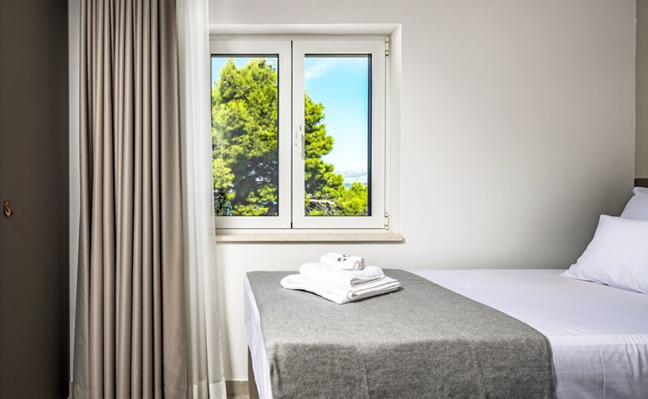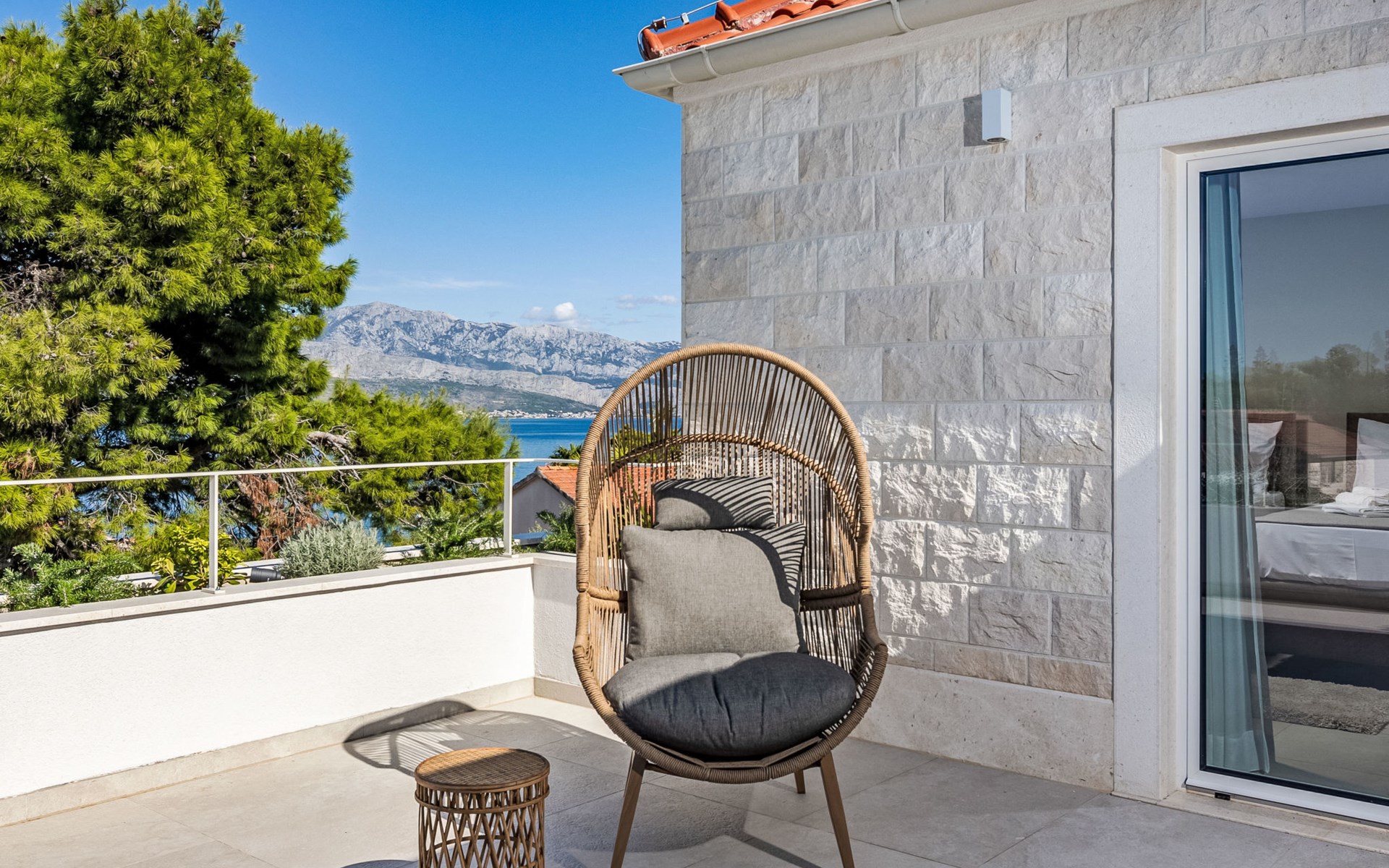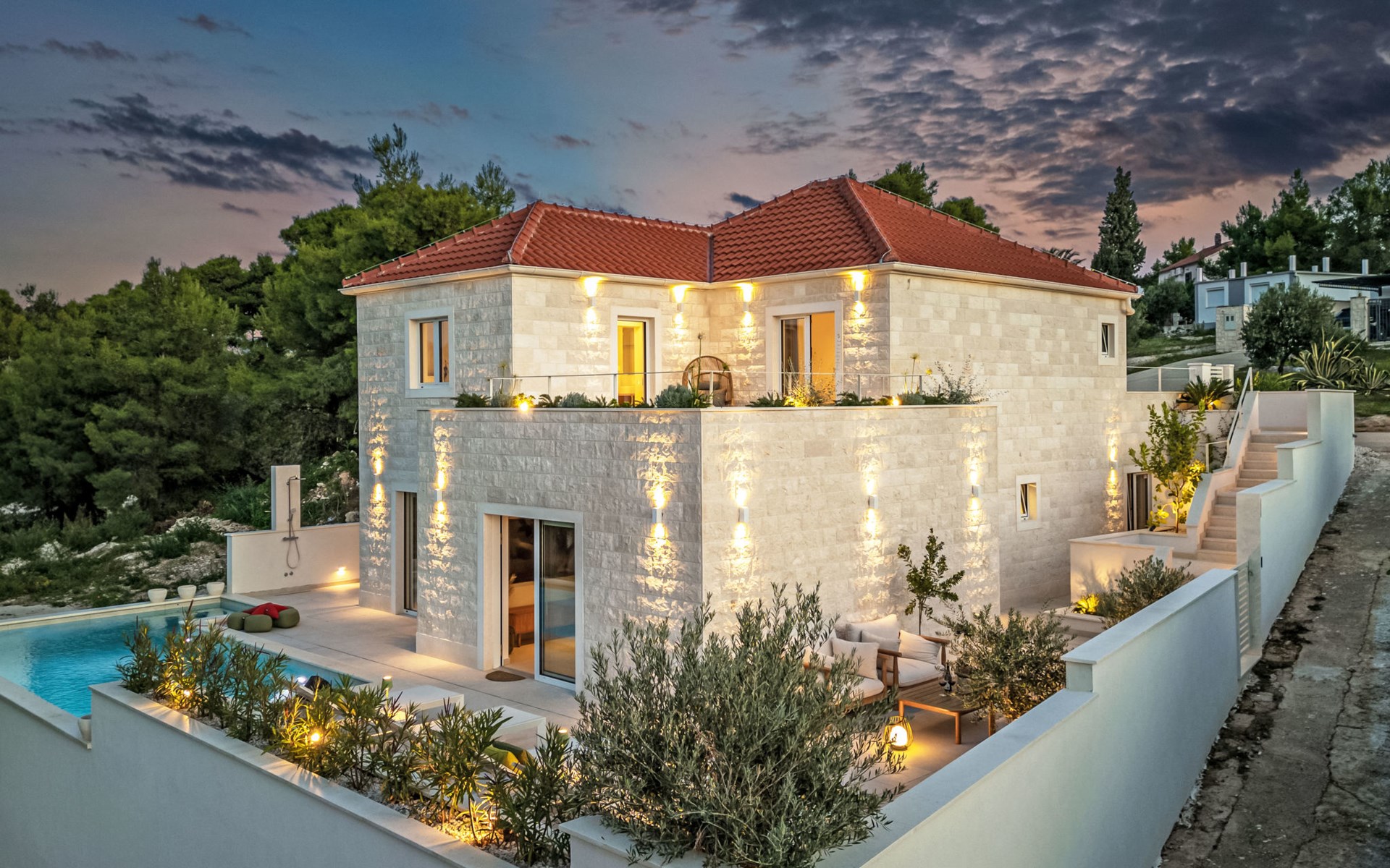Splitska 5 km from Supetar: Beautiful villa "Brax8", built in 2024. In a quiet, sunny, elevated position, 200 m from the sea, 500 m from the beach. Private: property 370 m2, swimming pool angular (8 x 3 m, depth 150 cm, seasonal availability: 01.May. - 01.Oct.) with internal staircase. Outdoor shower, terrace (50 m2), garden furniture, barbecue. In the house: internet access, washing machine, tumble dryer. Parking (for 3 cars) at the house on the premises. Shop 400 m, supermarket 5 km, shopping centre 5 km, restaurant, café, bus stop 400 m, pebble beach 500 m.