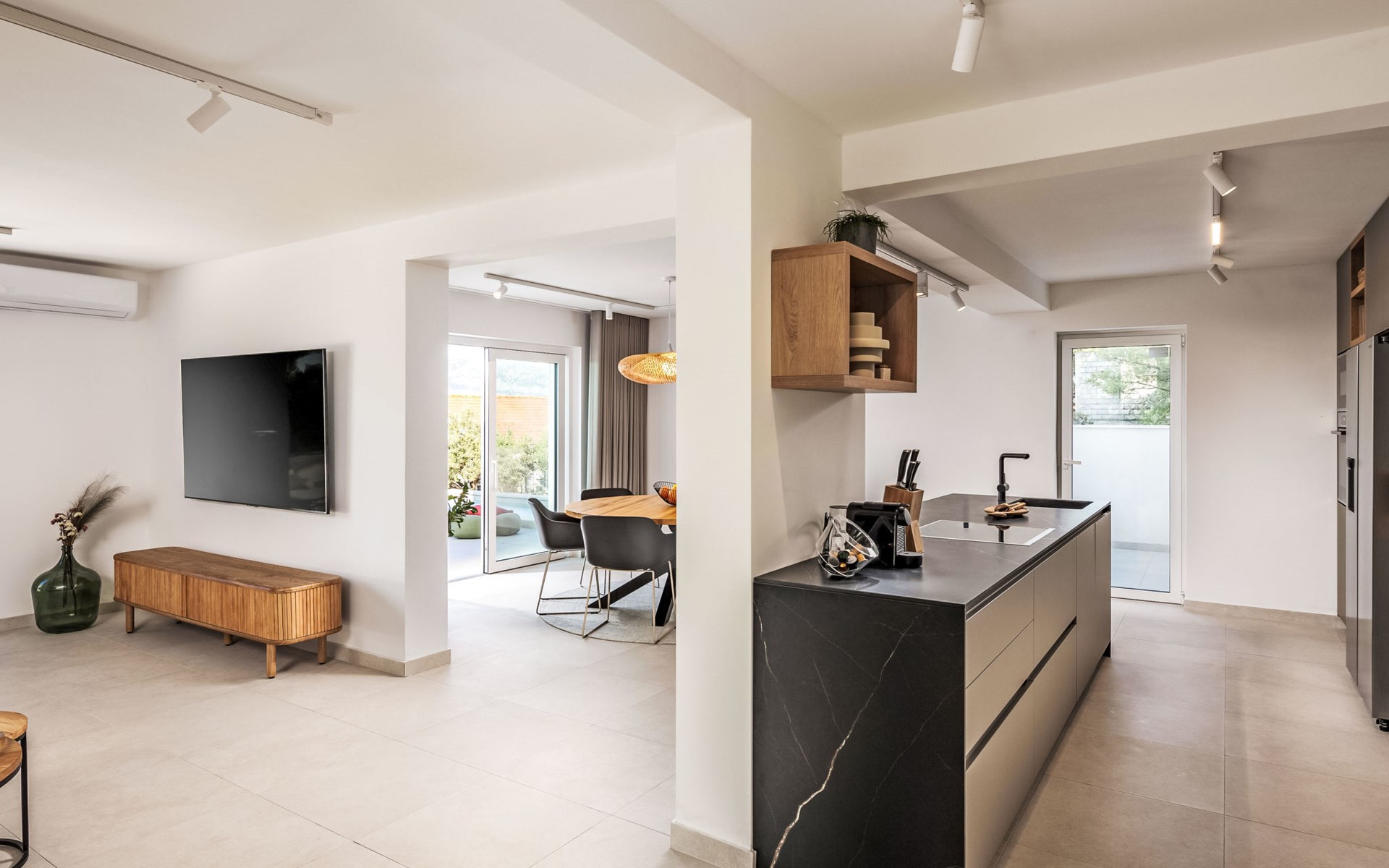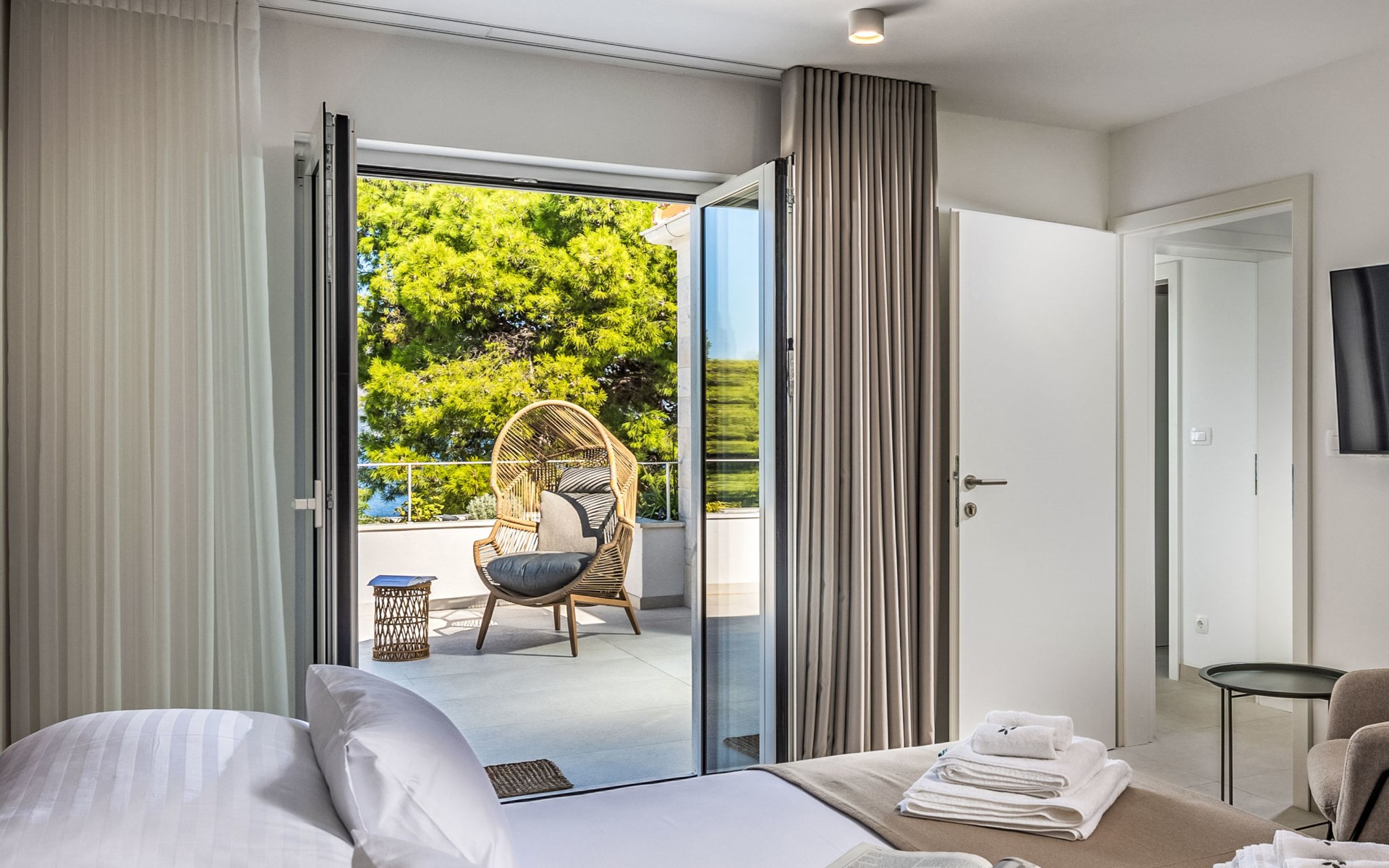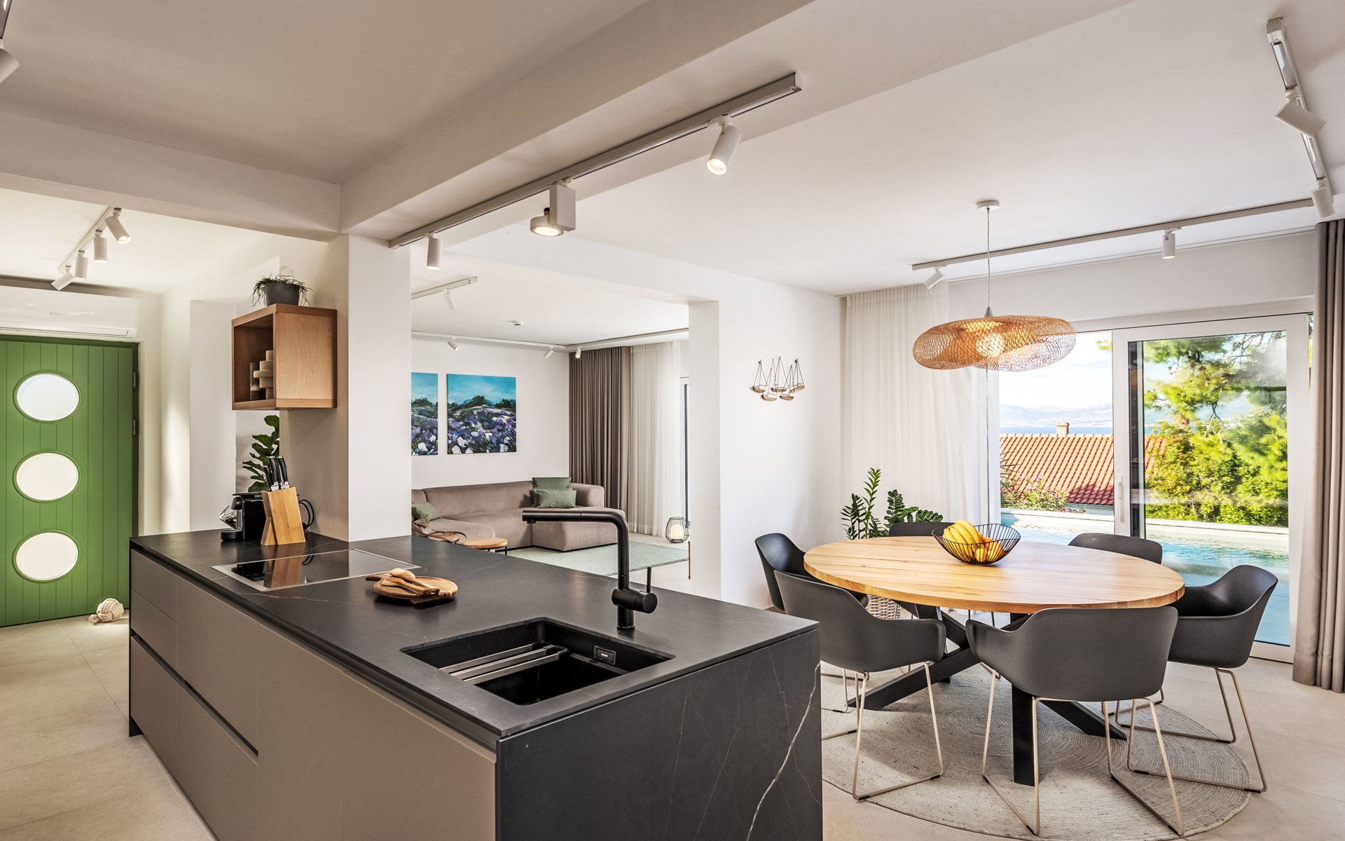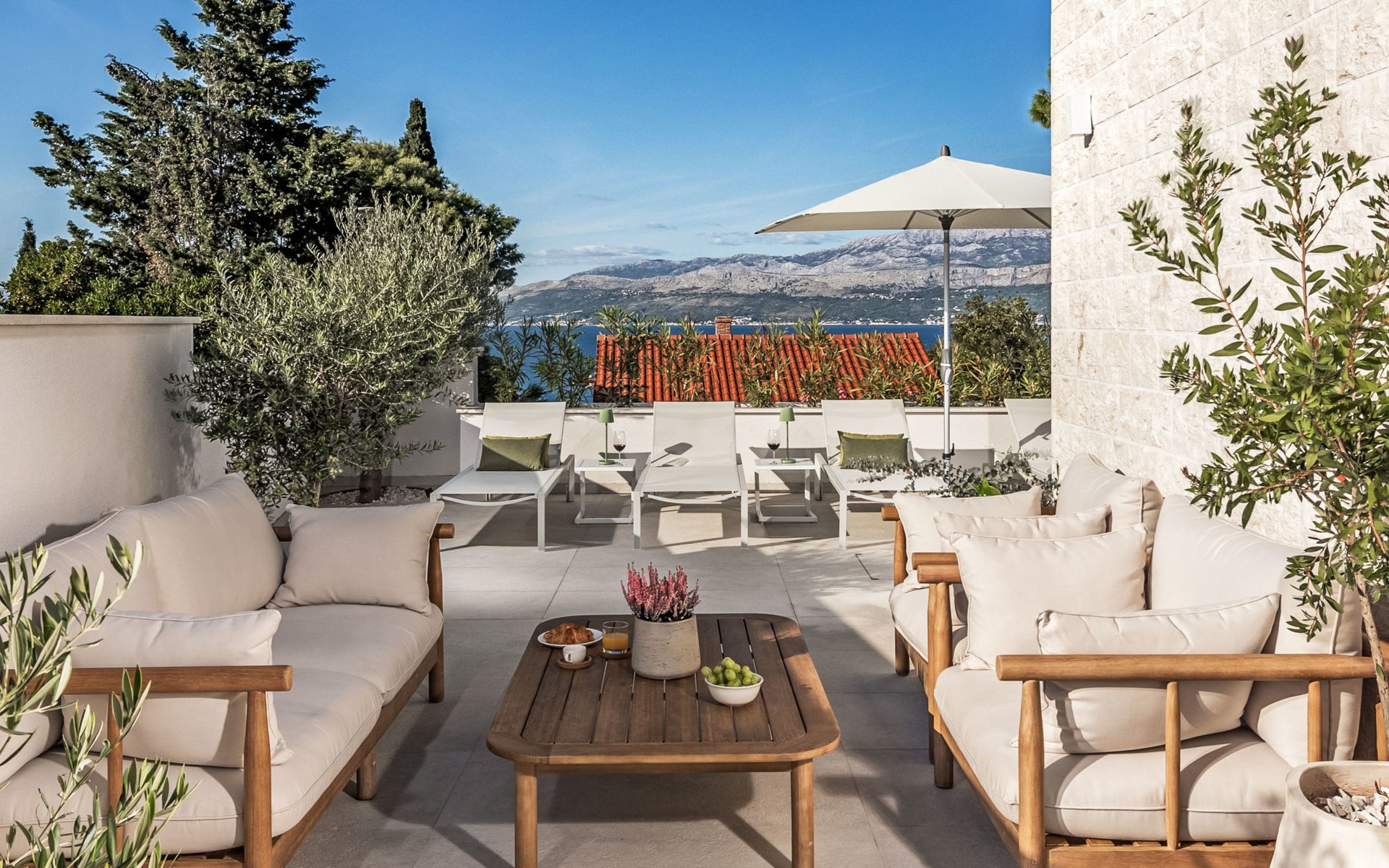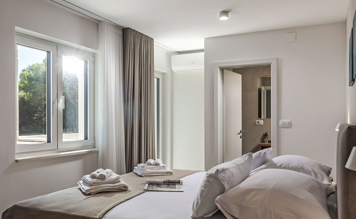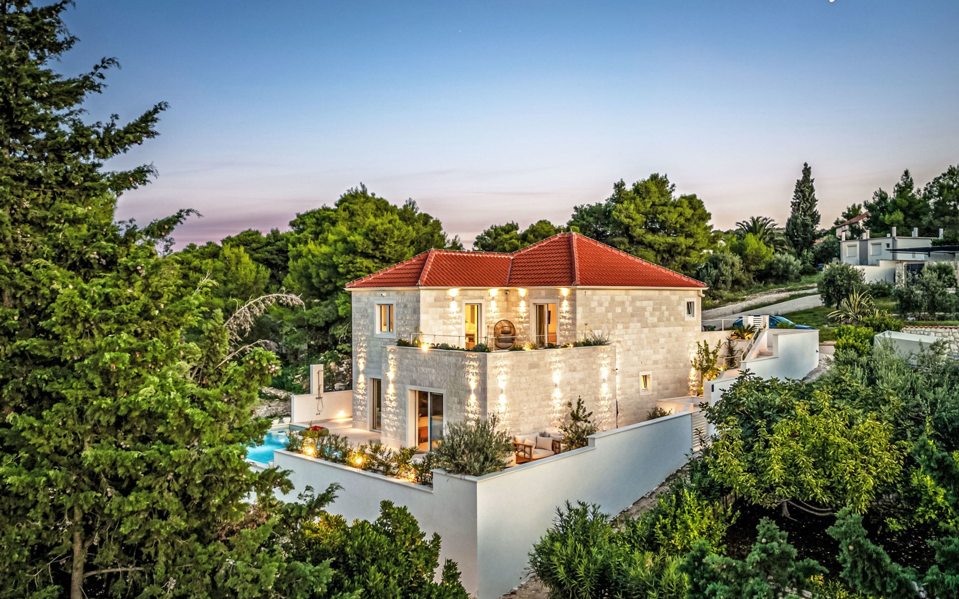 Splitska 5 km from Supetar: Beautiful villa "Brax8", built in 2024. In a quiet, sunny, elevated position, 200 m from the sea, 500 m from the beach. Private: property 370 m2, swimming pool angular (8 x 3 m, depth 150 cm, seasonal availability: 01.May. - 01.Oct.) with internal staircase. Outdoor shower, terrace (50 m2), garden furniture, barbecue. In the house: internet access, washing machine, tumble dryer. Parking (for 3 cars) at the house on the premises. Shop 400 m, supermarket 5 km, shopping centre 5 km, restaurant, café, bus stop 400 m, pebble beach 500 m.