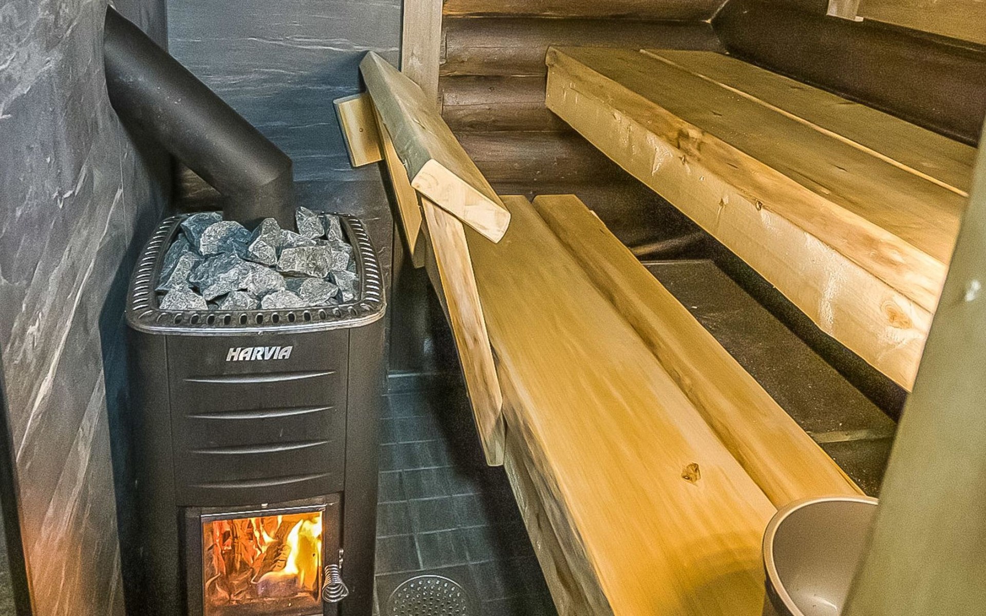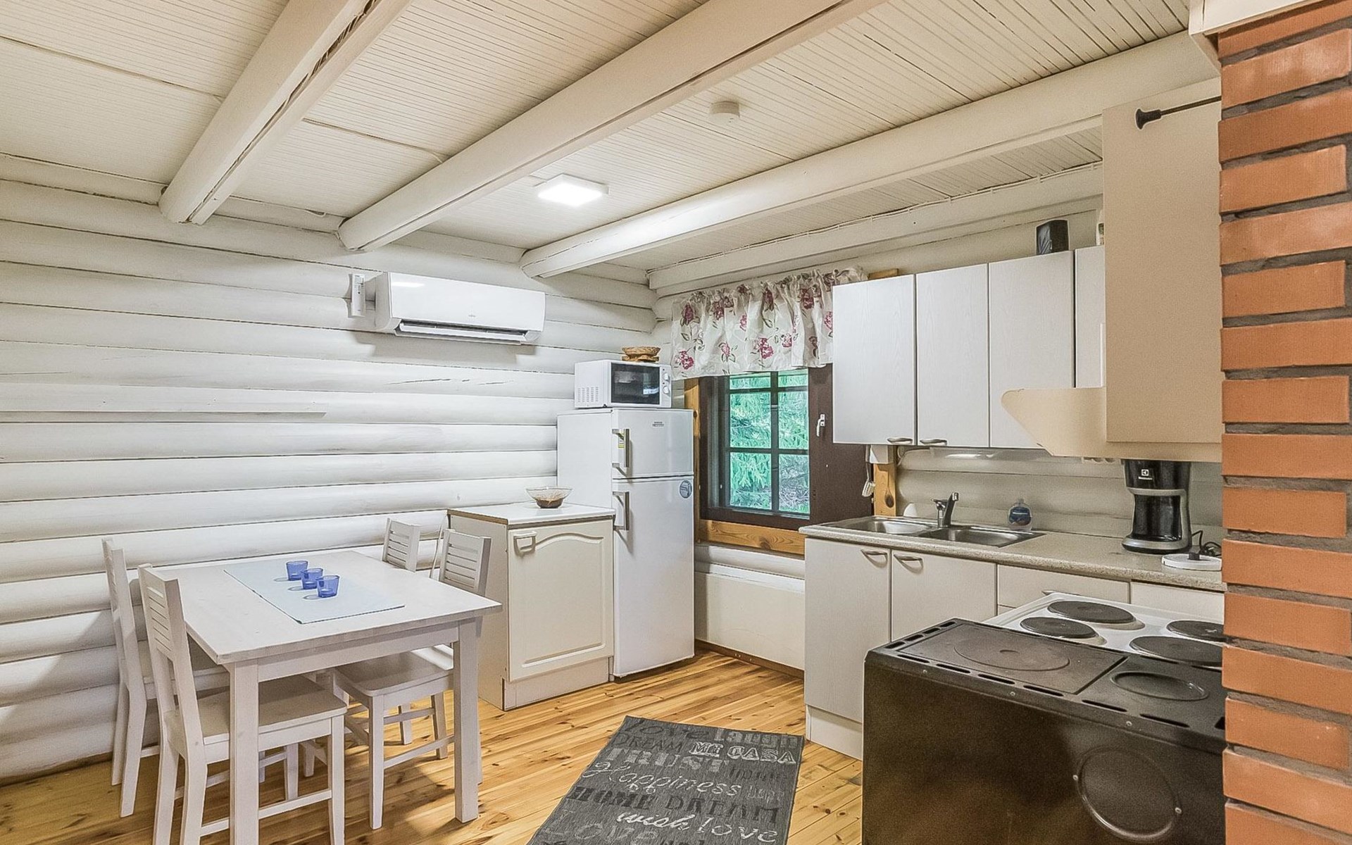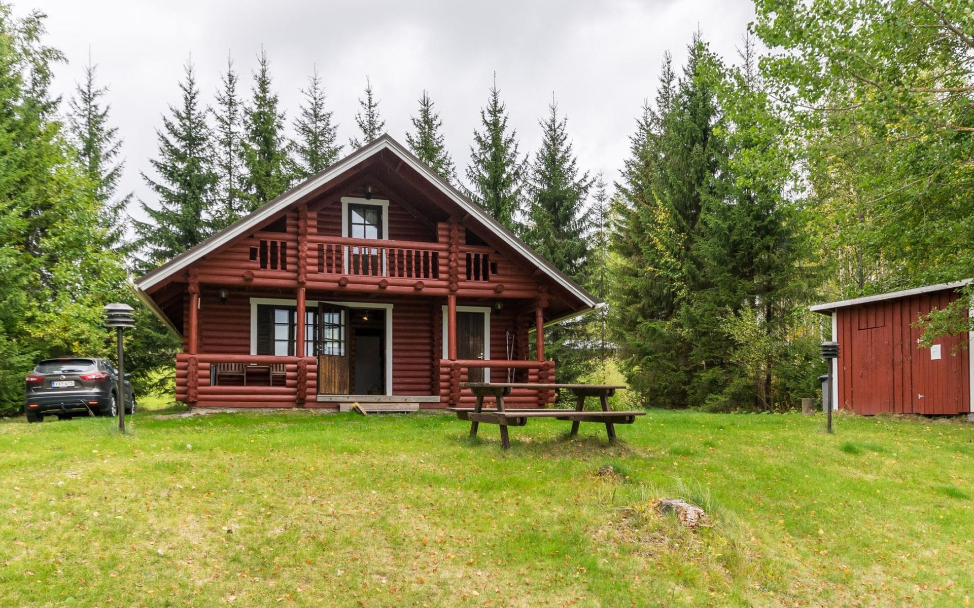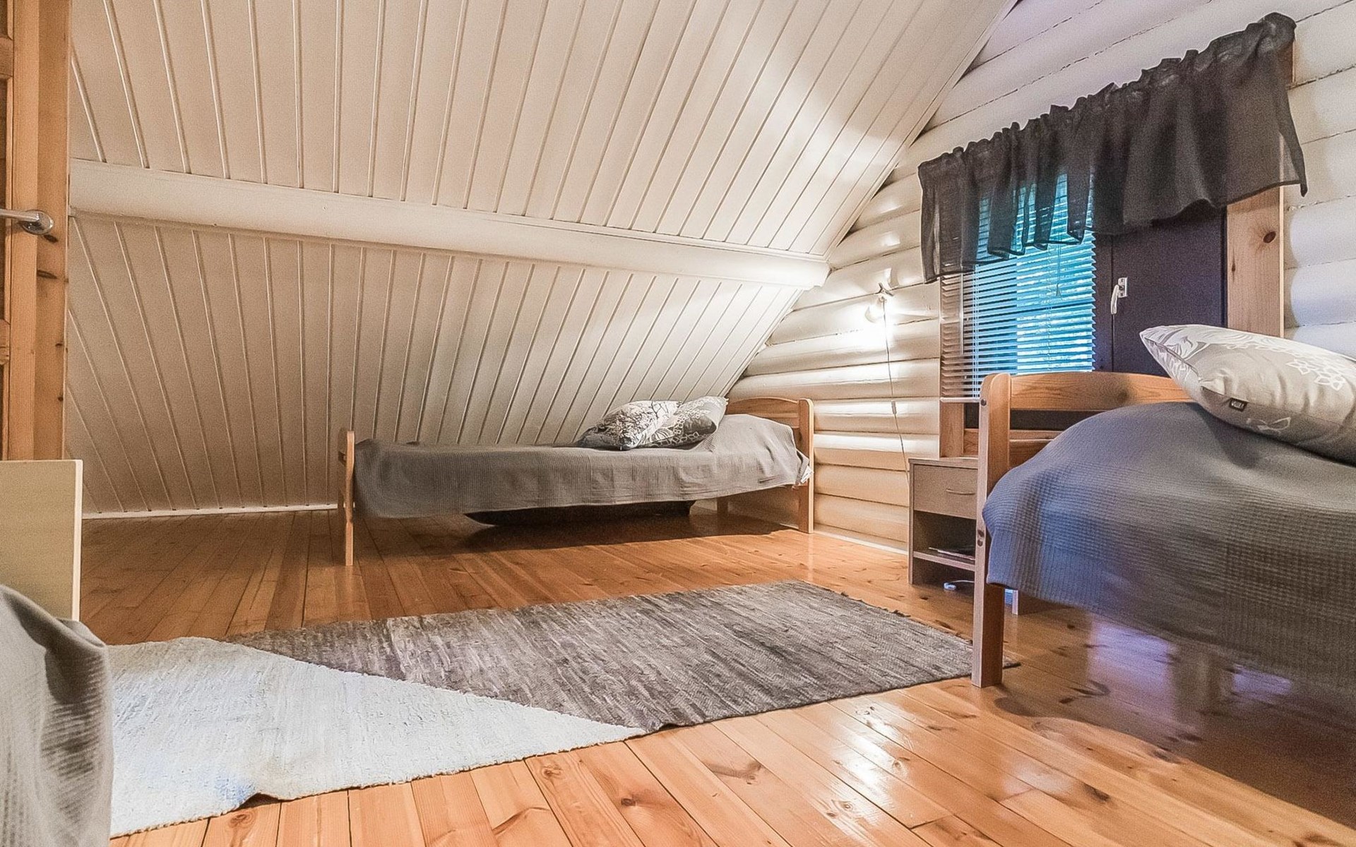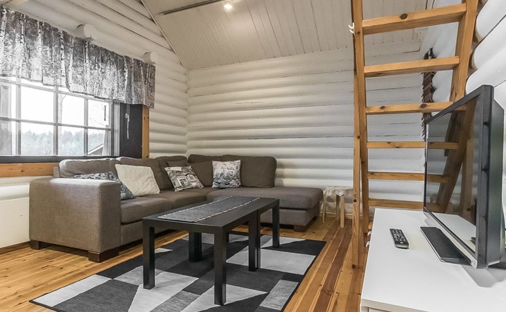 Log cabin 1997, kitchen, living room with an extra bed, bedroom with double beds, washing room (renovated 2021), sauna, open veranda. Upstairs: (steep stairs) bedroom with 3 beds, lobby with a sofabed, balcony.
