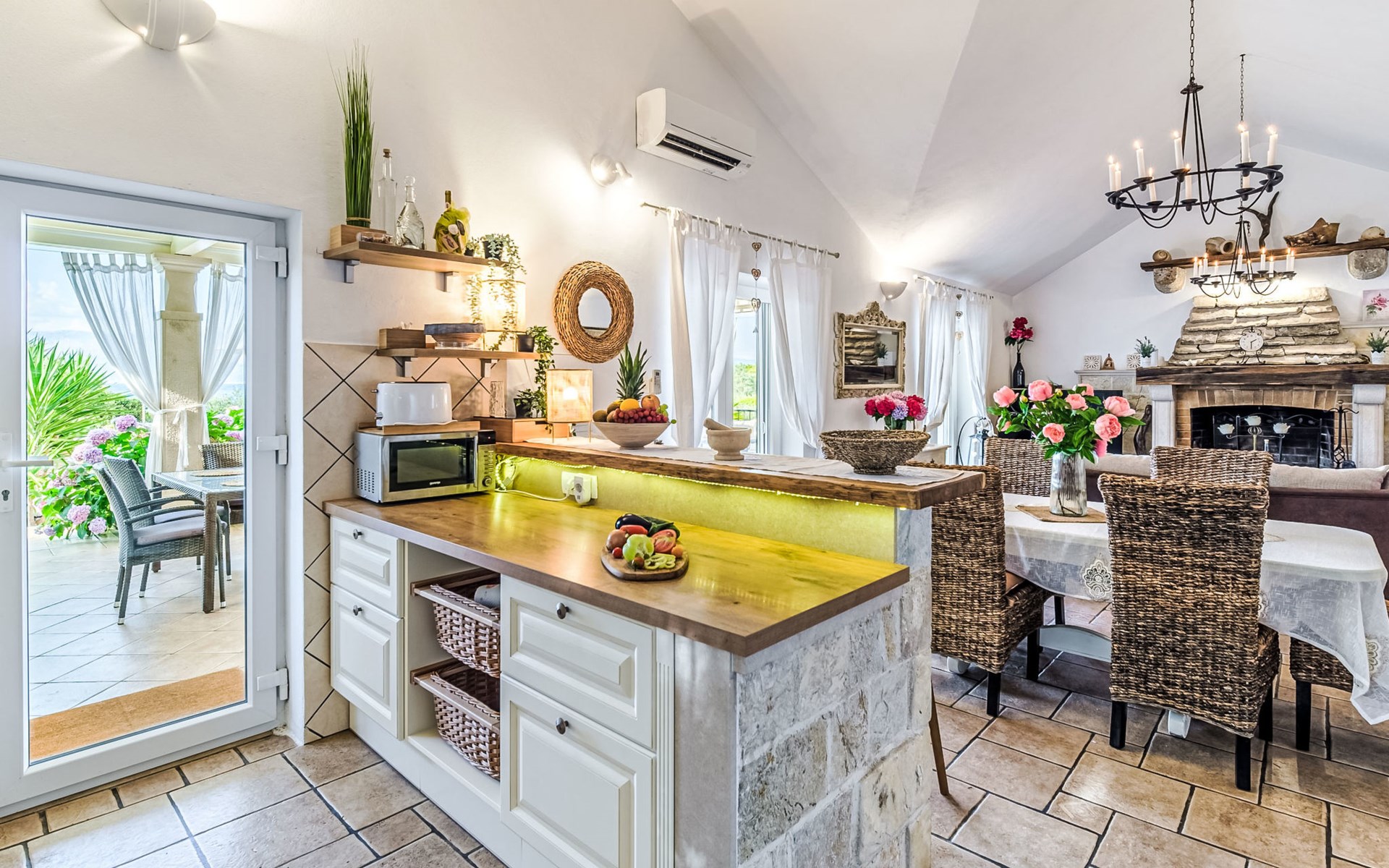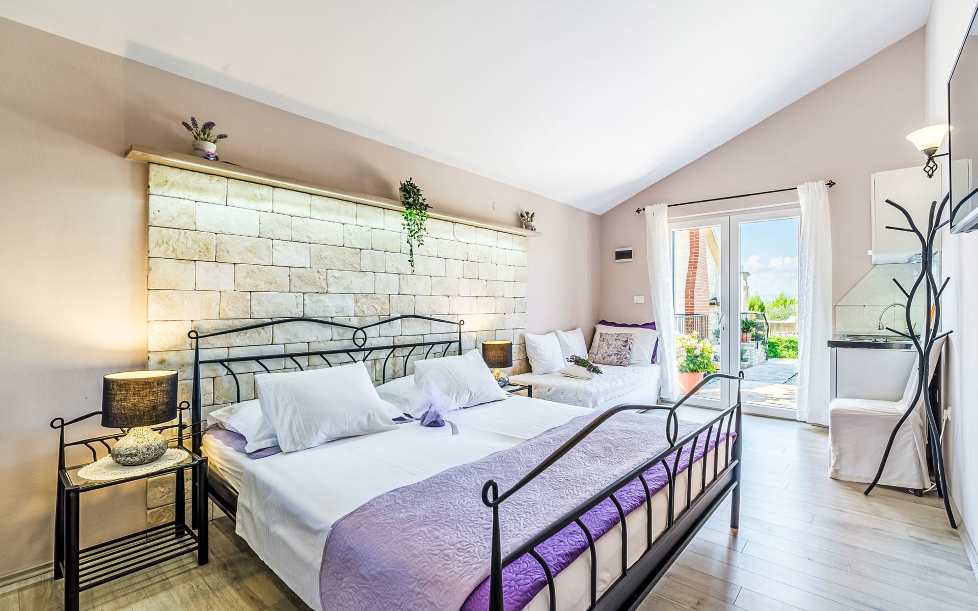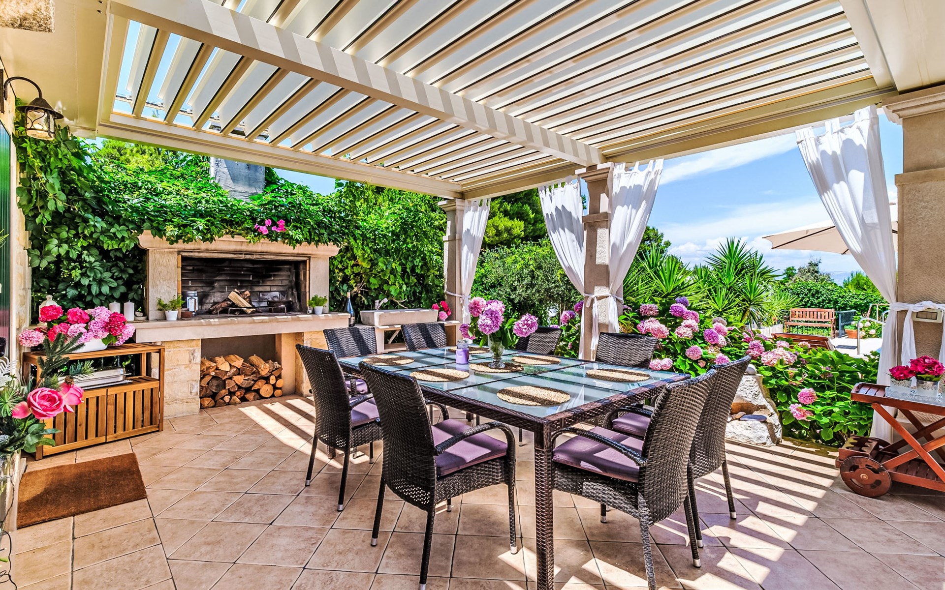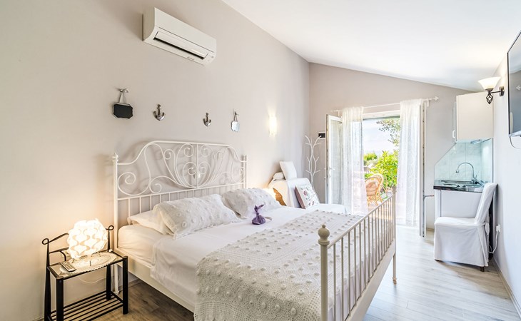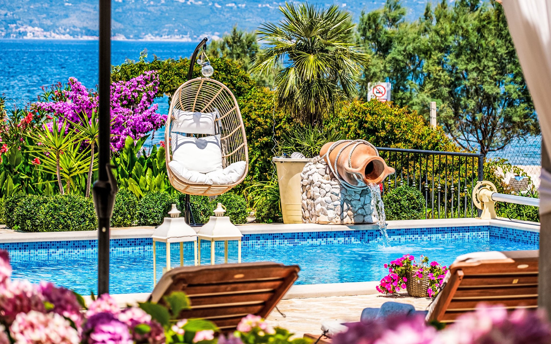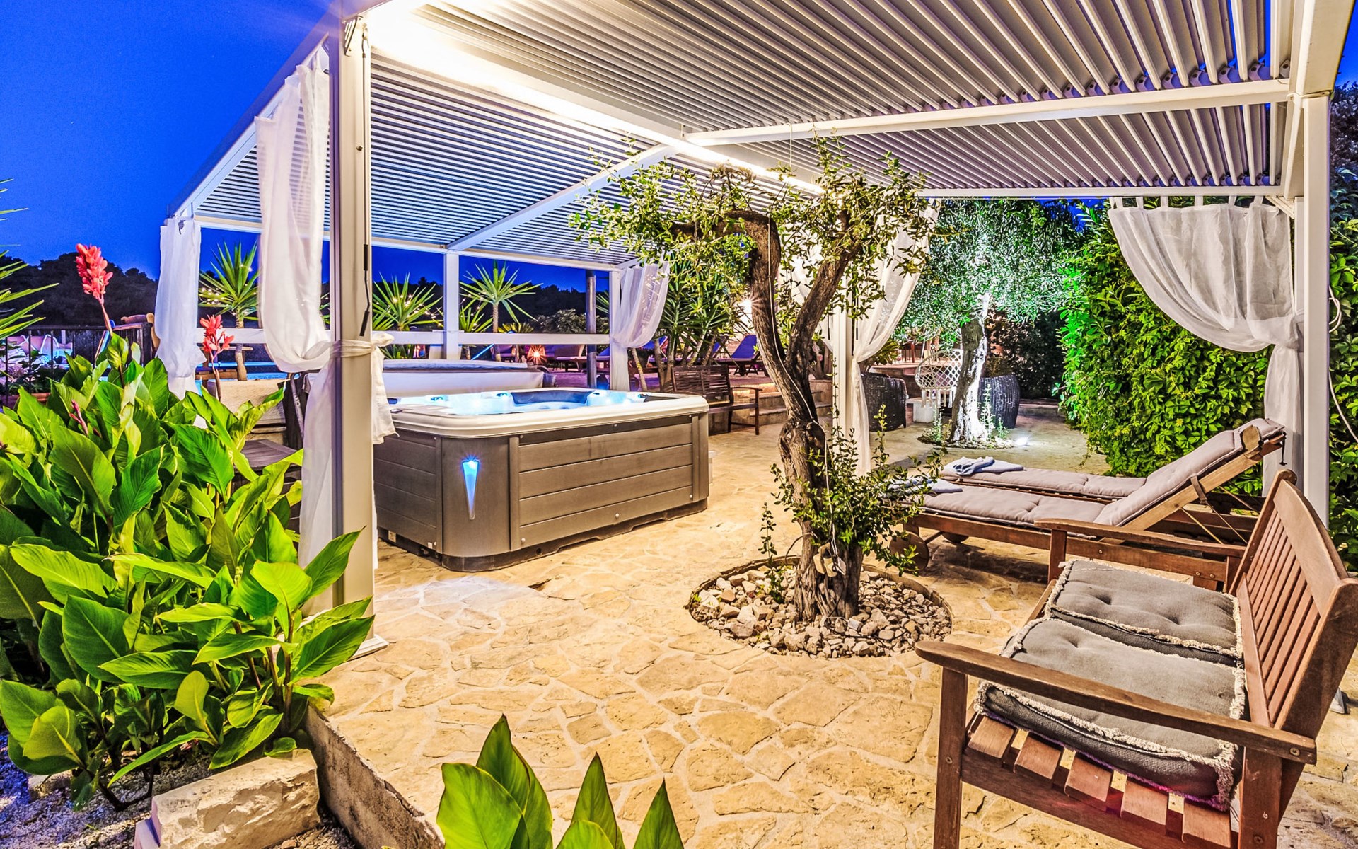 Mirca: Single-family house "Villa Mutnik". 2.4 km from the centre of Supetar, in a secluded, quiet, sunny position, at the seaside, on the beach. Private: property 1'500 m2 (fenced), garden with wildlife garden, swimming pool angular, heated (10 x 4 m, depth 150 cm, seasonal availability: 01.Apr. - 15.Nov.) with internal staircase. Outdoor shower, hot tub, terrace (100 m2), barbecue (swing, sandbox). In the house: internet access, trampoline, washing machine. Available: bicycles (6). Motor access to the house (500 m via unmade road). Parking at the house on the premises. Shop 1.2 km, restaurant 1.6 km, bus stop 4.2 km, pebble beach 20 m. The unit consists of the small, separate house and the main house rented as one unit. 1 SUP board for use in house.