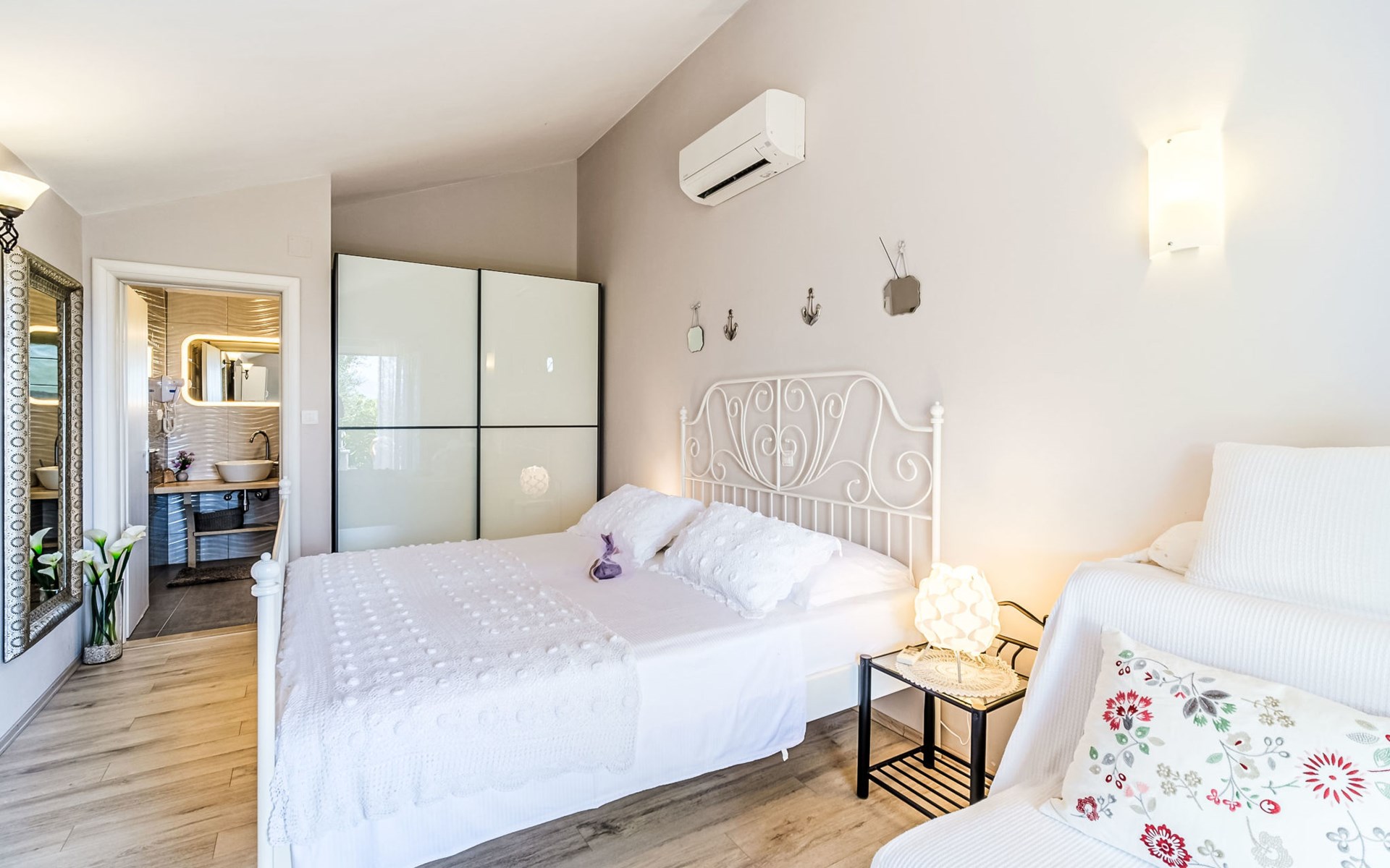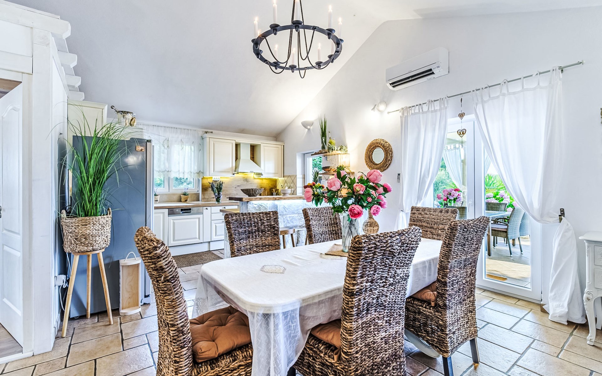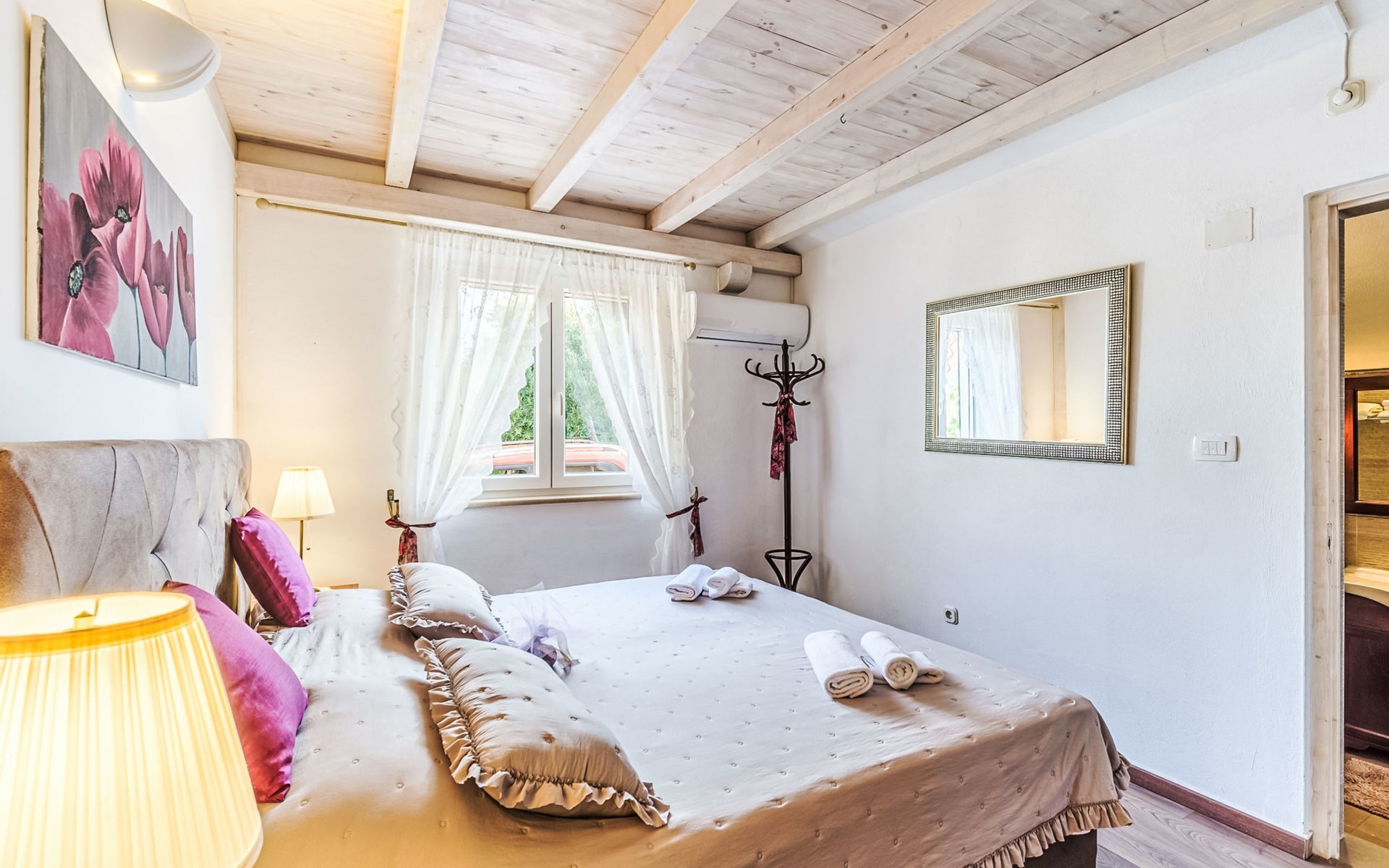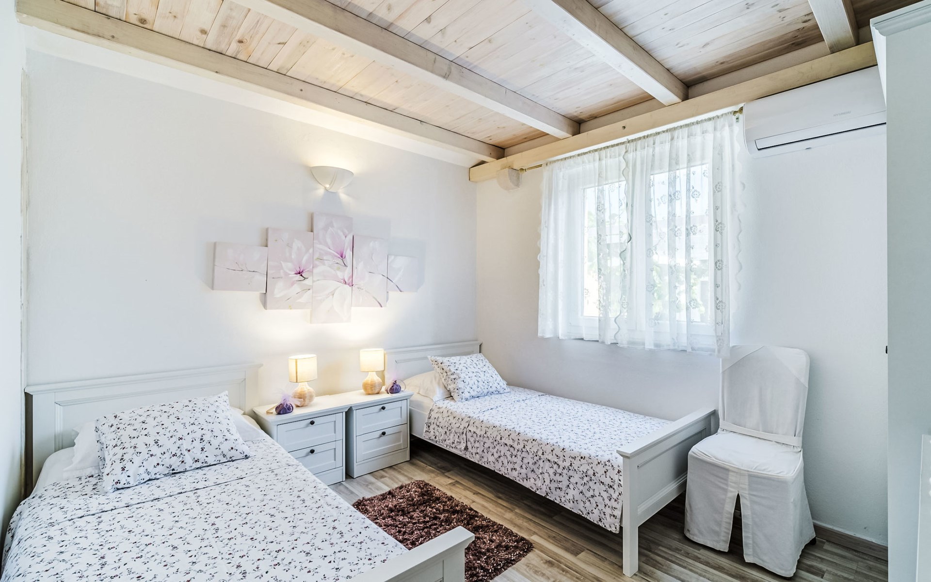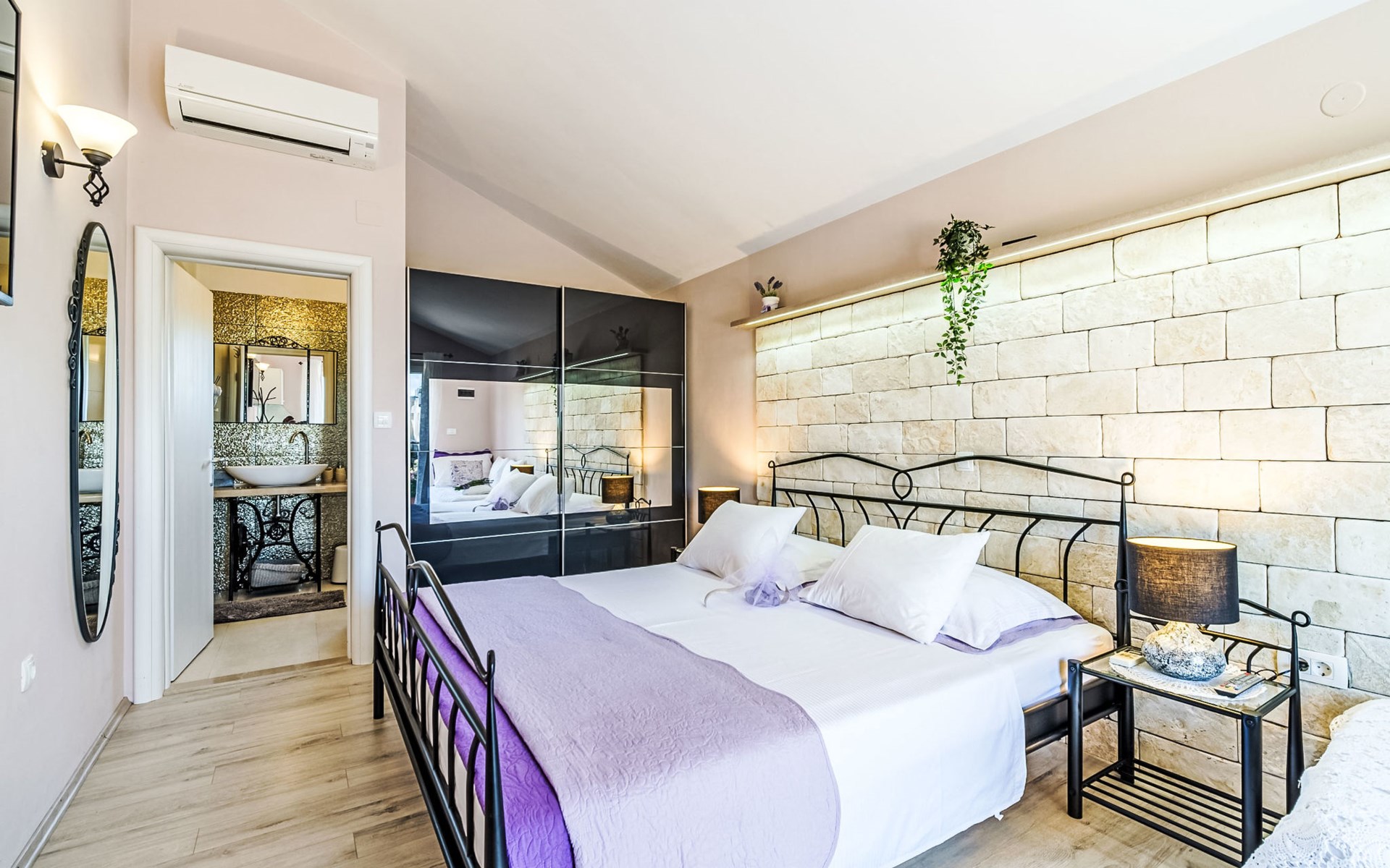 Mirca: Single-family house "Villa Mutnik". 2.4 km from the centre of Supetar, in a secluded, quiet, sunny position, at the seaside, on the beach. Private: property 1'500 m2 (fenced), garden with wildlife garden, swimming pool angular, heated (10 x 4 m, depth 150 cm, seasonal availability: 01.Apr. - 15.Nov.) with internal staircase. Outdoor shower, hot tub, terrace (100 m2), barbecue (swing, sandbox). In the house: internet access, trampoline, washing machine. Available: bicycles (6). Motor access to the house (500 m via unmade road). Parking at the house on the premises. Shop 1.2 km, restaurant 1.6 km, bus stop 4.2 km, pebble beach 20 m. The unit consists of the small, separate house and the main house rented as one unit. 1 SUP board for use in house.